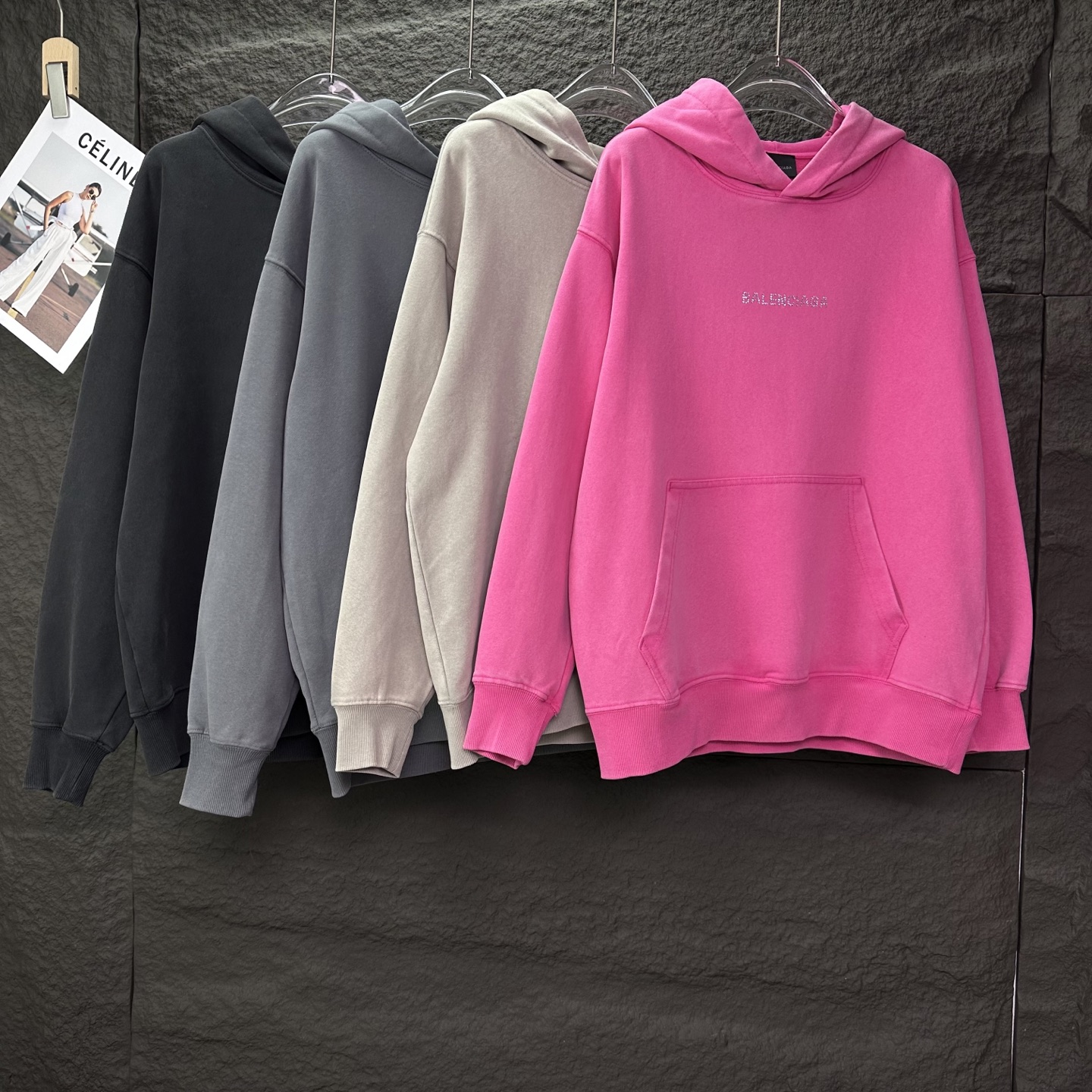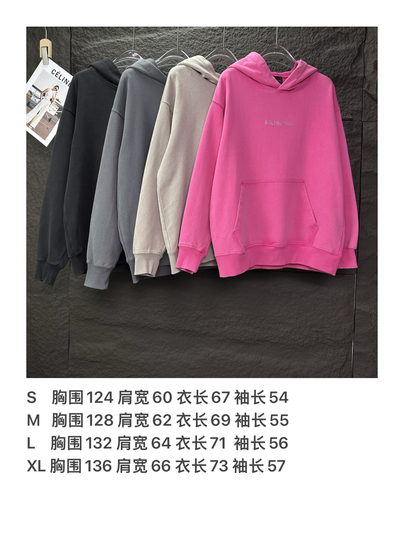 150143579 - 巴黎世家2025新款烫钻字母洗水做旧情侣款连帽卫衣 高版本高 337554