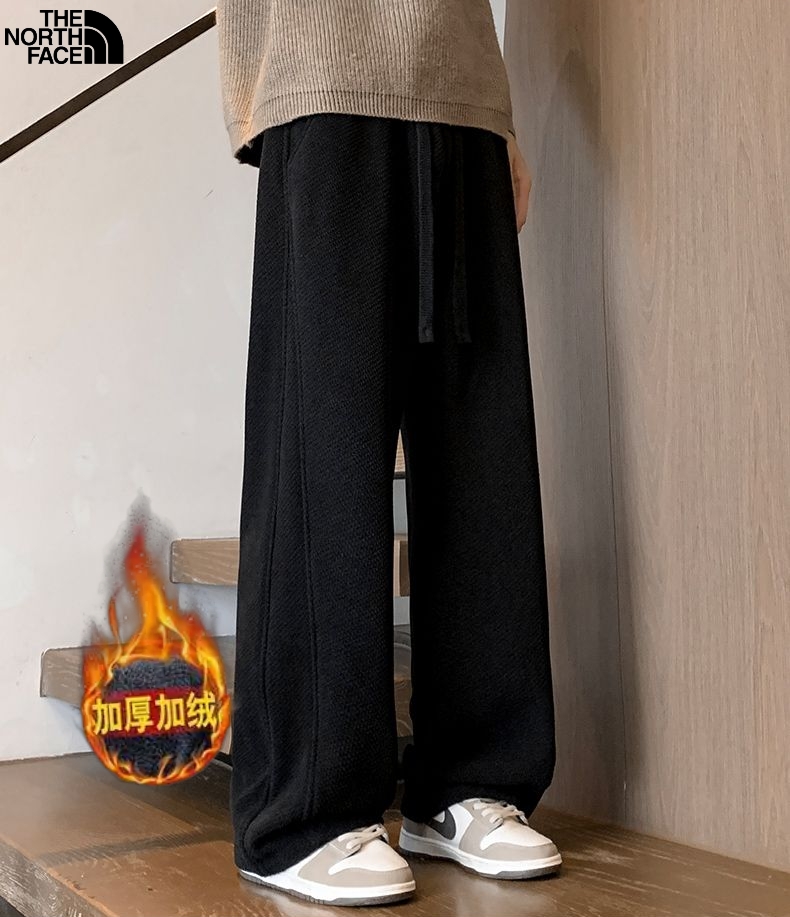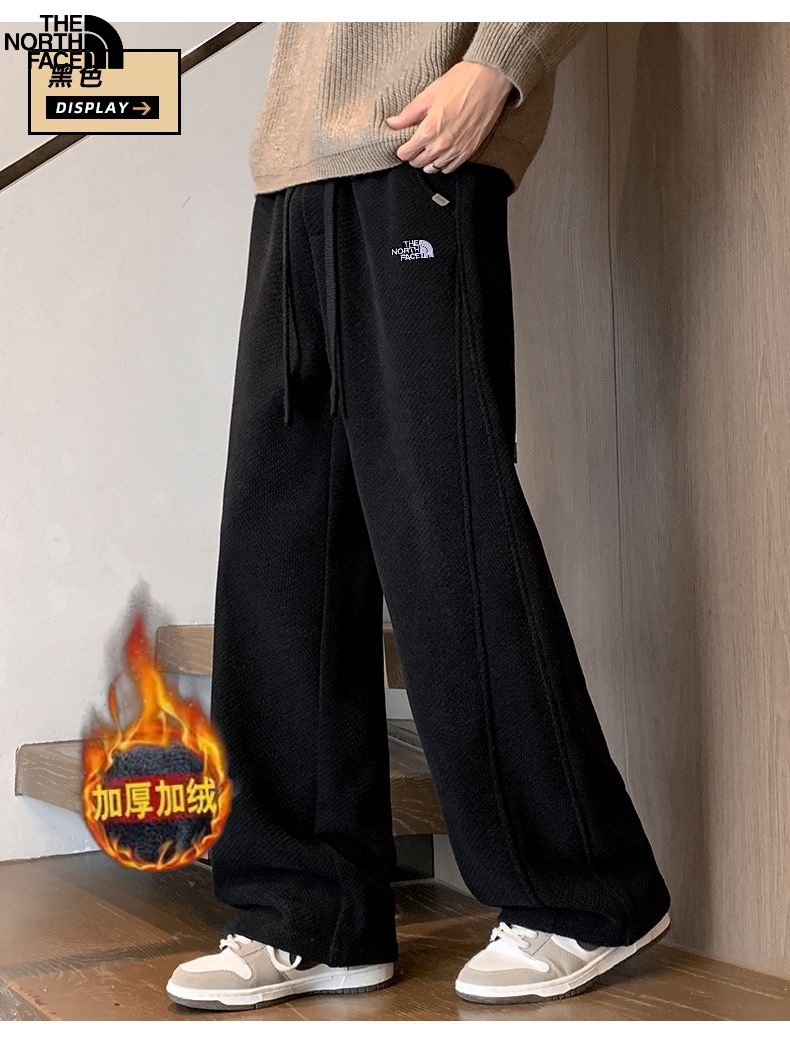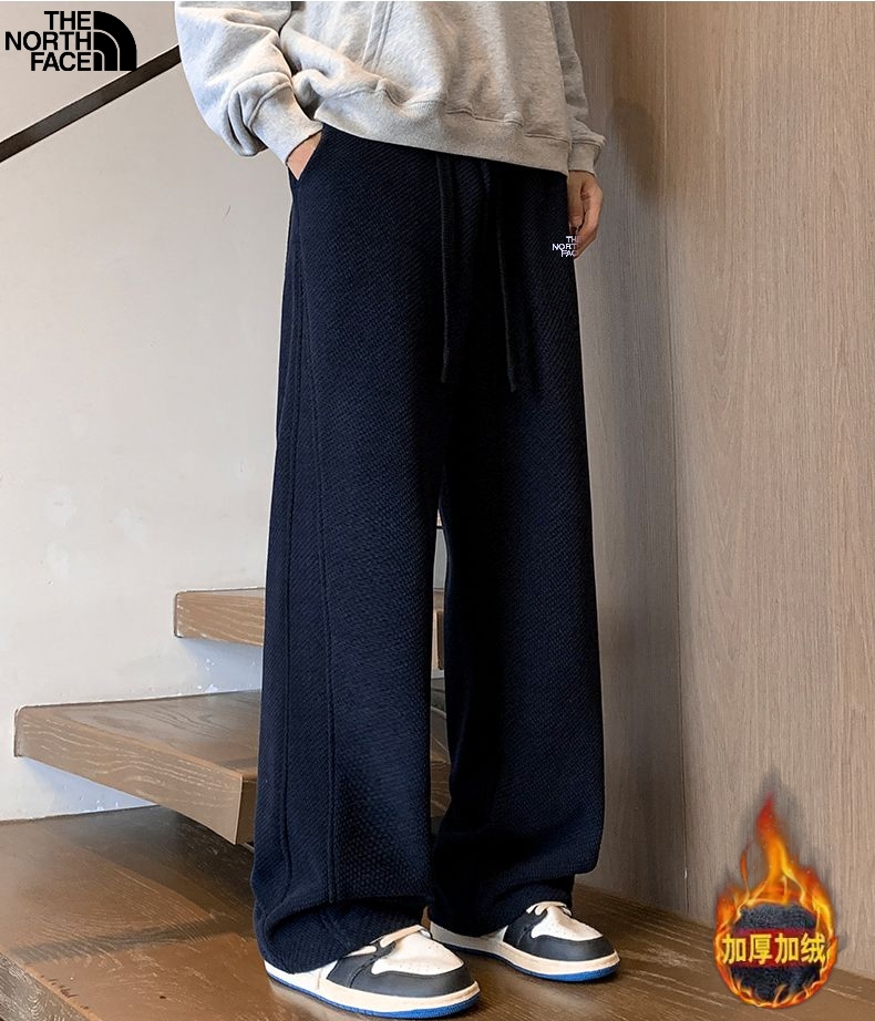 此款售后明年 北面The North Face冬季新款 男女同款松紧腰抽绳加绒加厚百搭博奥绒直筒裤 男士显瘦舒适休闲裤长裤 冬季情侣棉质混纺褶皱纹理长裤 垂坠感十足 棉质混纺面料上身别提多舒适了 款式十分干净清爽大方 腰围抽绳设计 性价比超高的一款好货 颜色 黑色 藏青色