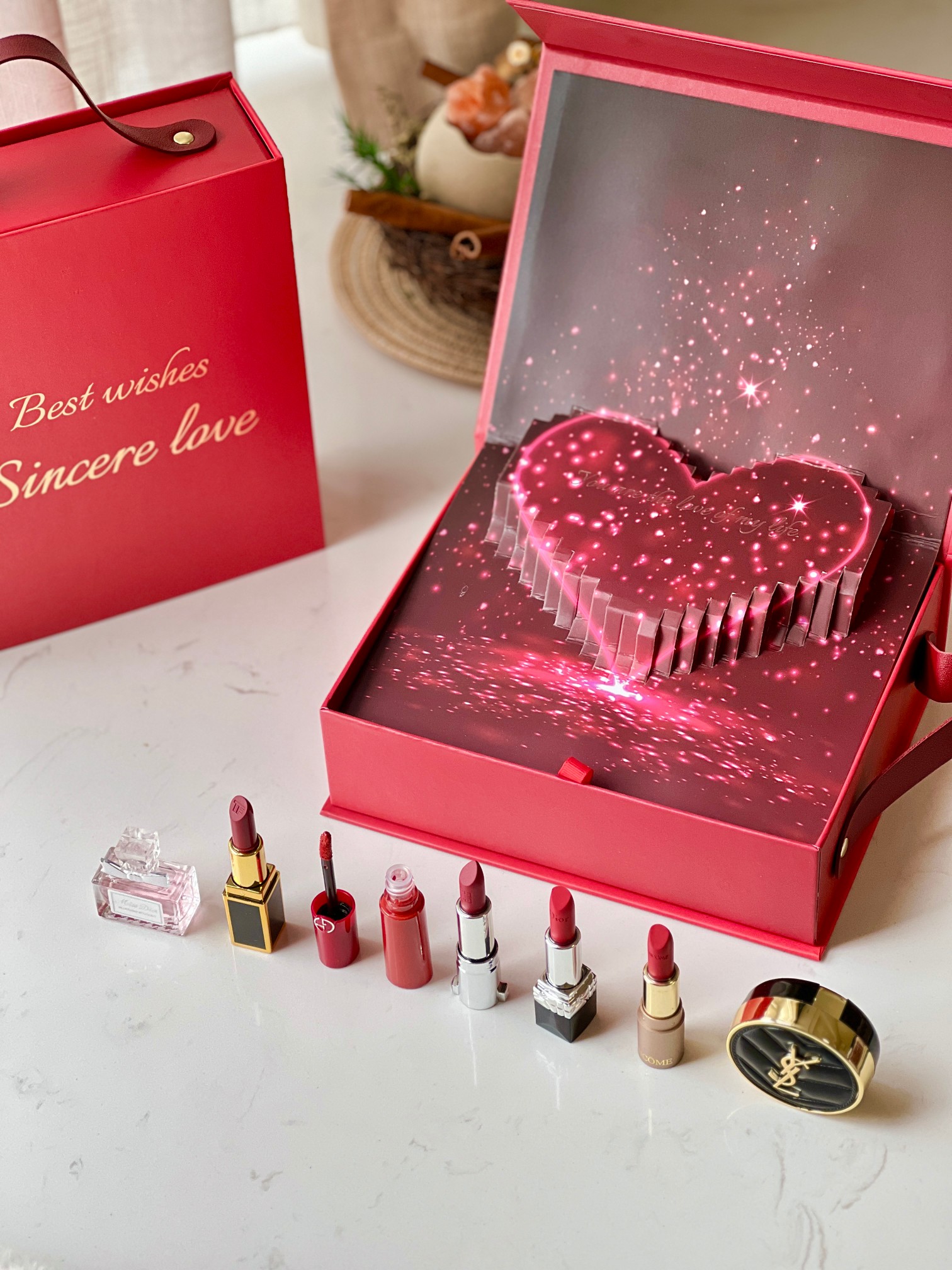 此款式售后到明年 3D立体爱心礼盒 天呐 我已经等不及了 想要一口气安利完 五支热门色号 限定气垫 香水 每个颜色都好好看啊 上嘴超显气质 根本没有死亡色 马上圣诞节了 送女神送闺蜜 礼物可以准备起来啦