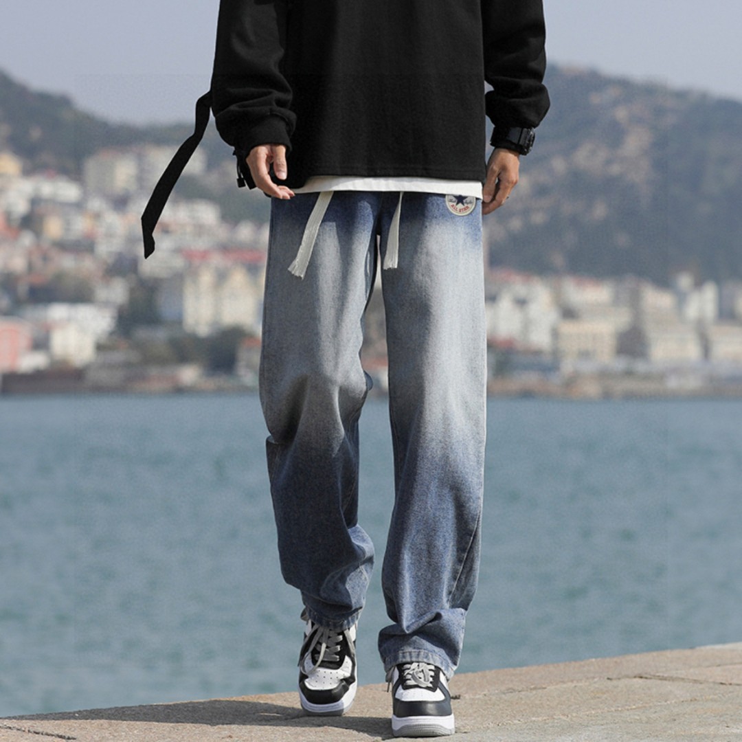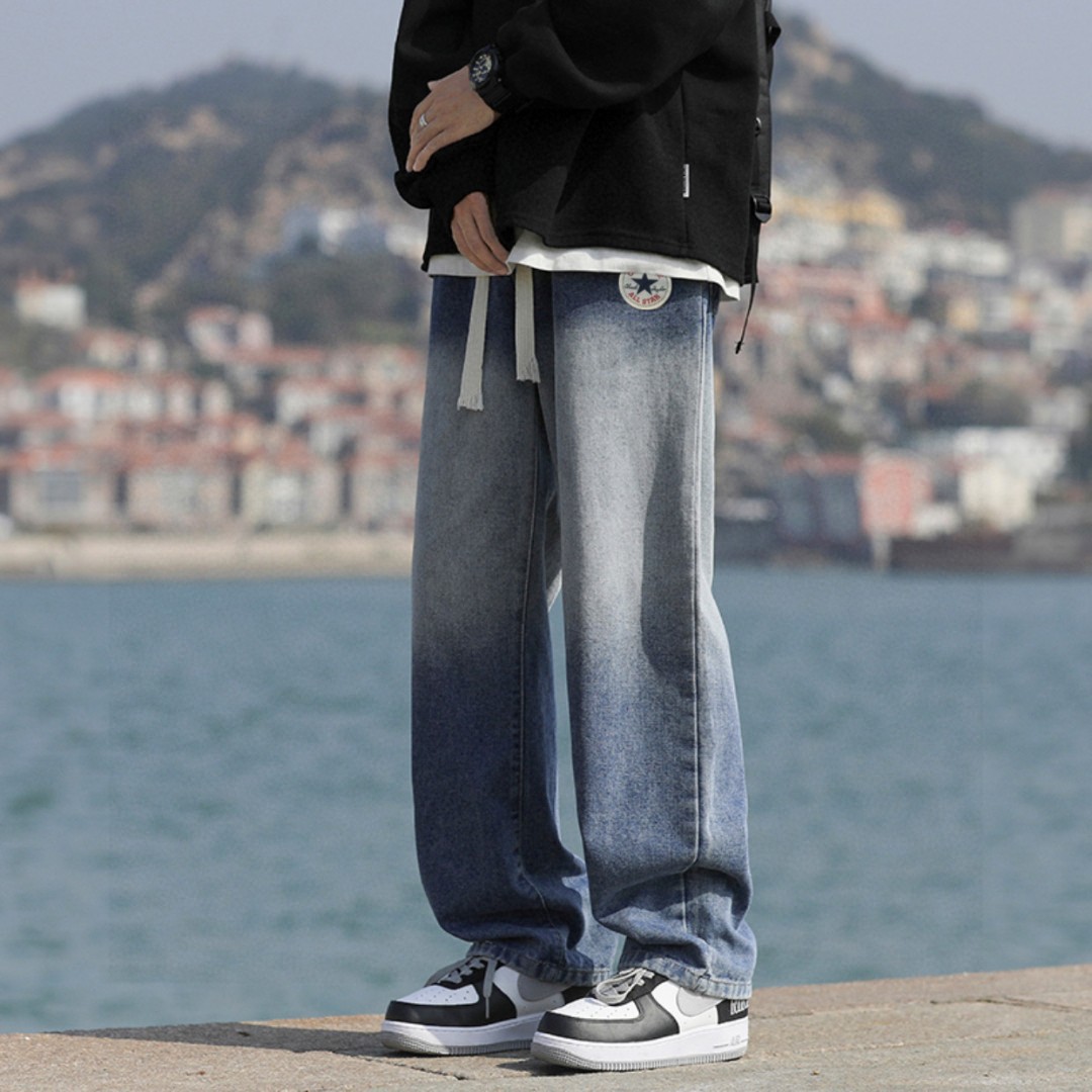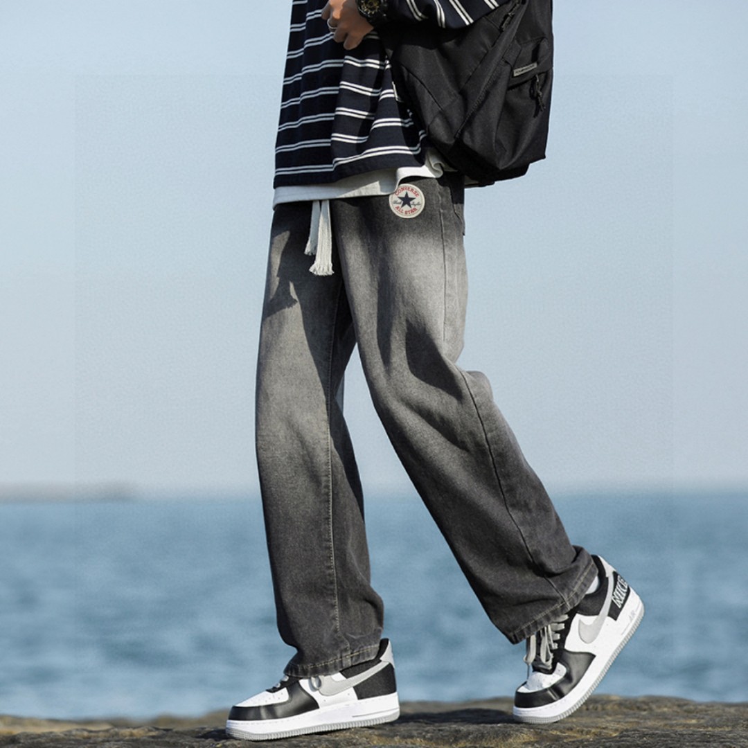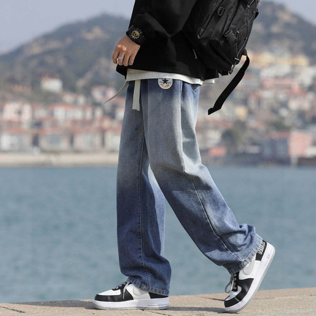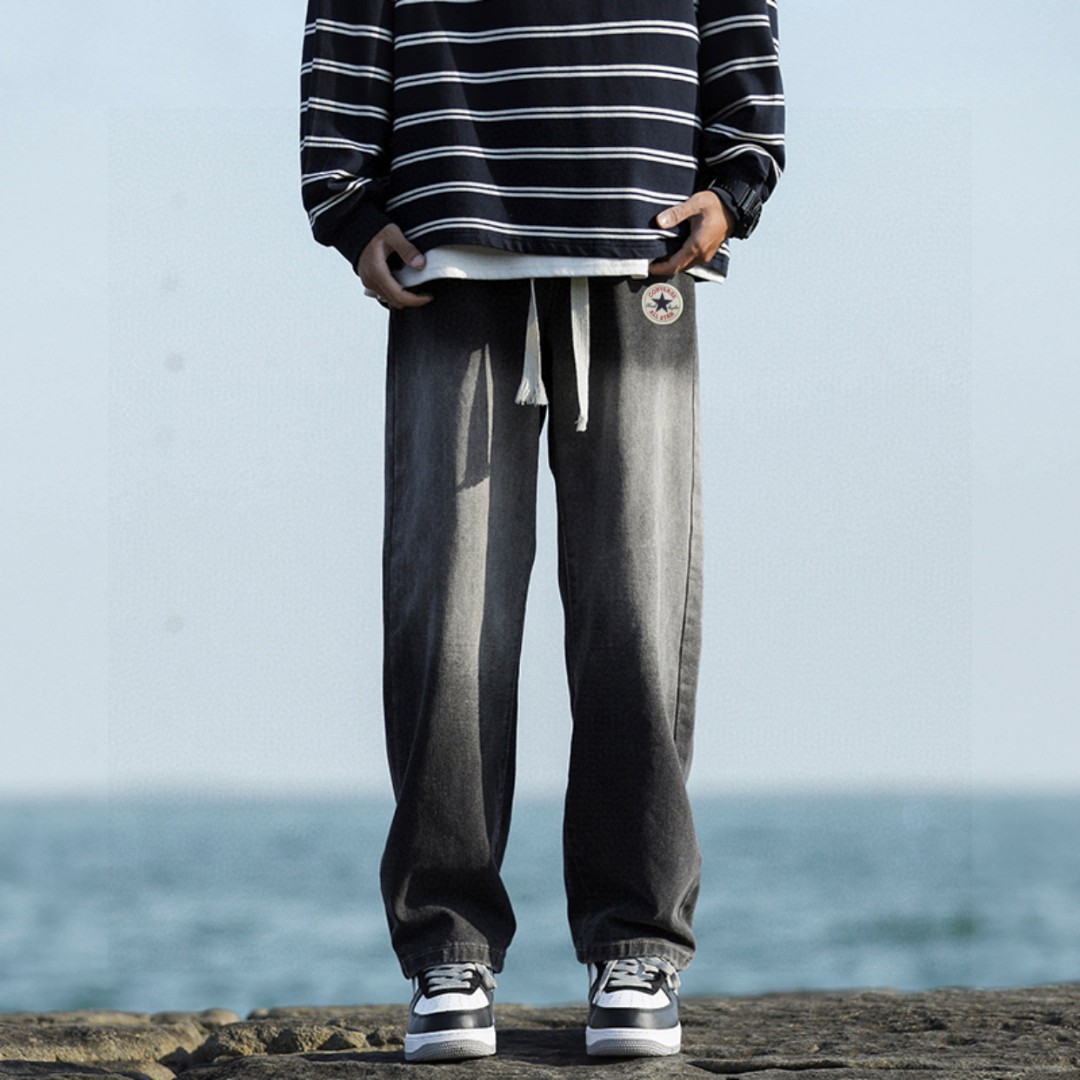 裤型采用渐变水洗工艺 插兜处匡威圆标logo 干净利落的显瘦裤型 简洁大气的腿部线条 量身定做的裁剪 随意搭配上衣就先显得时髦年轻 松紧腰设计 宽松百搭版型 男生女生都可以穿 上身有型