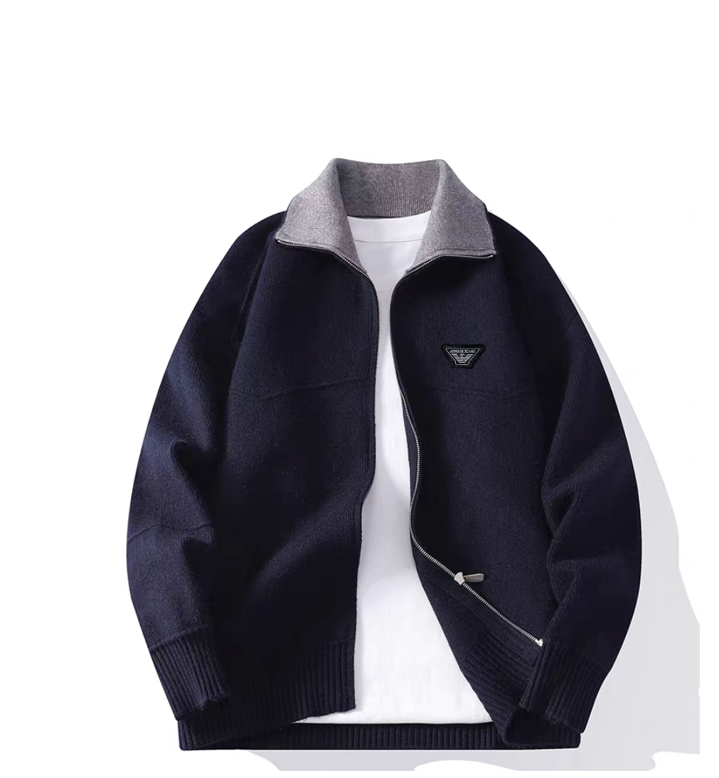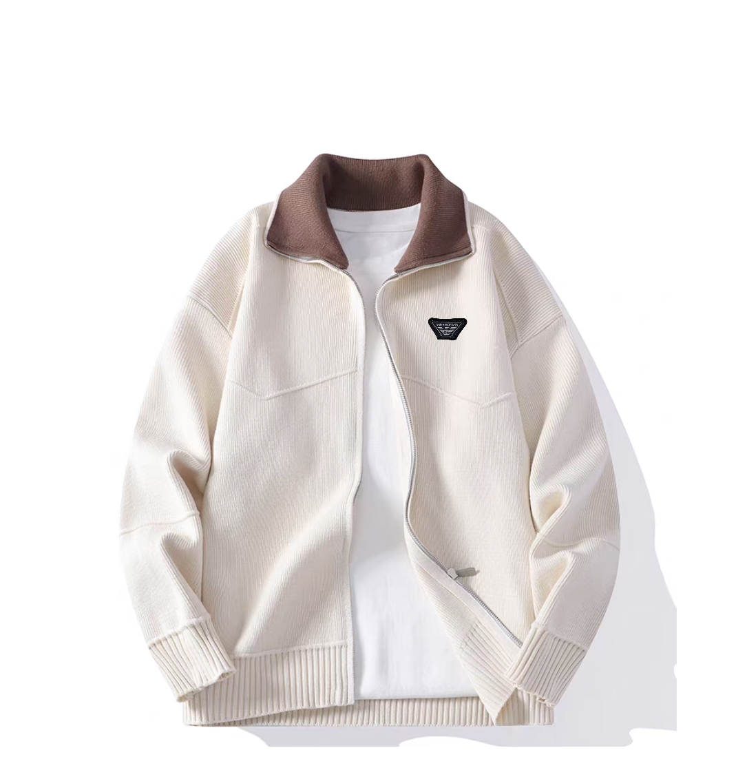 阿玛尼开衫加厚款外套 胸前logo刺绣 万能搭的拉链开衫 羊绒混纺 到手之后就知道超值了 和你们朋友圈跑量的东西就是两码事 这种分量的东西 没有品牌效应的话也得千把块 咱们家经典款式 基本上每年都在卖 尺码 M 4XL 颜色 米色 藏青