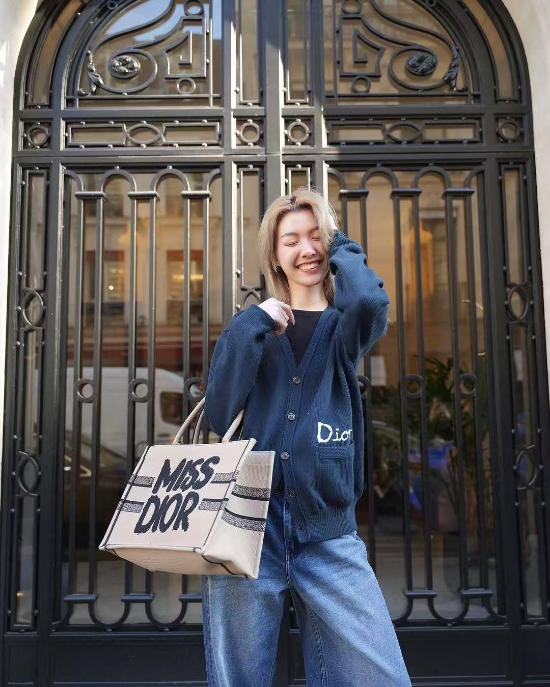 机场穿搭分享 迪奥周杰伦同款开衫毛衣 dior