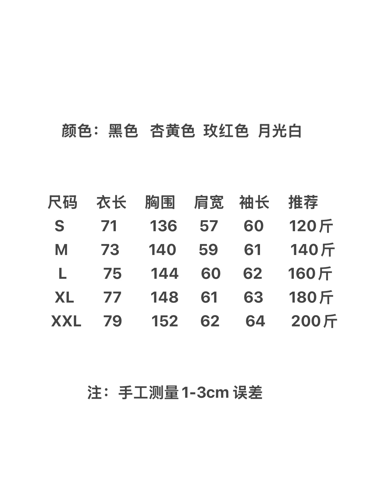 颜色 黑色 月光白 杏黄 玫红