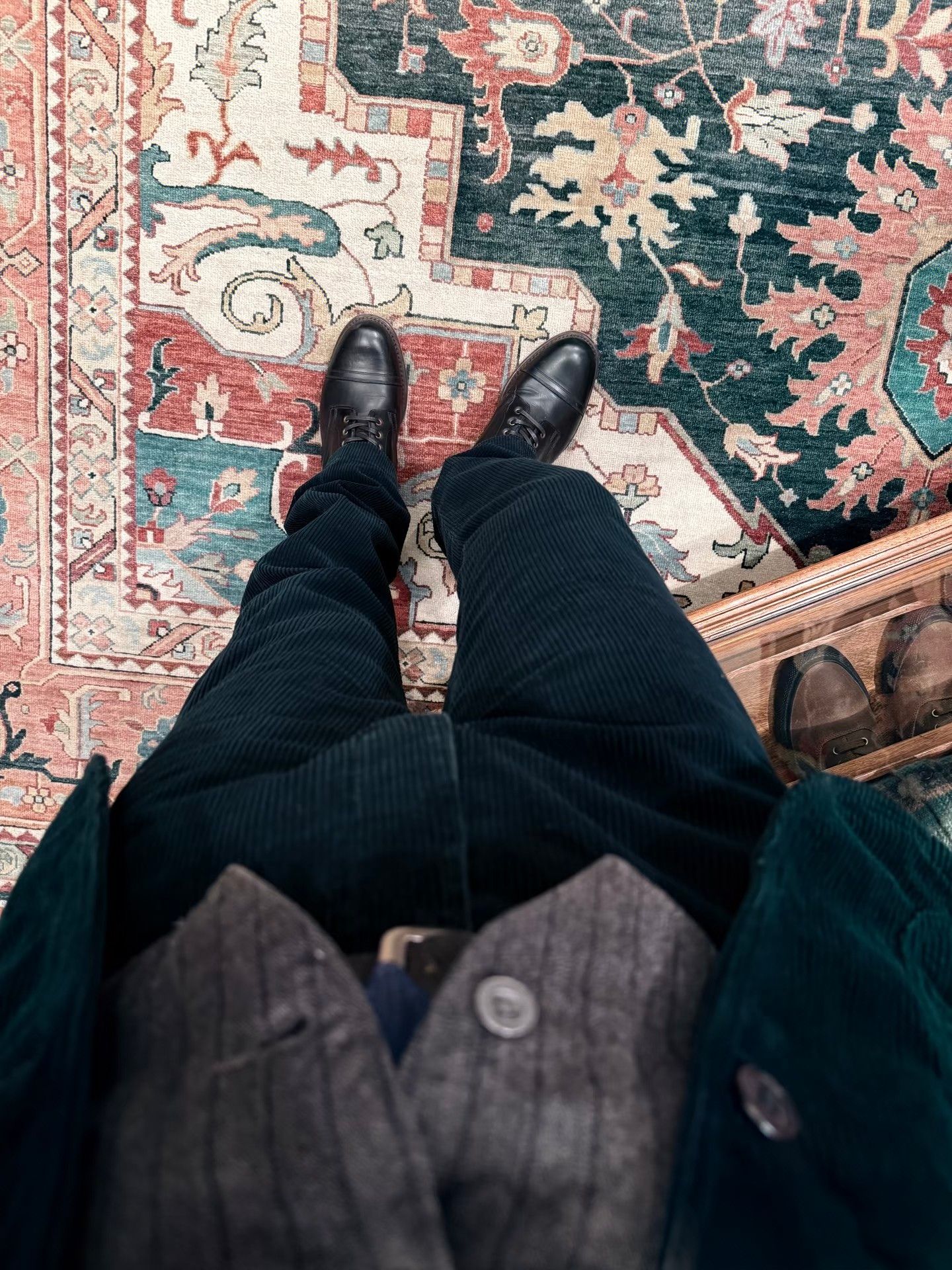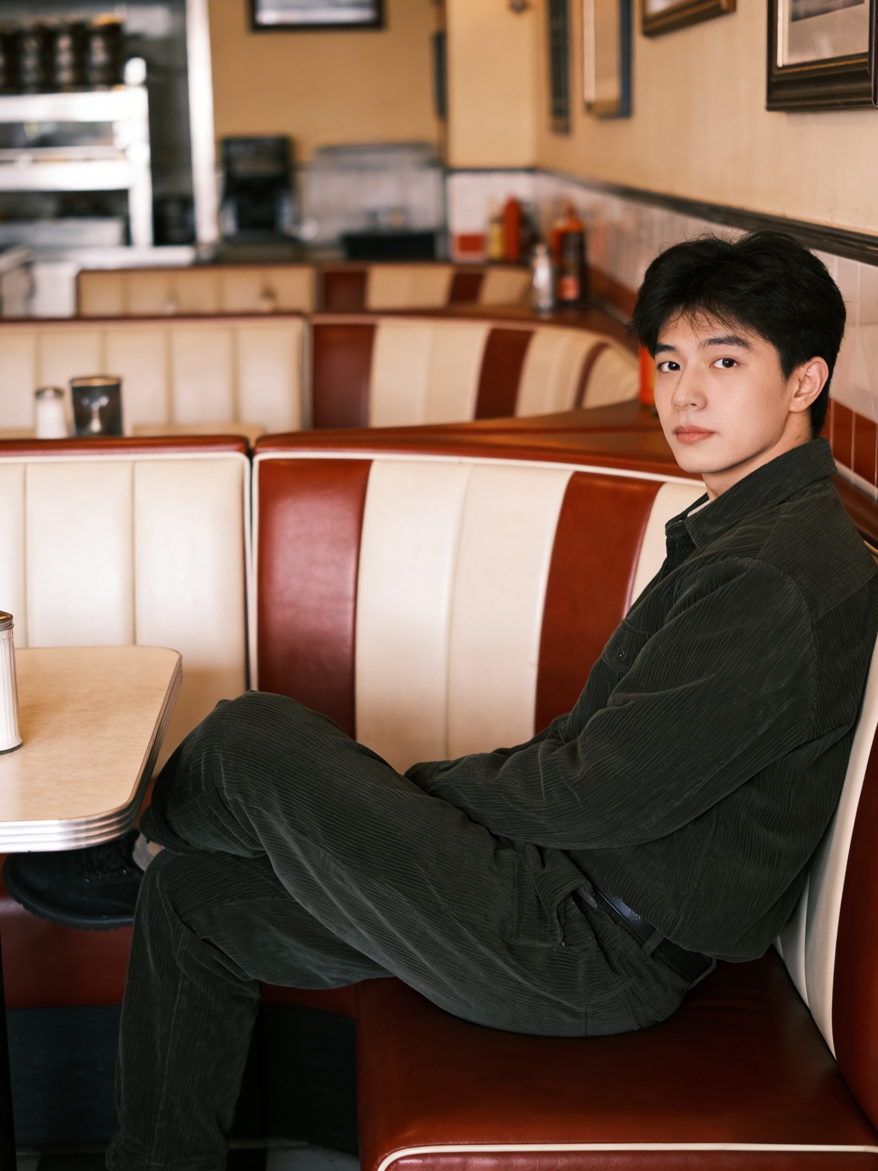 采用纯棉灯芯绒面料 手感丰厚柔软 肌理间透出温润光泽 细节处处蕴含复古巧思 正面利落褶裥 金属纽扣点缀的门襟与拉链开合 腰带环与可调节裤脚按扣袢 赋予穿着个性化的余裕 两侧斜插口袋与背面纽扣式口袋 兼顾实用与线条美感
