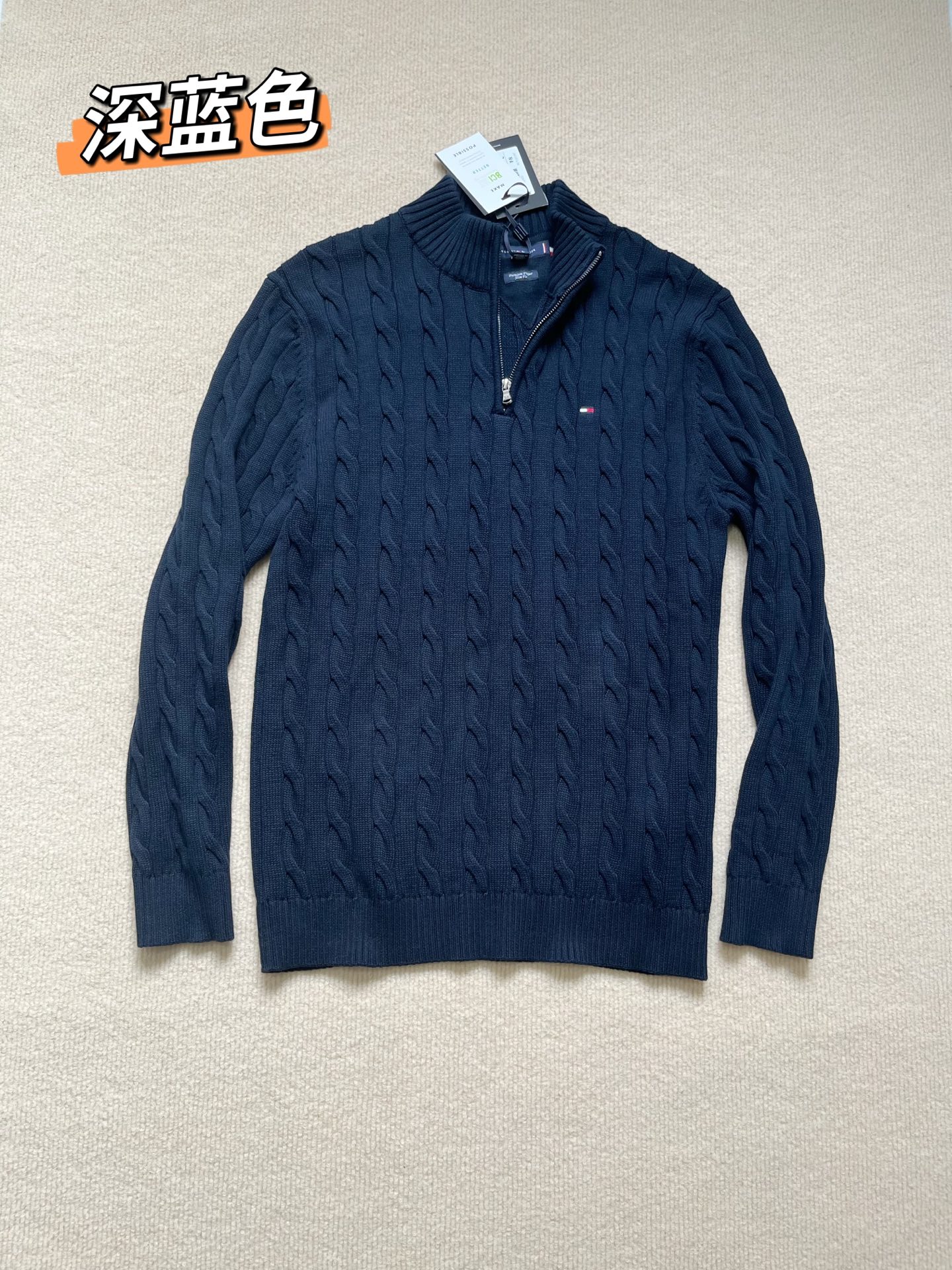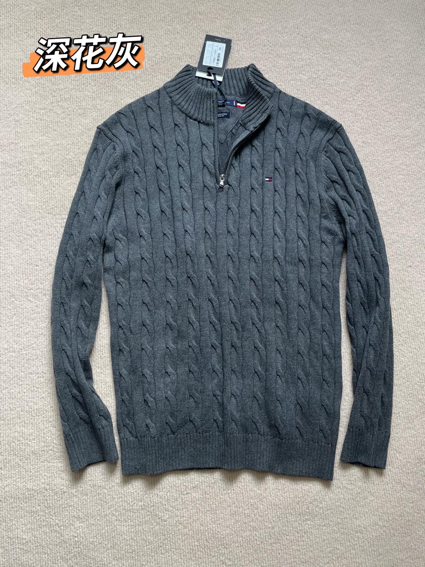 125212457 - Tommy25新款秋冬男装绞花肌理半拉链立领全棉针织衫毛衣 423078