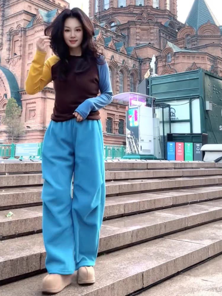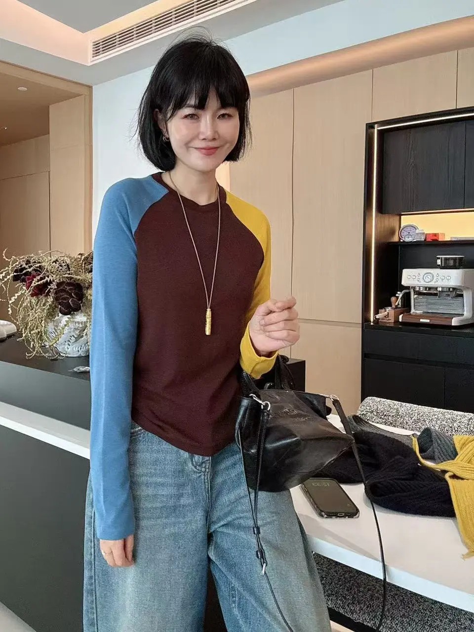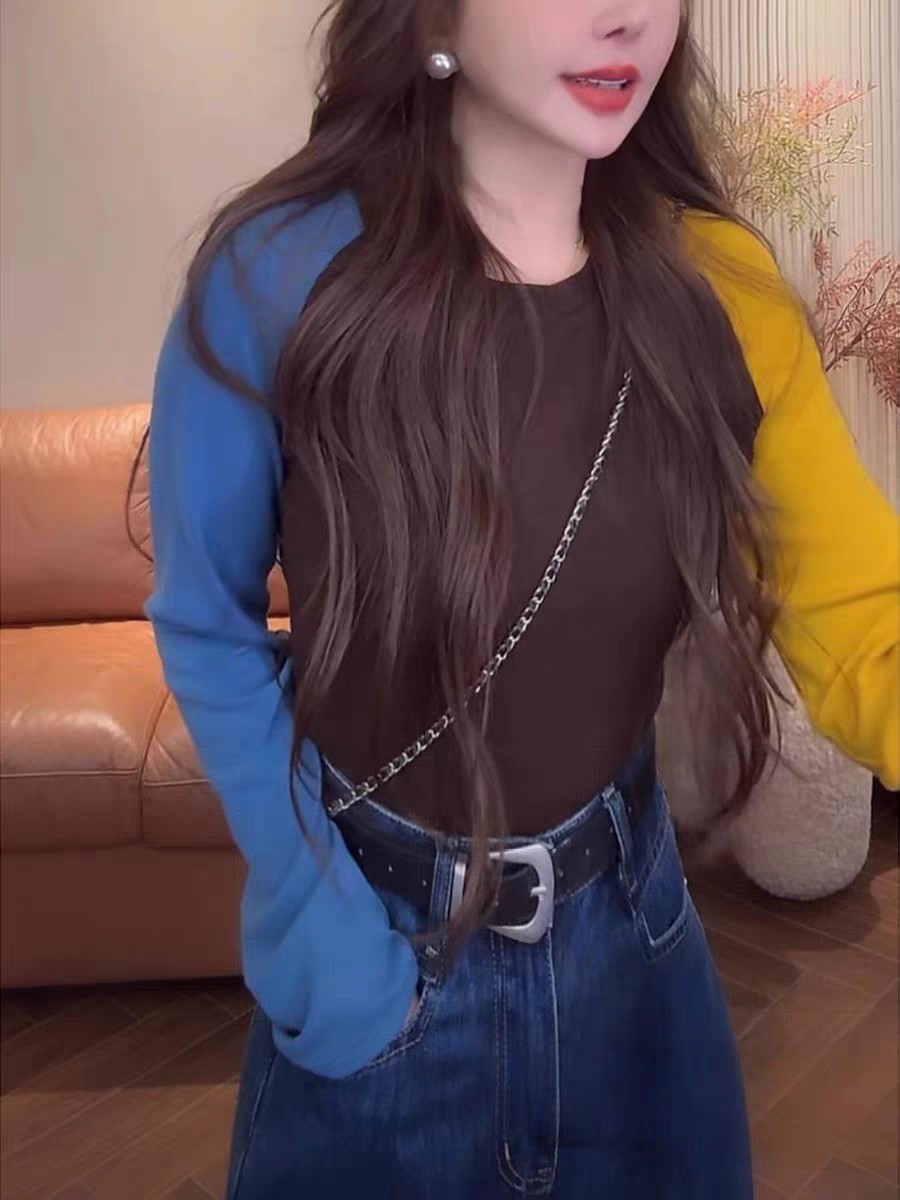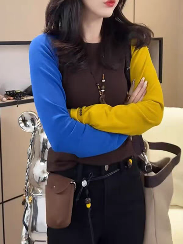 搭配黄蓝撞色插肩袖
