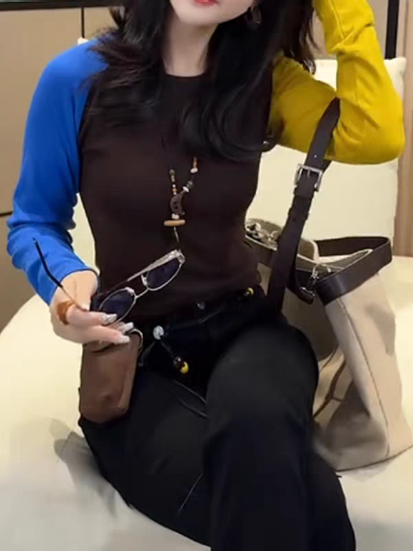 45197803 - 赵露思同款 深灰拼黑色 搭配黄蓝撞色插肩袖 视觉吸睛有个性 409915