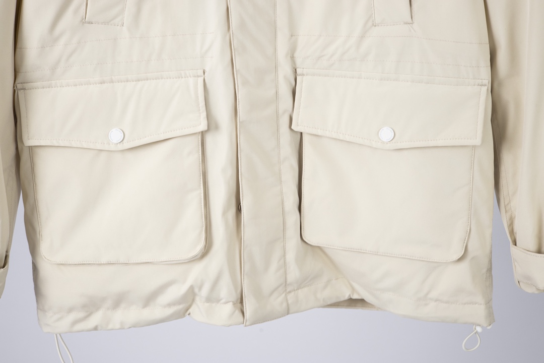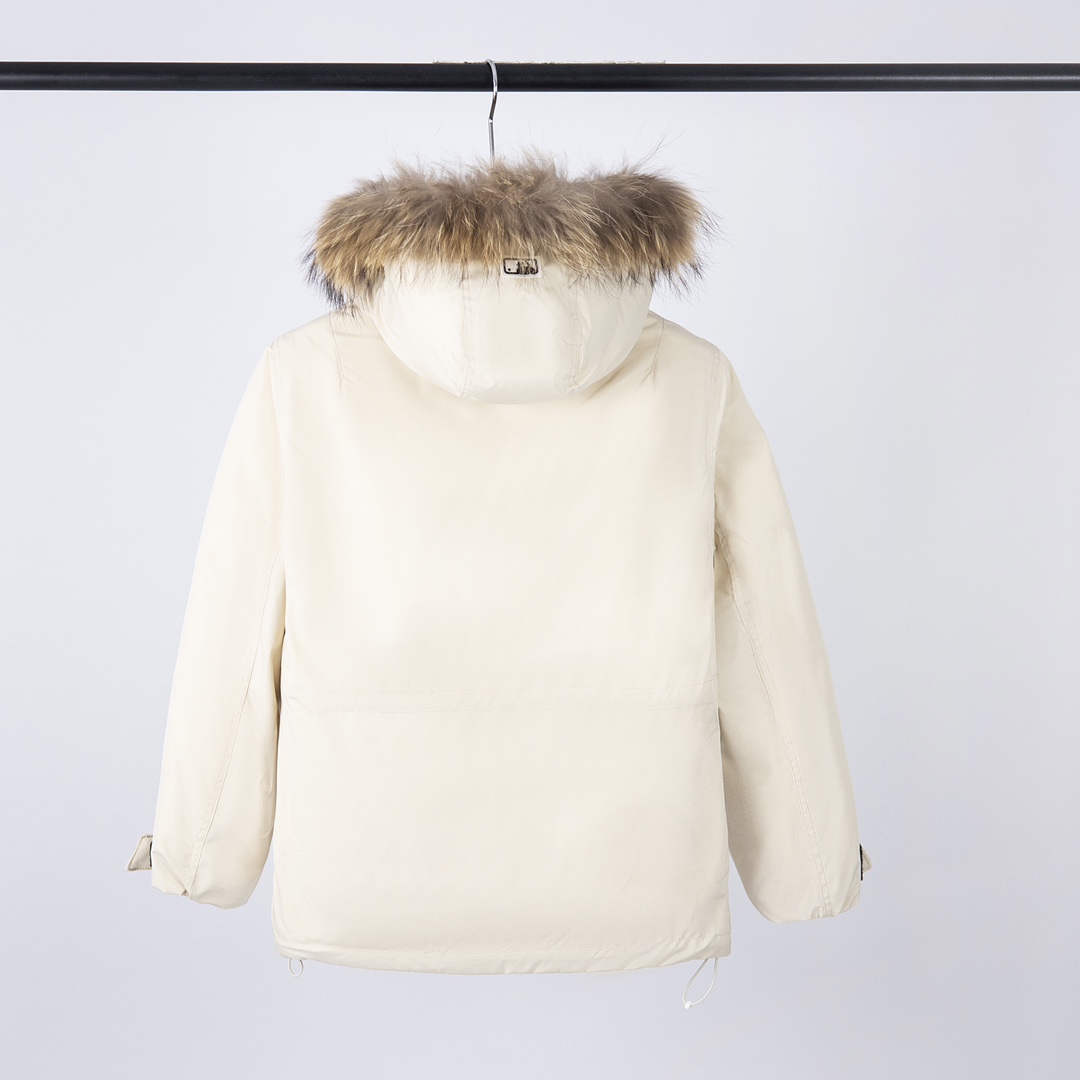 90白鸭绒填充 超级保暖 多口袋工装夹克式羽绒服 上身不死板 显瘦百搭 真貉子毛大毛领 给予24小时贴身守护 双层内胆杜绝跑绒