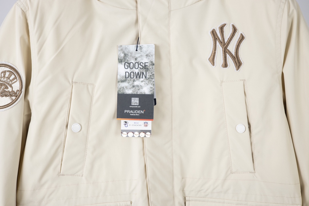 MLB NY纽约洋基队真貉子大毛领刺绣多口袋夹克式连帽羽绒服