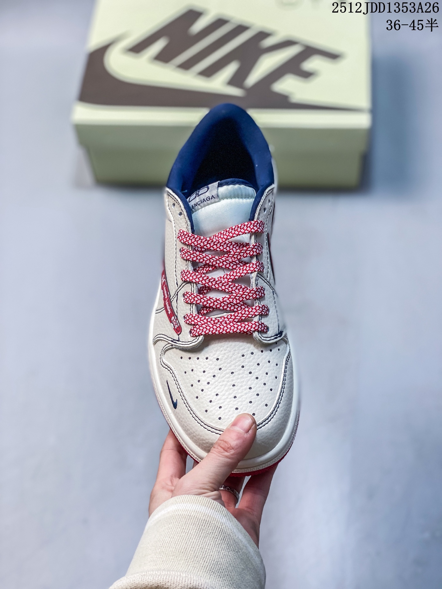 Travis Scott x Fragment Design x Jordan Air Jordan 1 Low OG SP 巴黎世家联名 奶白猪八灰蓝勾 多方联名合作融合了Travi翻毛蓝勾s Scott 独特的音乐风格 藤原浩个性的设计风格以及Jordan品牌的经典元素 使其成为一双具有独特身份和价值的鞋子 清新而立体的外观加上联名标识更突出了其独特身份 这种配色方案显示出活力和时尚感 在视觉上引人注目 鞋身的质感和细腻的细节处理使其显得高端而格调十足 这款 倒钩 联名是设计与创意完美结合 融合多方的个性风格是一款备受瞩目的潮流鞋款 低帮休闲板鞋 定制鞋盒 大厂纯原品质出货 超高清洁度 皮料切割干净无任何毛边 细节完美