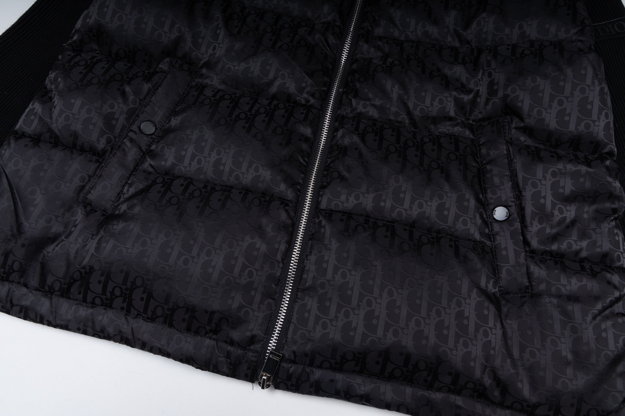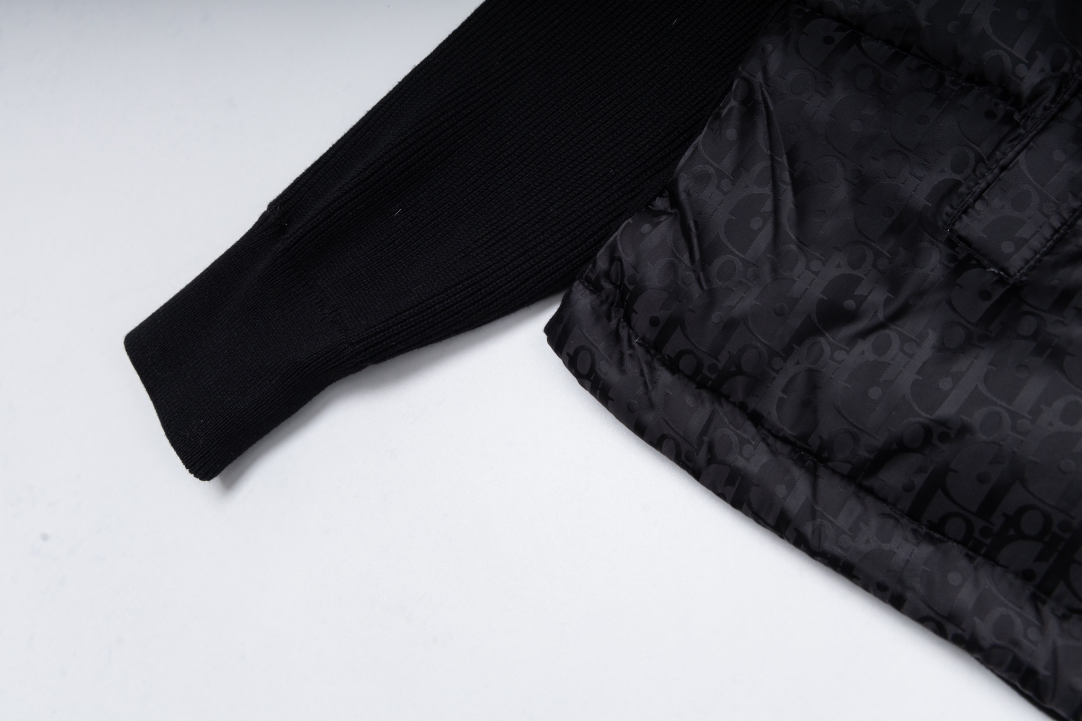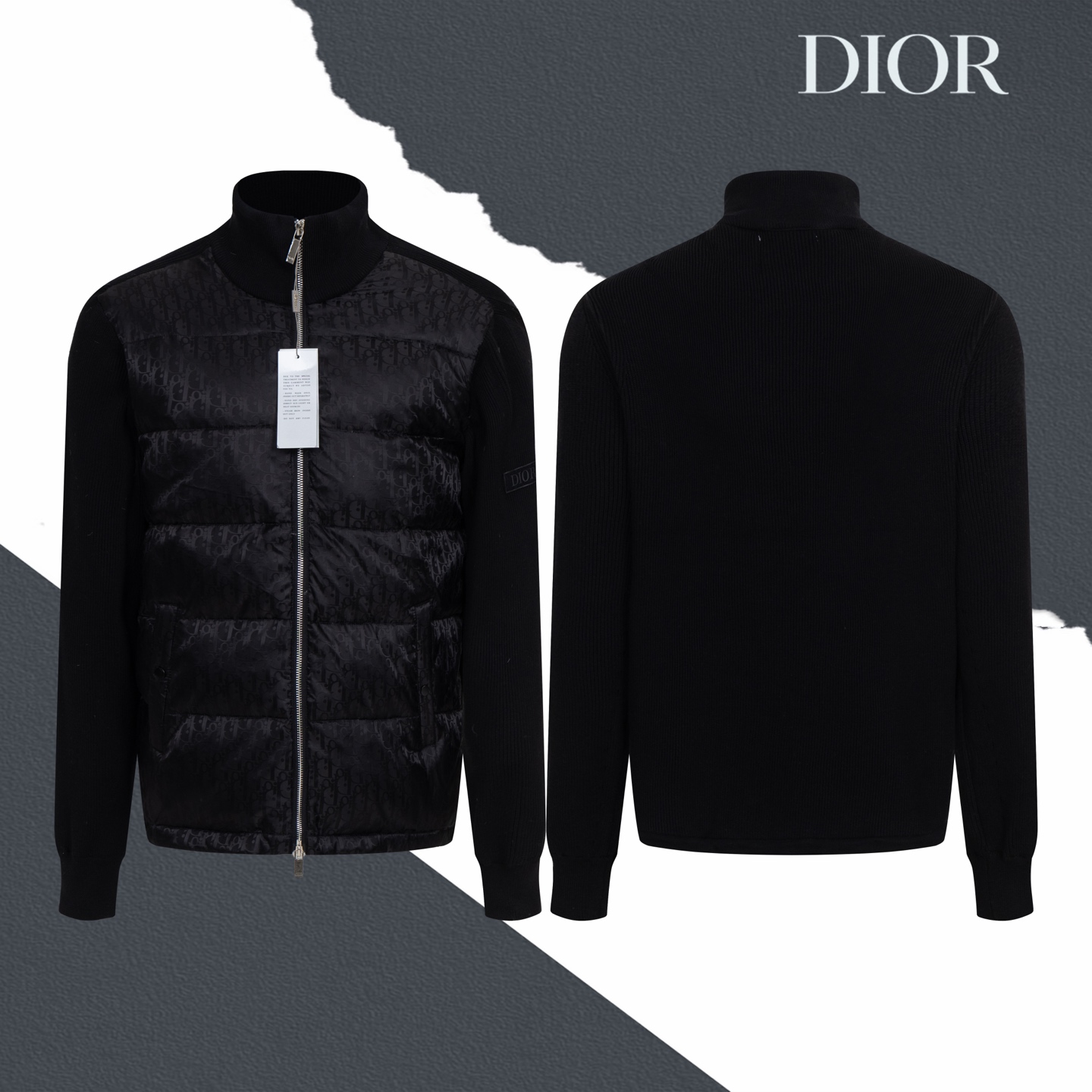 款号 SL363 DIOR迪奥满印暗纹拼接针织立领羽绒服 面料采用聚酯面料拼接而成 内里羽绒采用90鸭绒填充 填充物将近400g 上身舒适保暖 蓬松度高 区别市场垃圾绒 男女同款 官网细节一致 全套包装 三标齐全 防潮纸 区别市场通货 随意对比 OS版型 最大可穿220斤无压力 上身舒服 尺码 S XL