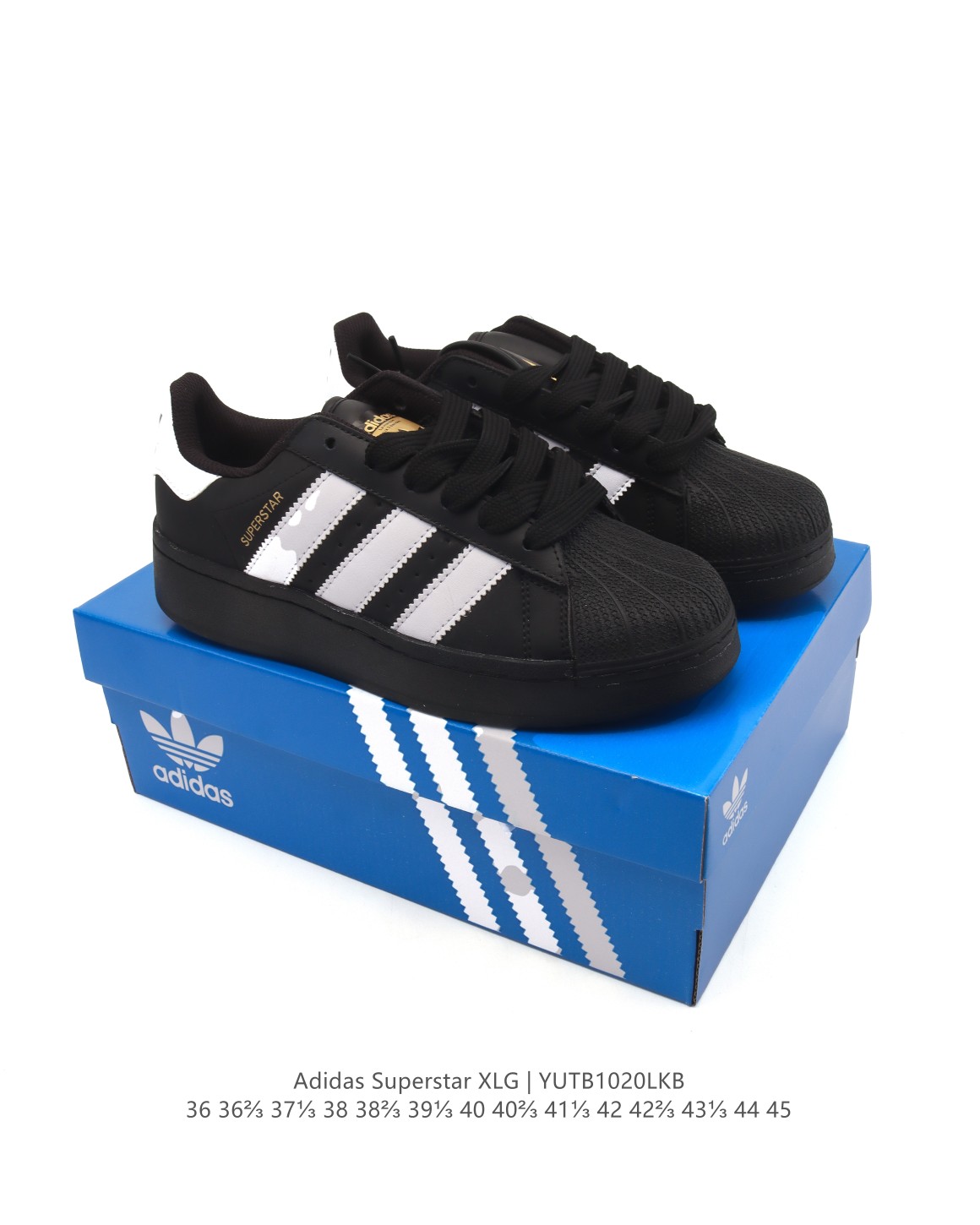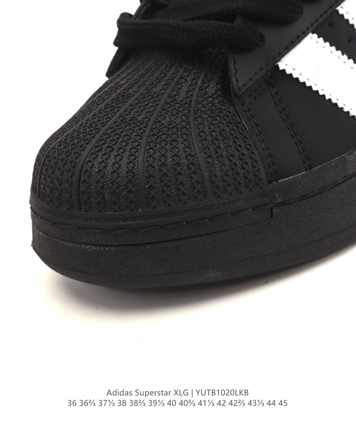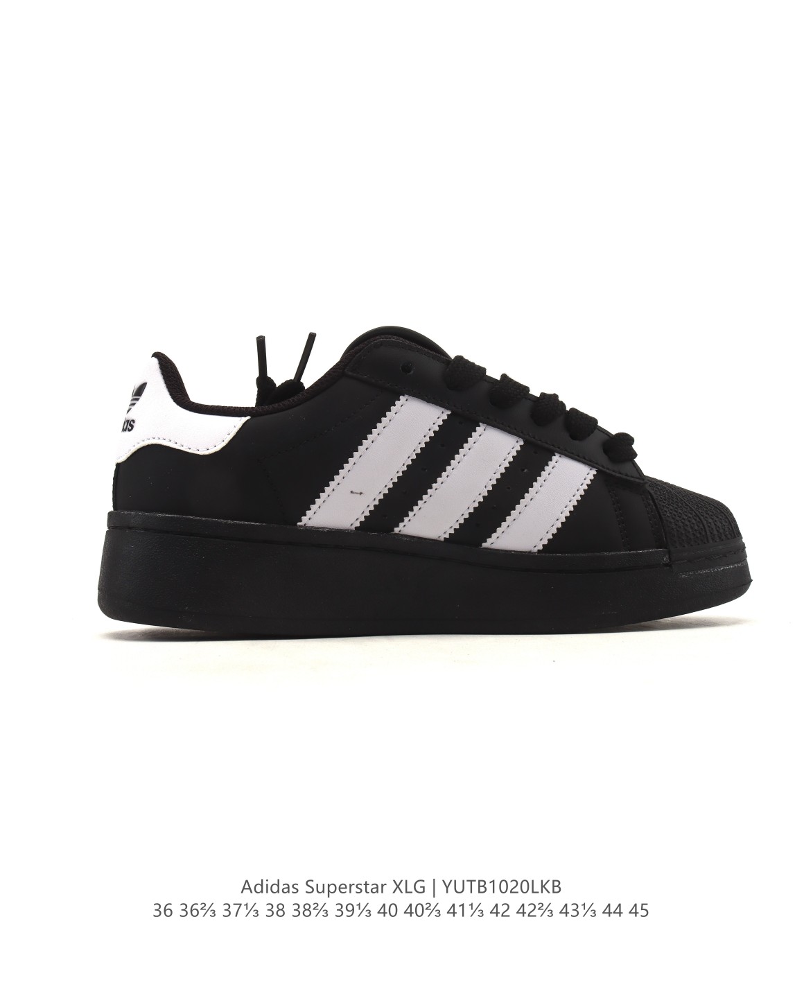 阿迪达斯 三叶草Adidas Originals Superstar XLG 贝壳头系列 低帮厚底松糕经典百搭休闲运动板鞋 当你试图定义adidas Superstar系列 总有大胆设计突破你的想象 这款鞋以70年代经典运动鞋为蓝本 新鲜注入现代时尚元素 加大比例设计 配锯齿状三条纹 个性型格 就是要秀 选用皮革鞋面 不失复古本色 同时以新潮造型重塑经典 含贝壳形鞋头 助你自信迈步 常规版型 系带设计 皮革鞋面 织物衬里 橡胶外底