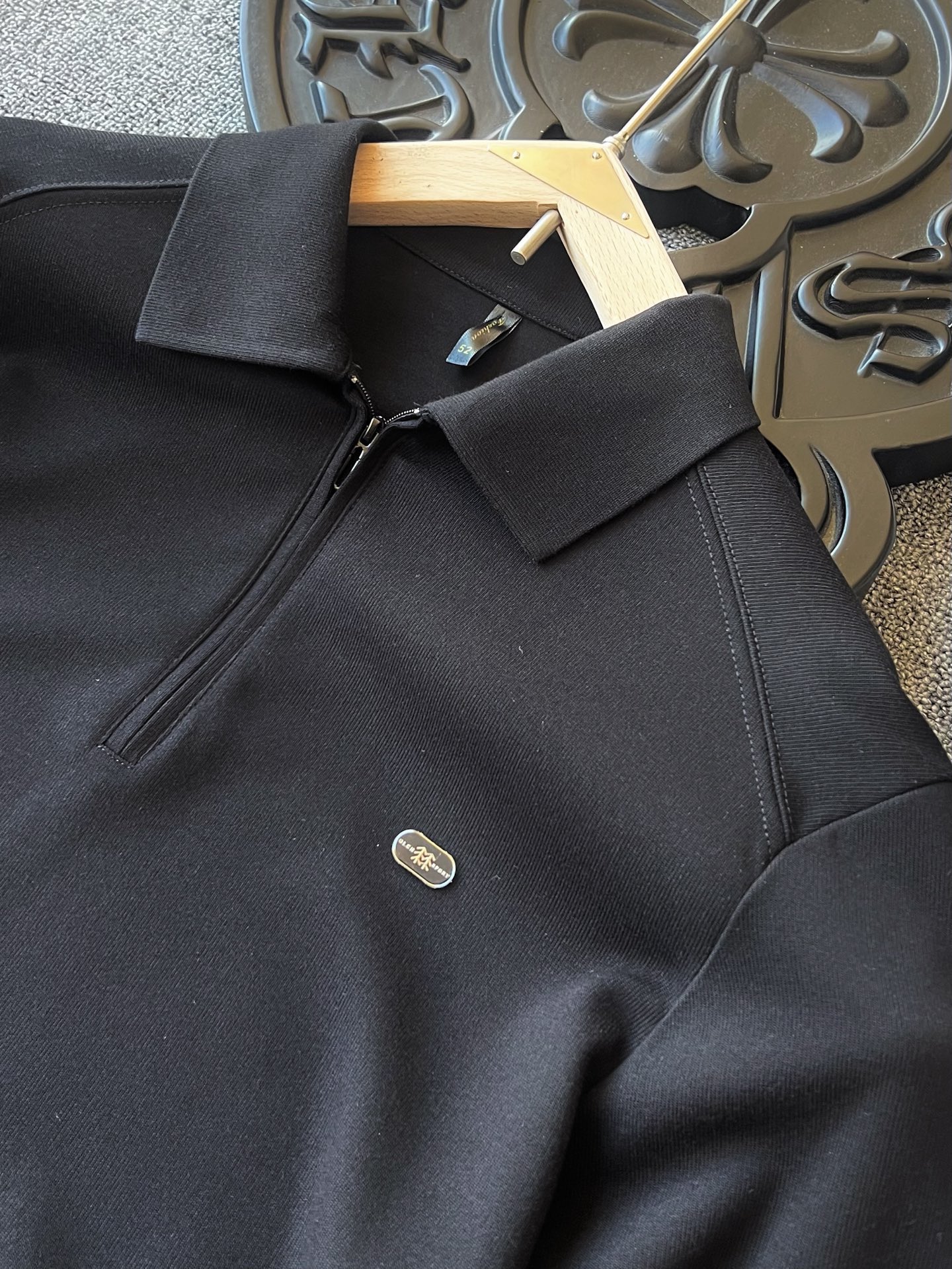 细节细节再细节 KOLON家商场新款卫衣款长袖翻领Polo衫 半拉链设计 非常有味道 YKK代工哑光烤漆金属拉手袢 胸前采用水晶亚格力封边内嵌可隆小树标识 十分精致 双肩下方做了拼接以及双针压线 高端设计