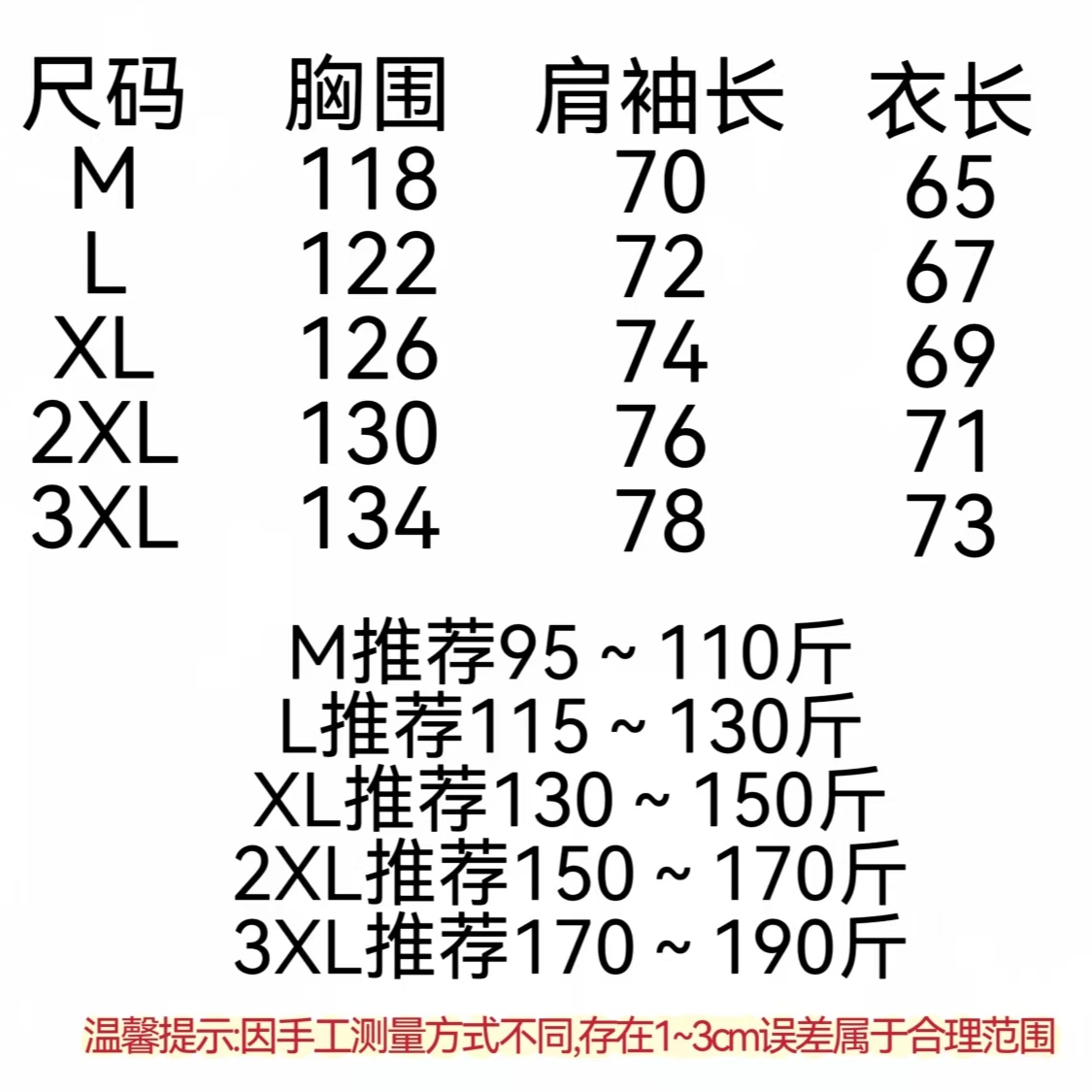 尺码 M 3XL