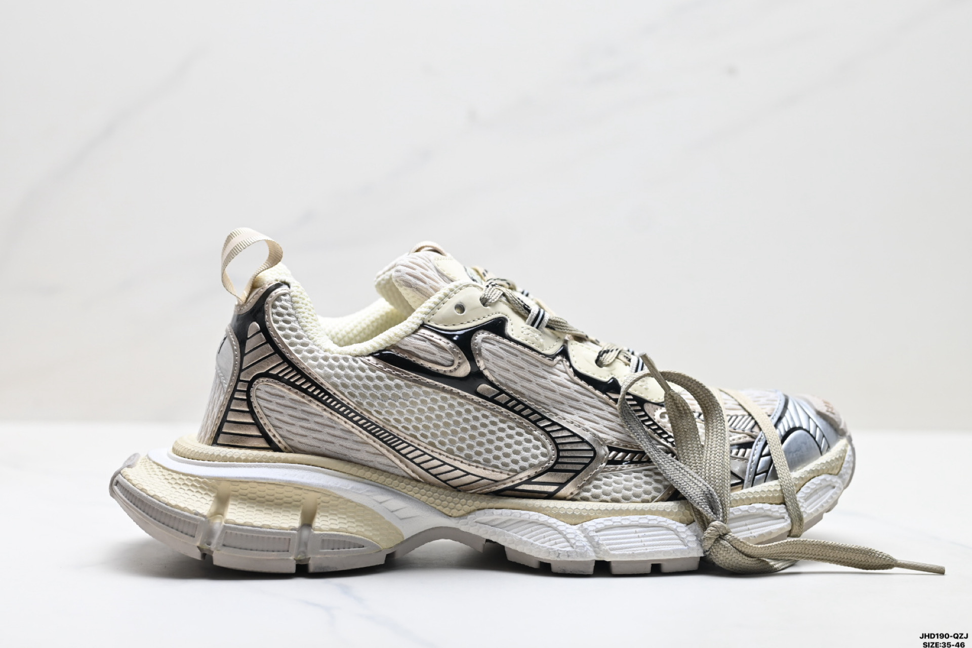 公司级Balenciaga巴黎世家 3XL 网布透气 低帮复古老爹鞋 采用环保再生超纤革与网眼织物鞋面材质 原鞋一致重度做旧效果 全原装EVA环保去臭环型鞋垫 全新开发五层私模 搭载轻量发泡MD缓震中底 组合防滑橡胶大底 货号 679442 W1B02 0103 ID JHD190 QZJ