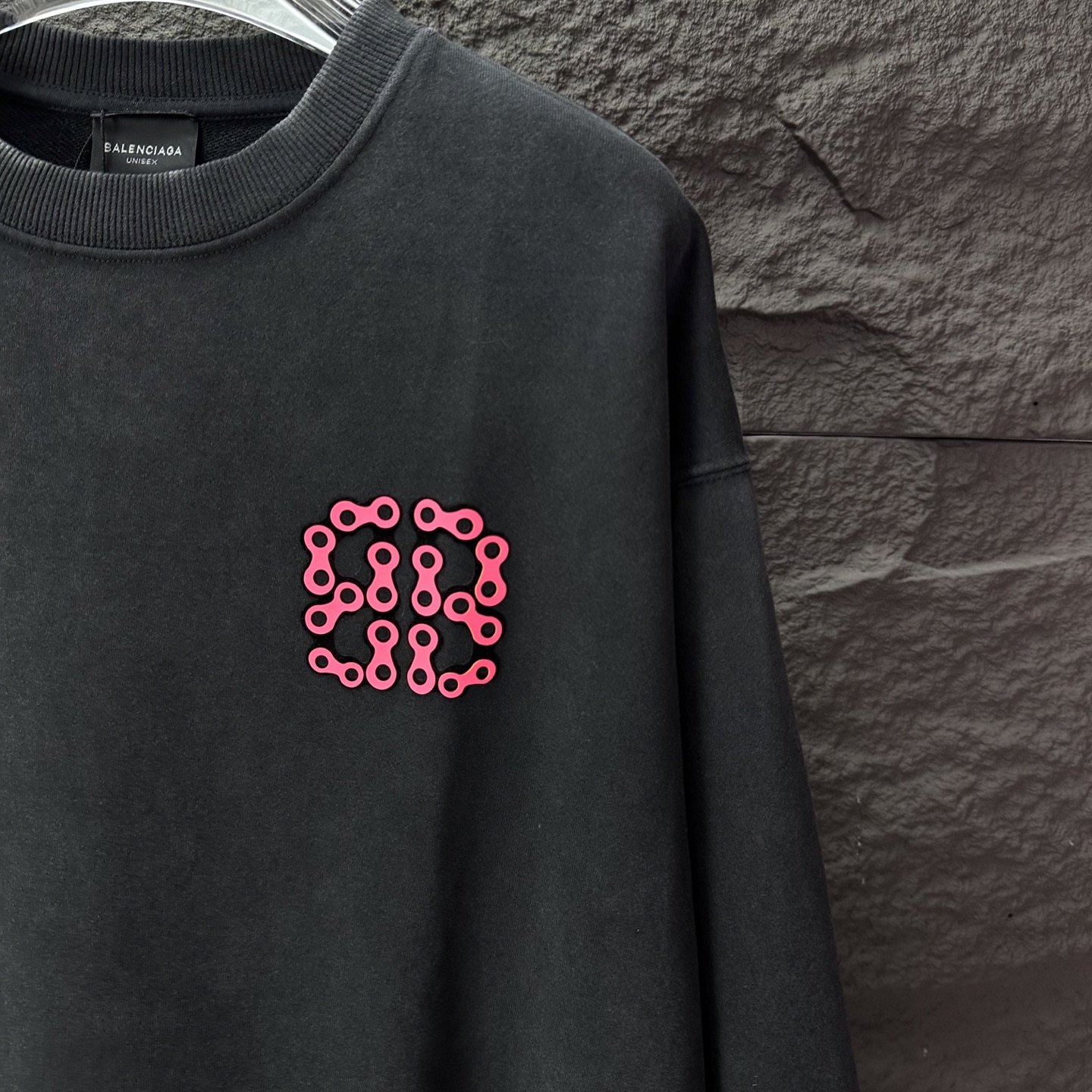 140143559 - 巴黎世家2025新款立体压胶字母洗水做旧情侣款圆领卫衣 高版 337700