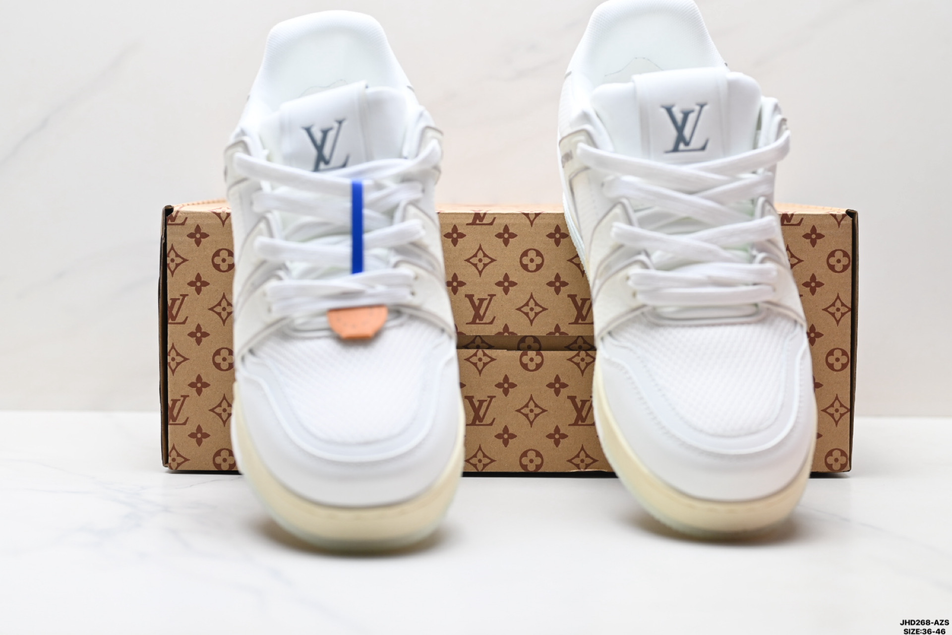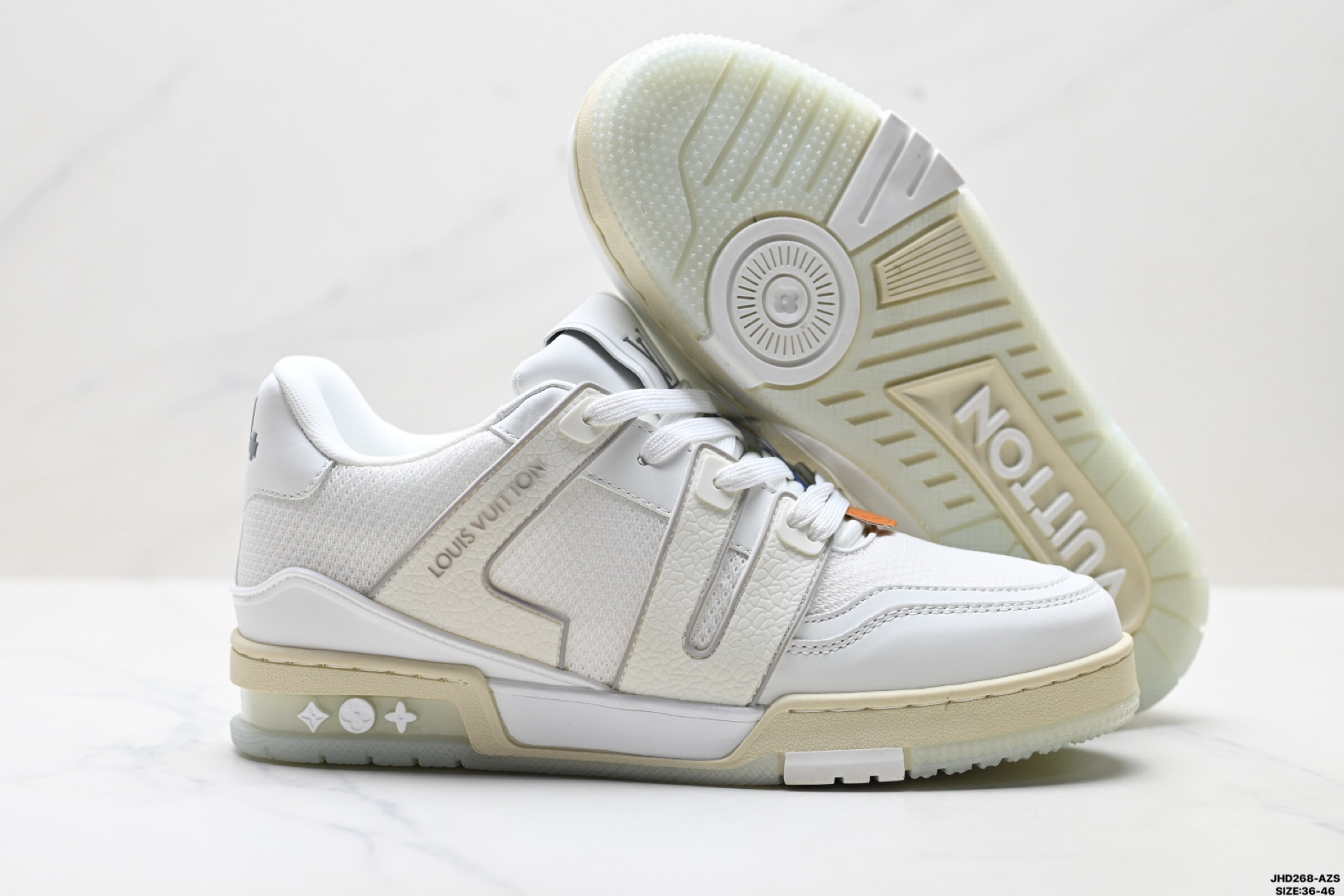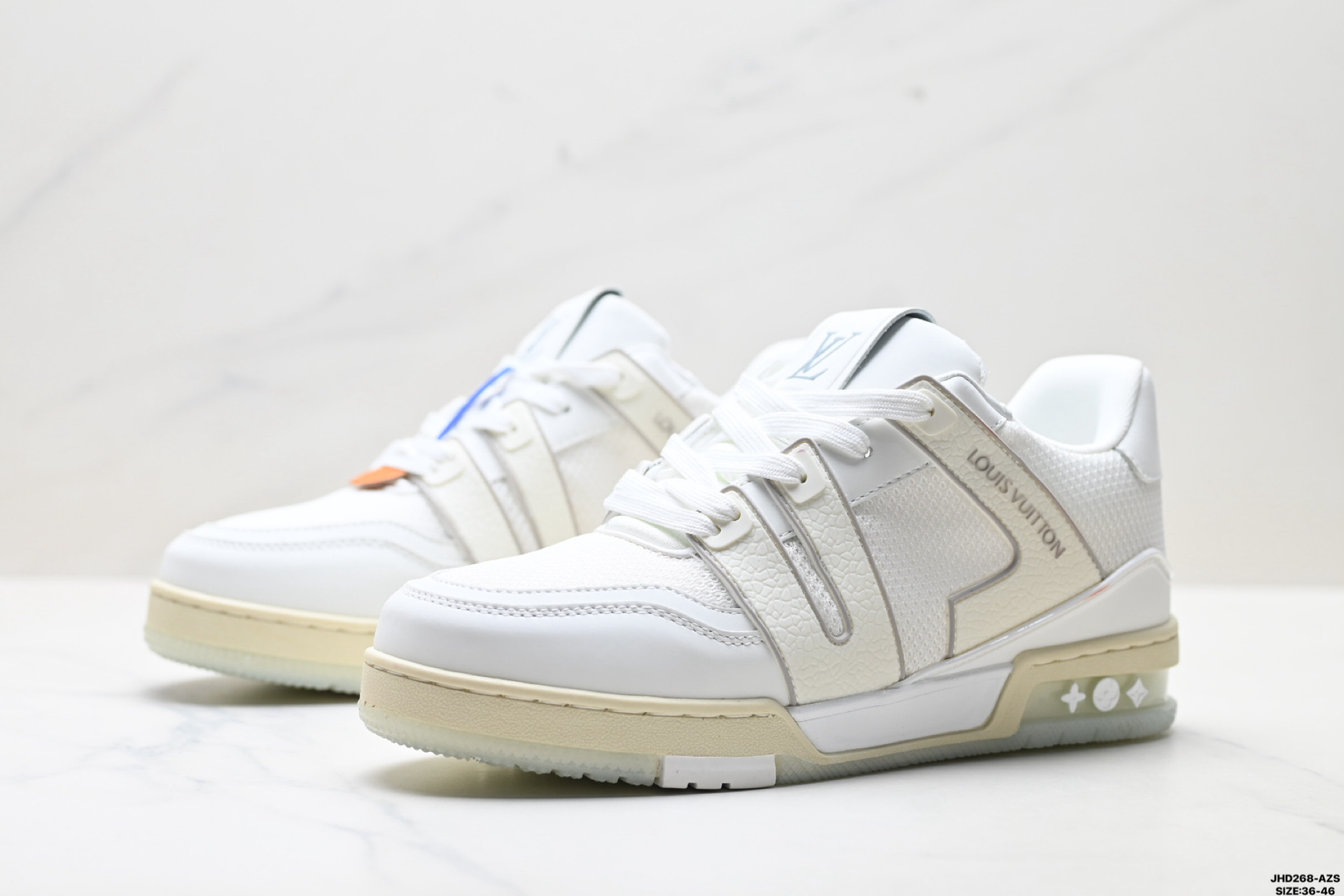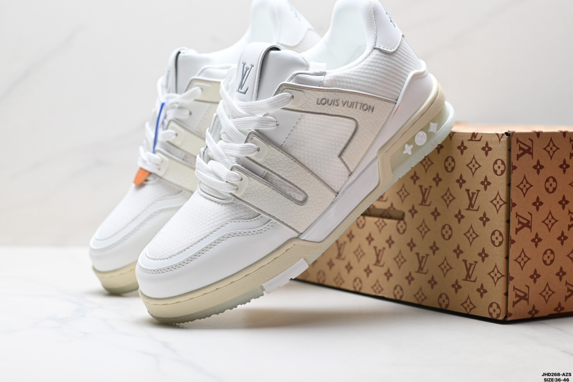 公司级Louis vuitton Trainer Sneaker Low 路易威登 休闲运动文化百搭板鞋 舒适防滑底和百搭性霸屏整个时尚娱乐圈 细节调整完美主义 鞋面采用柔软皮革鞋面 独家开模大底 侧边采用3D打印标志性Logo 尽显贵族时尚气息 配带正品全套包装 尺码 36 46 ID JHD268 AZS