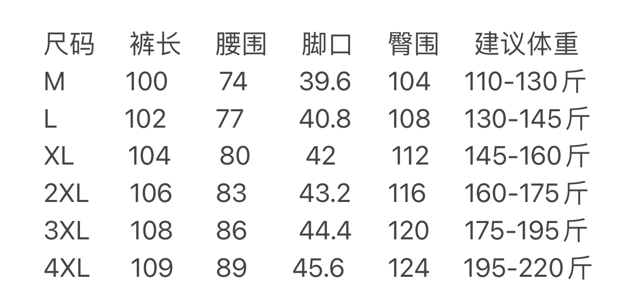 尺码 M 4XL