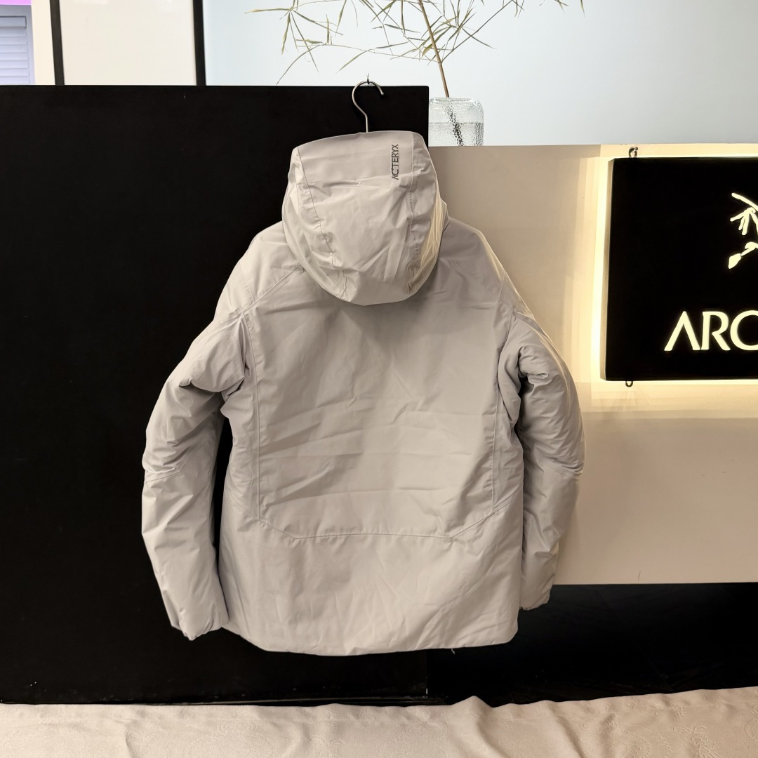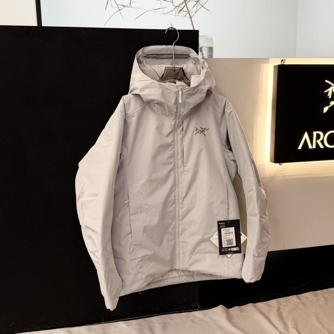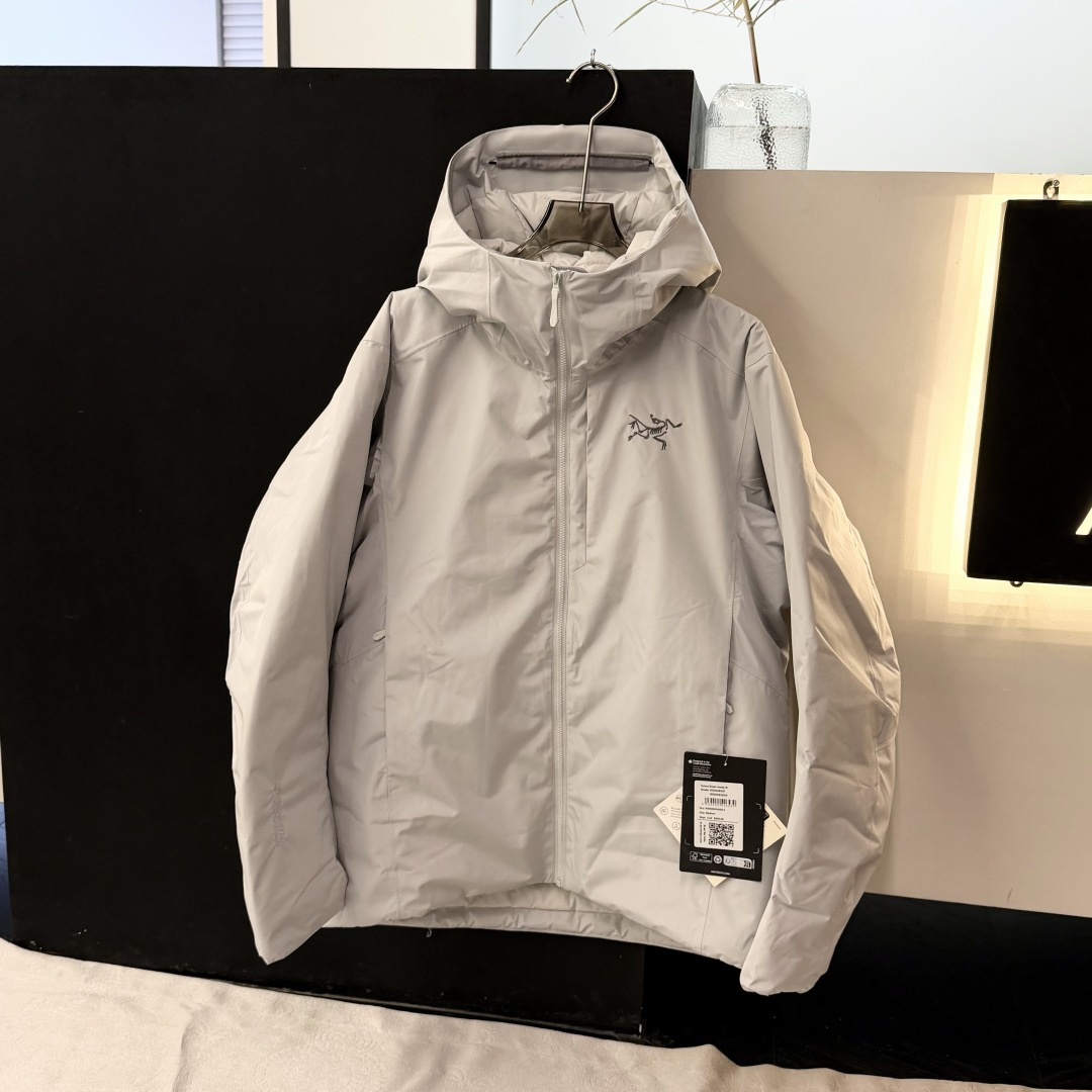 低温 寒风 轻度降雪 Solano羽绒连帽衣锁温保暖 防风防雨 让你享受一整天的户外生活 大身和袖子采用不含PFAS的GORE TEX面料 可以抵御风雨 下背部和腋下采用轻量的弹力软壳 更加通风透气 750蓬松度灰鹅绒守护核心温暖 而软壳嵌料下的PrimaLoft合成棉羽层提升透气性 棉羽风帽更添温暖和防护 始祖鸟arcteryx