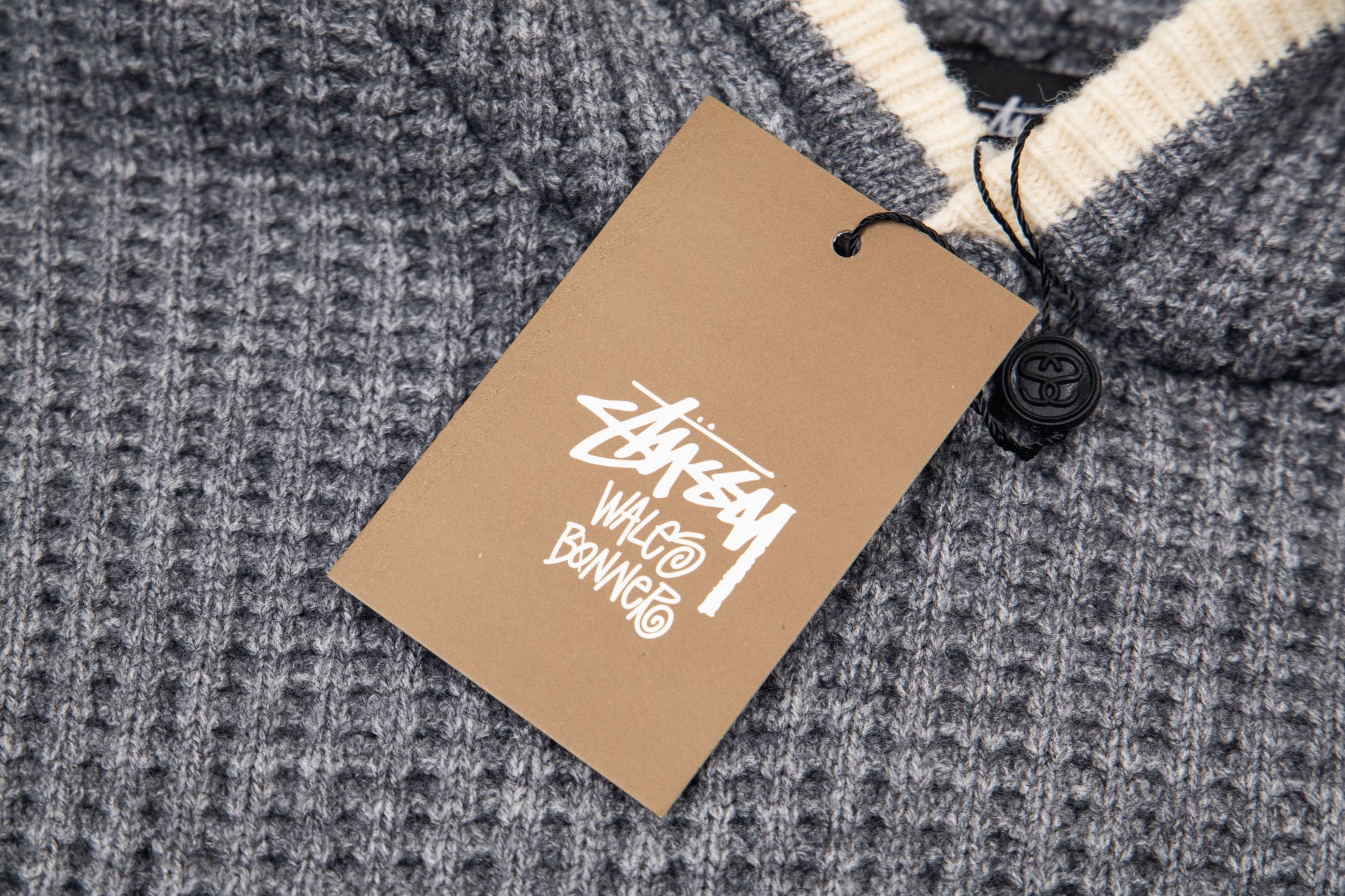 Stussy 斯图西 Stussy Wales Bonner 联名款 FW25 CASHMERE HOODIE logo标志舒适连帽华夫格针织毛衣 男女同款