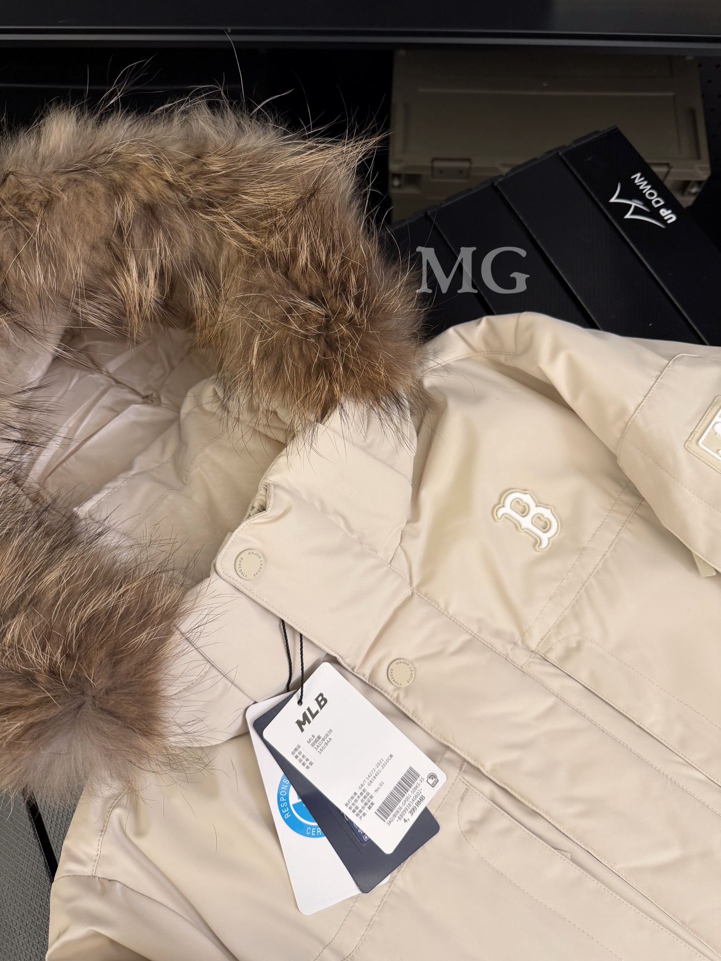今年大火的MLB工装貉子毛领中长款羽绒服