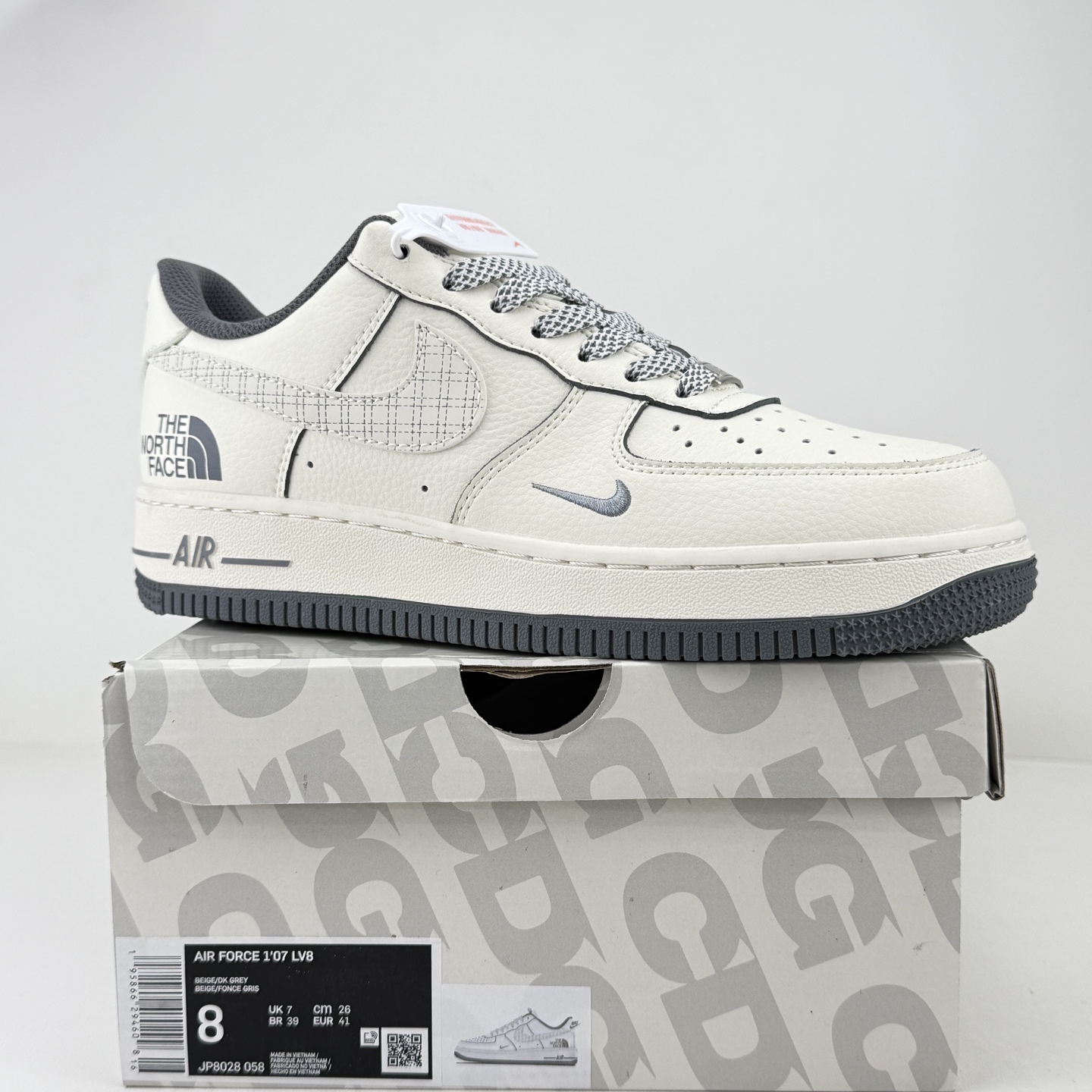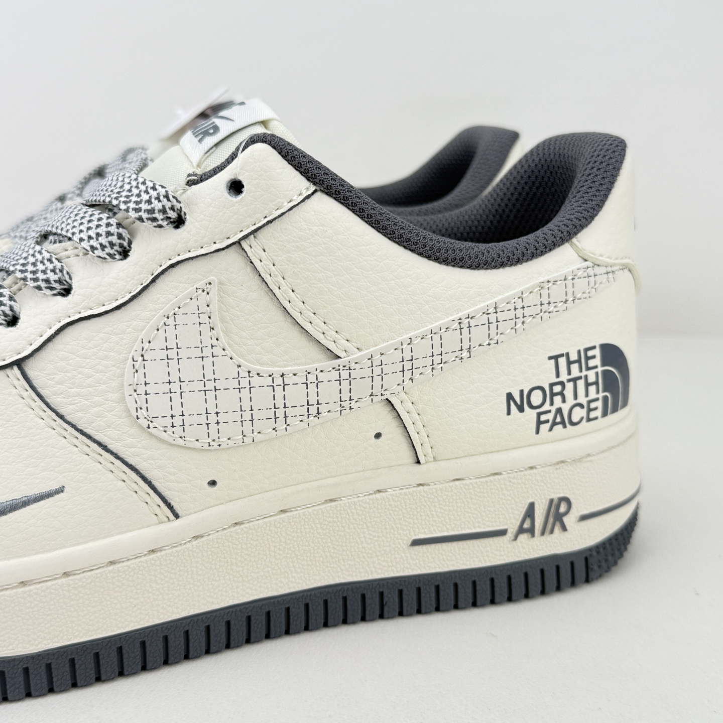 海外限量发售 公司级NIke Air Force 1 07 Low 北面联名 米灰网格 空军一号 低帮 运动鞋 休闲鞋 折边针车 工艺难度大 原楦头原纸板 原装鞋盒 定制五金配件 内置全掌气垫 原厂鞋底