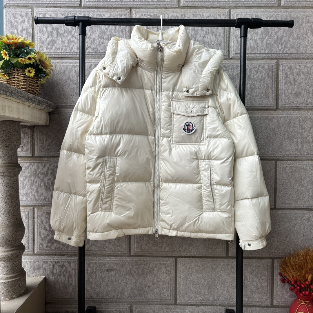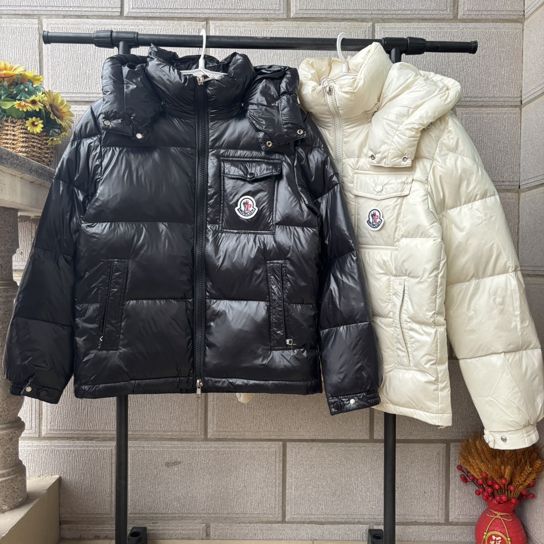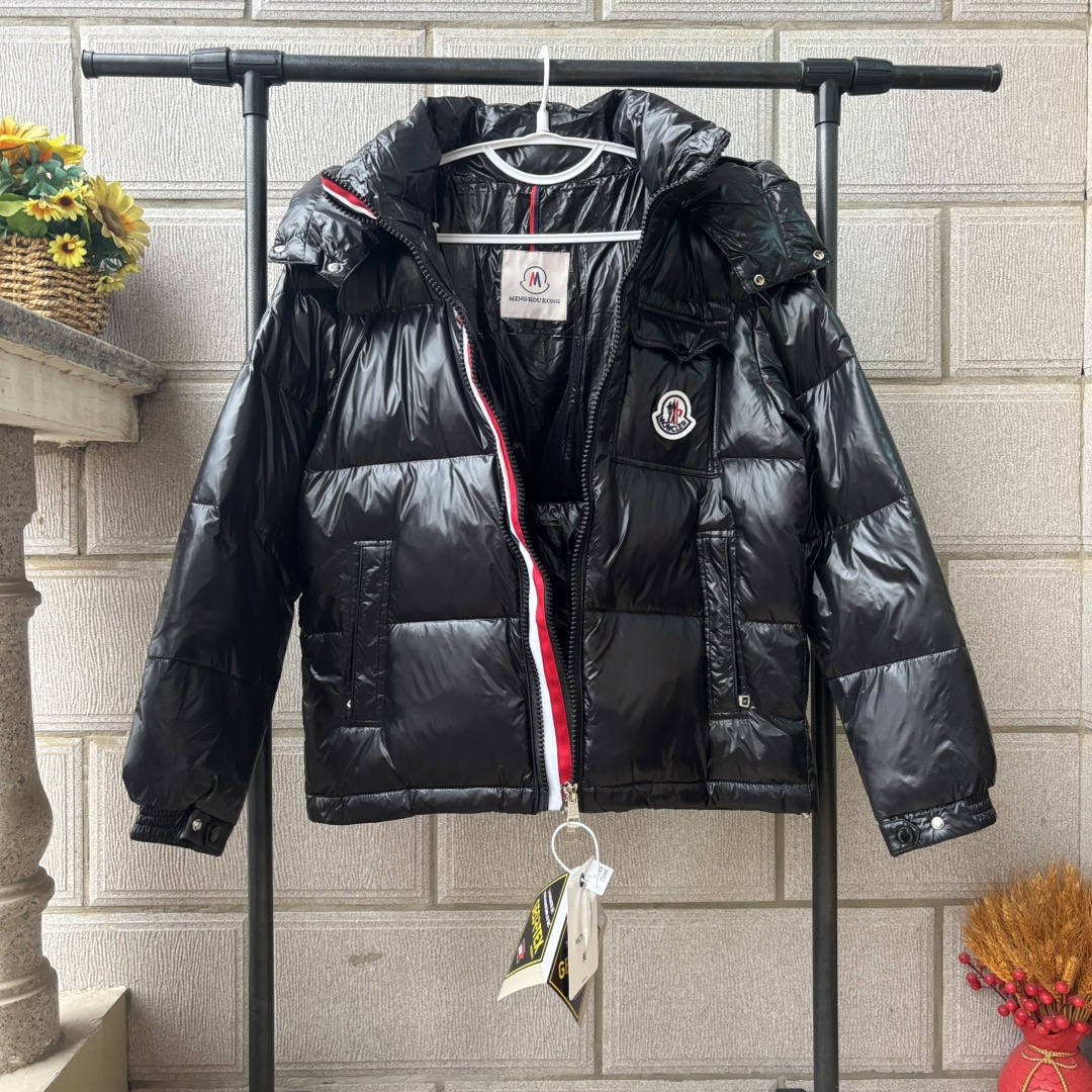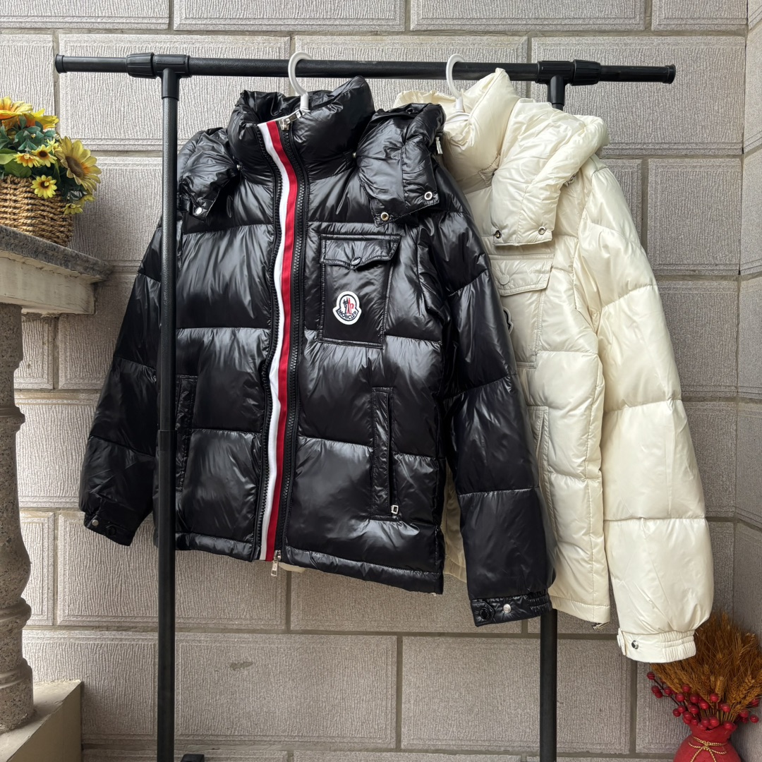 𝐌𝐎𝐍𝐂𝐋𝐄𝐑 蒙口三色织带彩虹条连帽羽绒服 男女同款短款面包服 帽子可拆卸