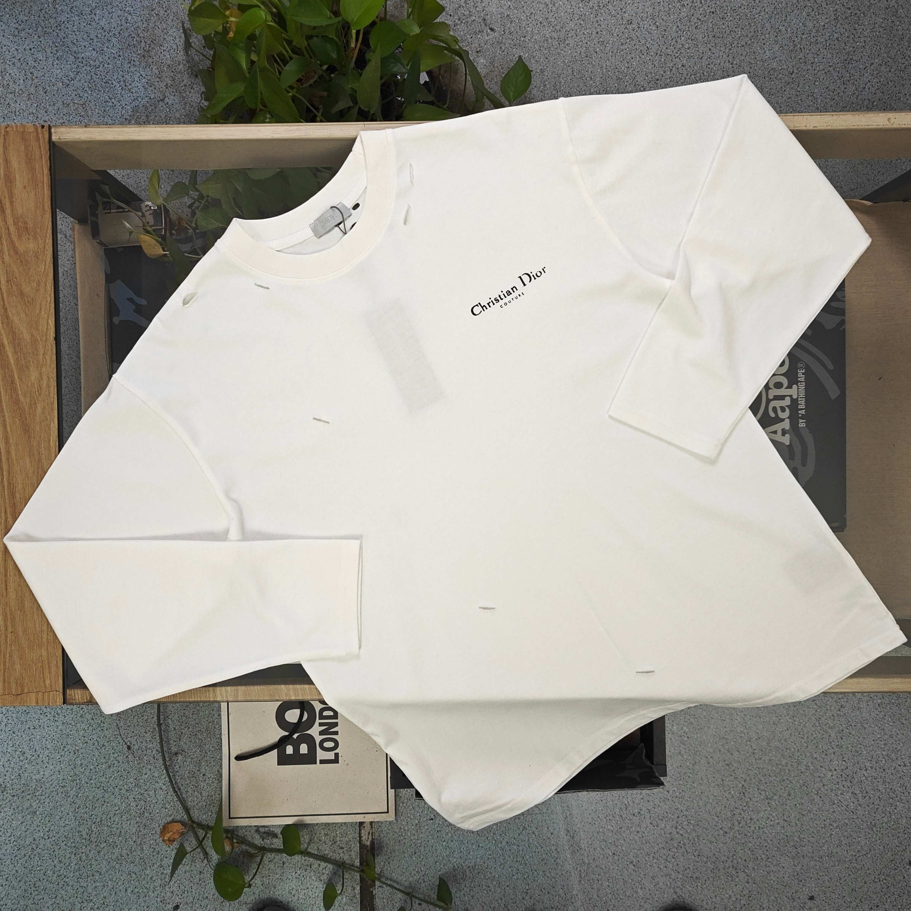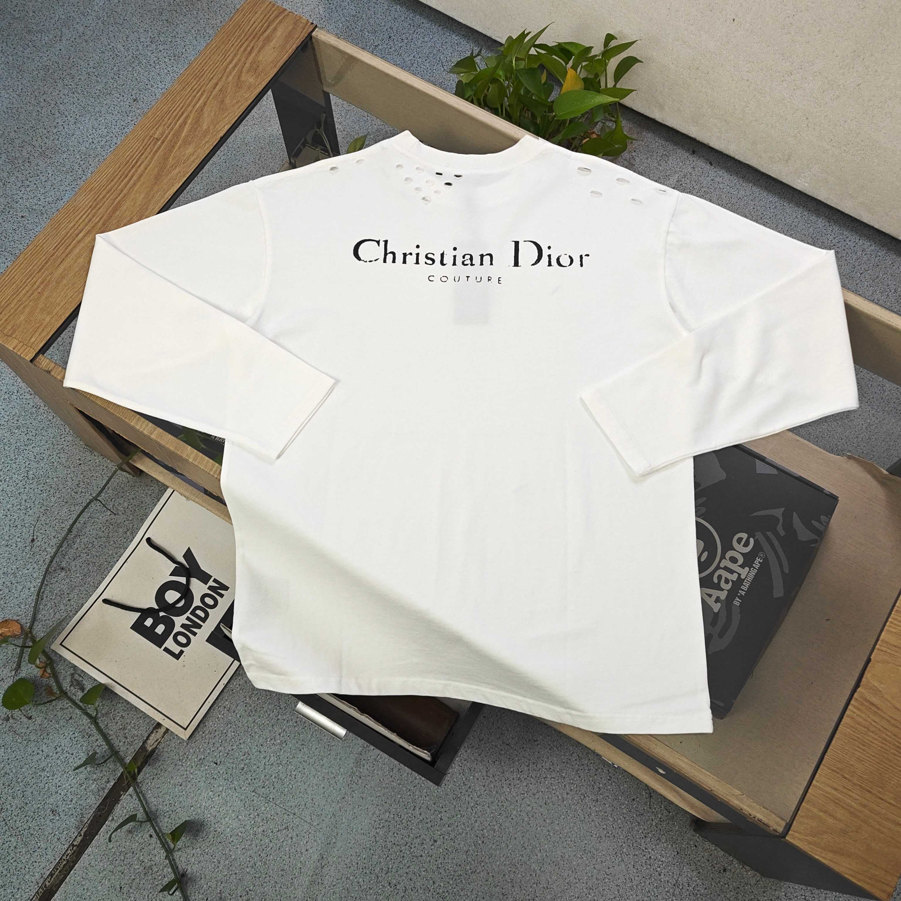 2025新款Dior迪奥磨破破洞经典字母logo印花休闲情侣打底长袖T恤上衣 小红书爆款 面料高版本高品质 网红明星同款 采用客供定制超柔纯棉面料 面料柔软舒适更垂顺 品牌字母Logo标志彰显品牌特征 简单款式更易搭配 时尚潮流 水洗麦 时尚休闲百搭款 三标齐全 非市场普通版本 随意对比 品质绝对保证 男女同款