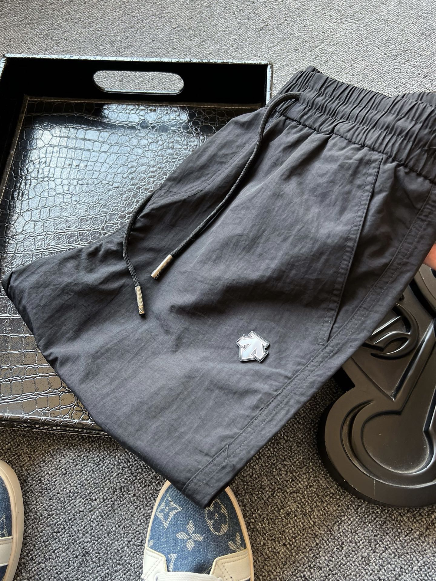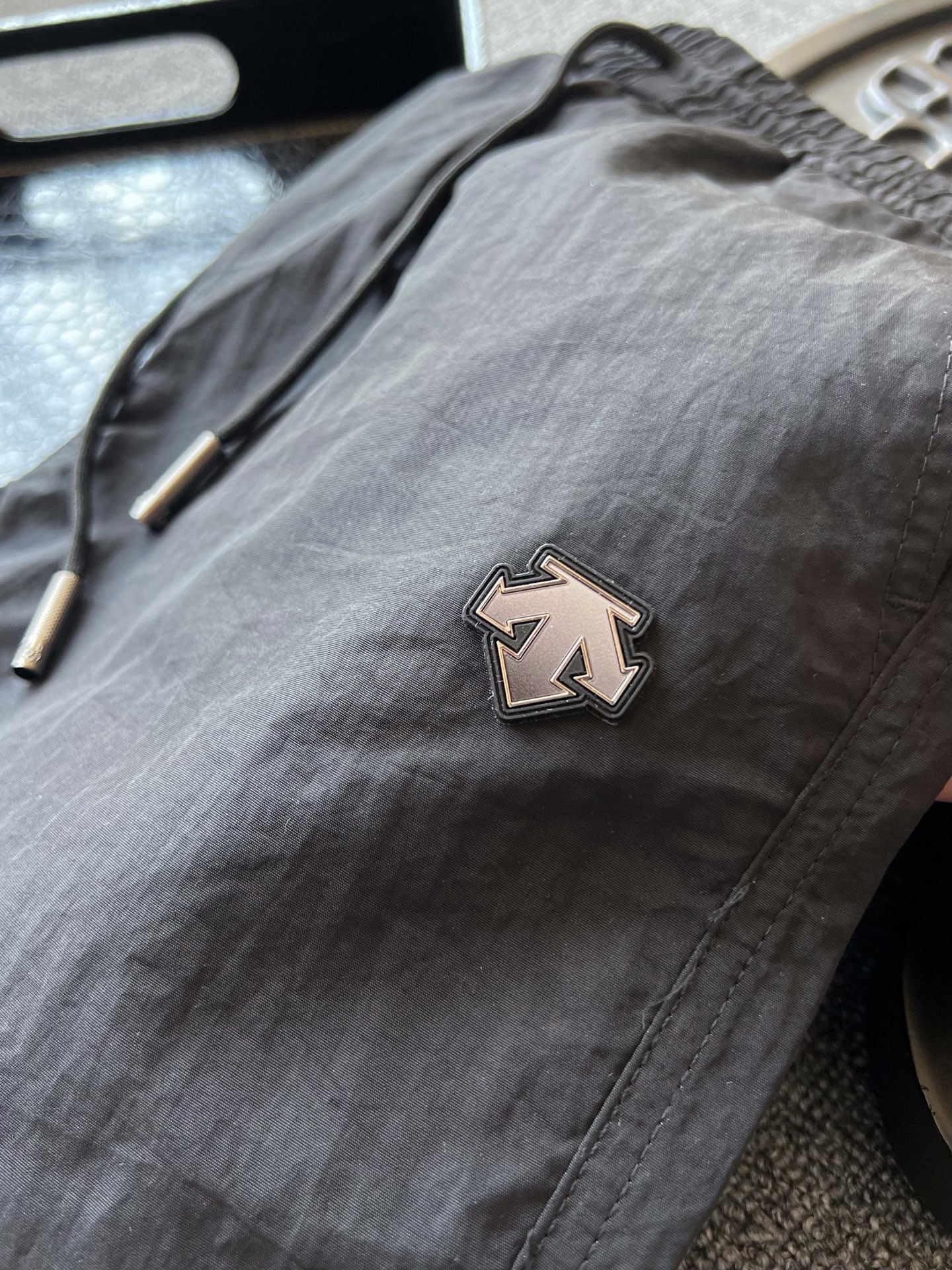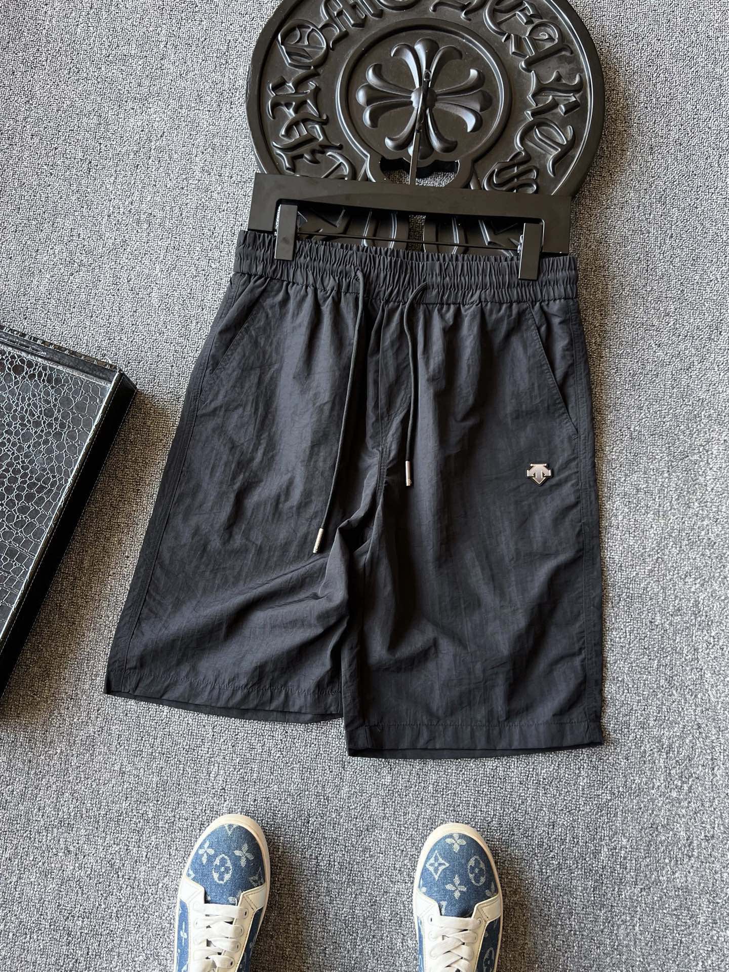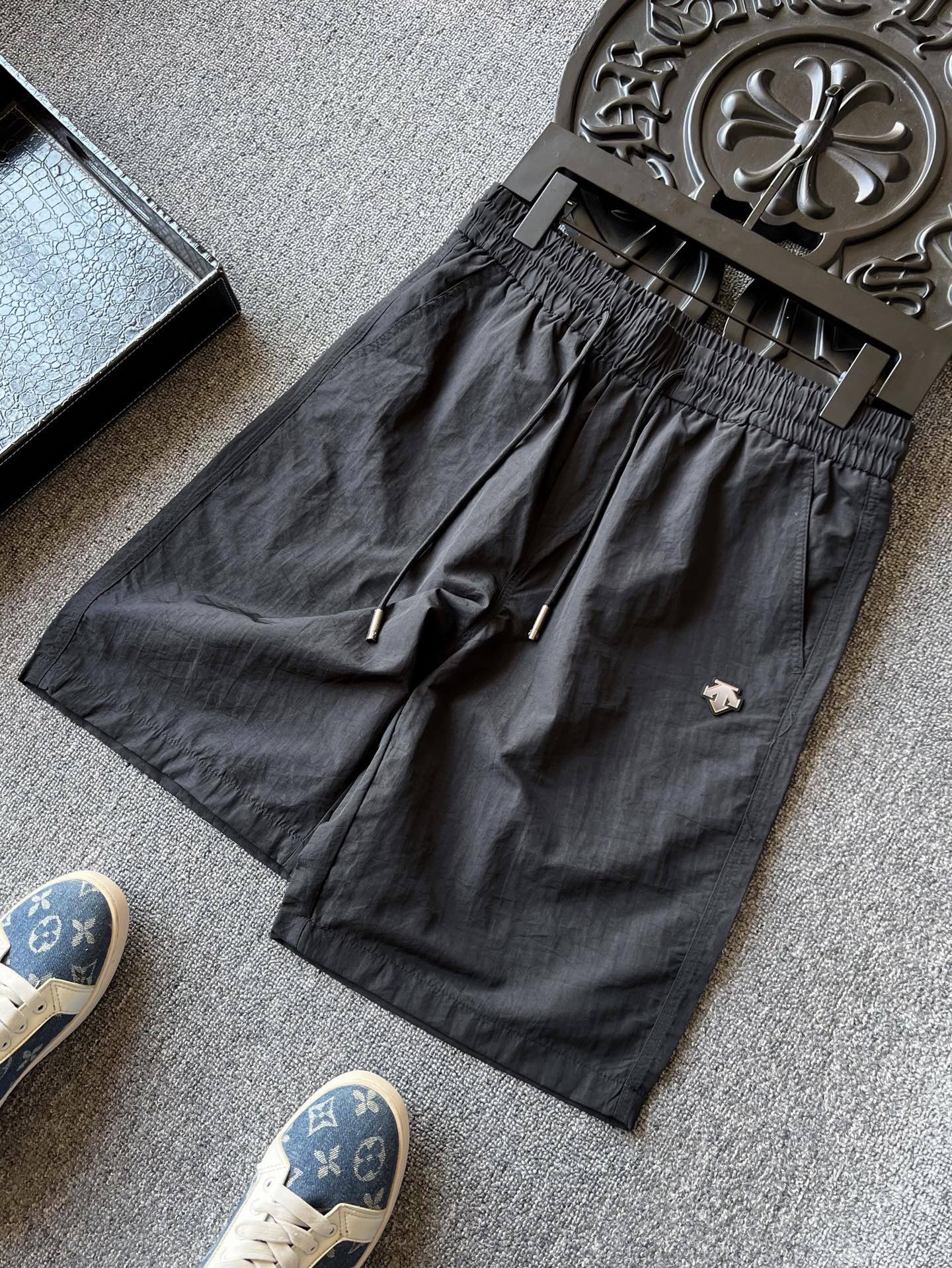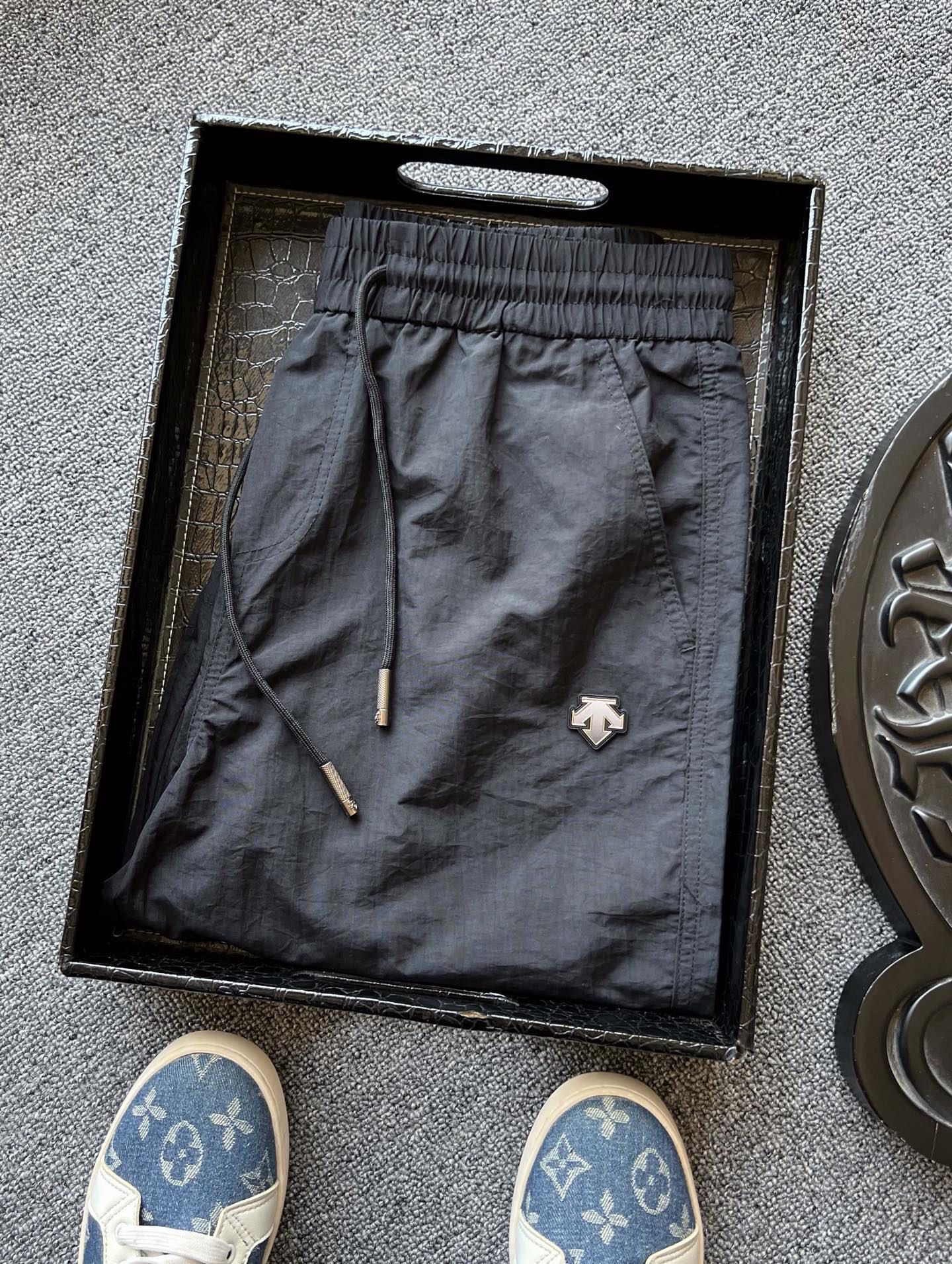 细节细节再细节 DESCENTE家商场新品短裤 裤前亚格力钨钢金属迪桑特T标 轮廓镶嵌硅胶环绕 十分精致 定制同色系变色抽绳设计 简约时尚 内里腰口包边处理精湛做工