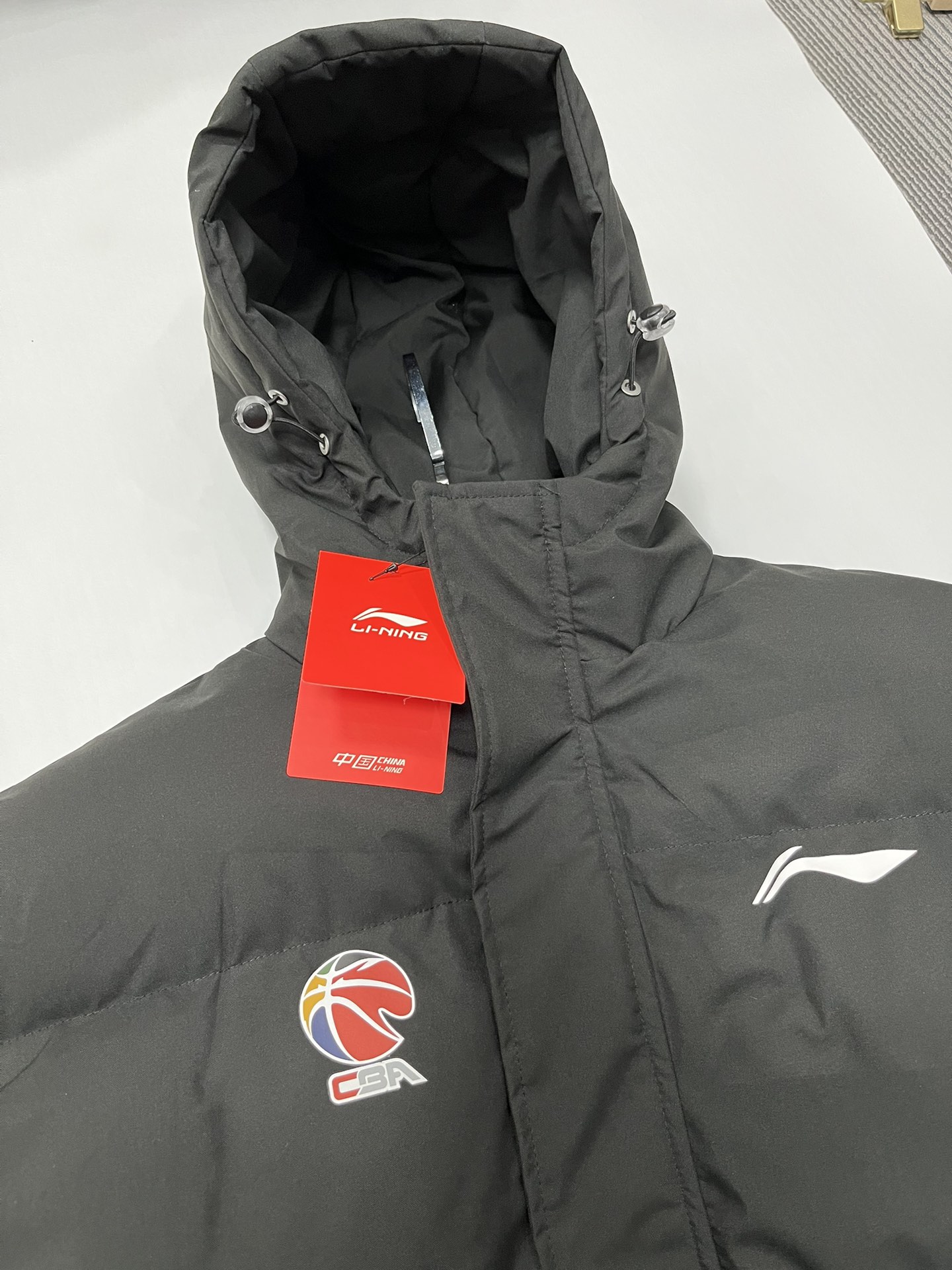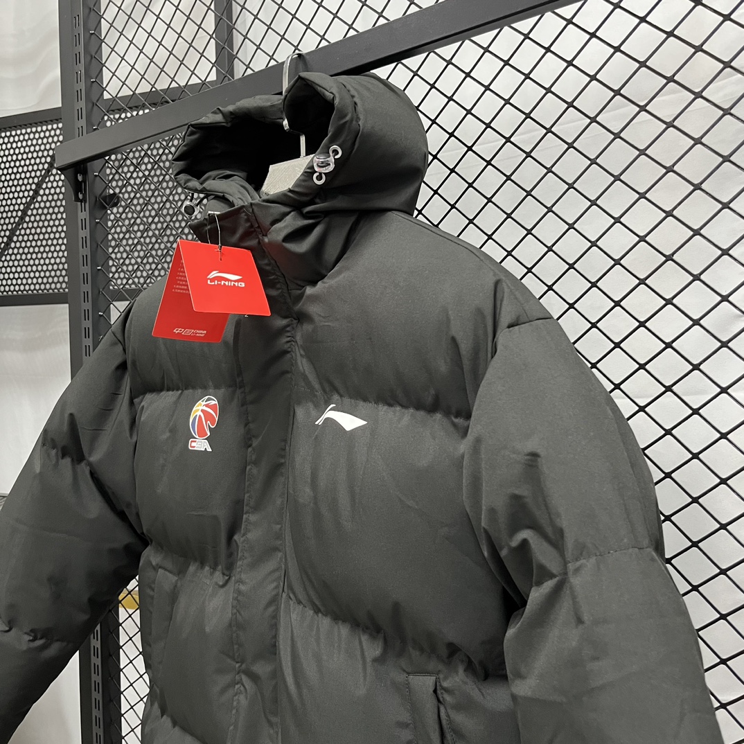 得物品质 李宁 CBA系列专业篮球系列 CBA球星同款 羽绒棉服 短款运动休闲拉链连帽 保暖防风 内填充羽绒棉 黑色 白色 尺码 S 2XL