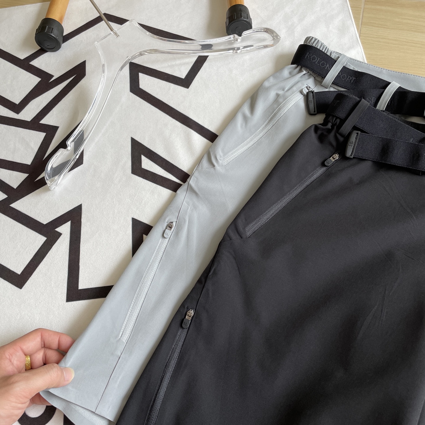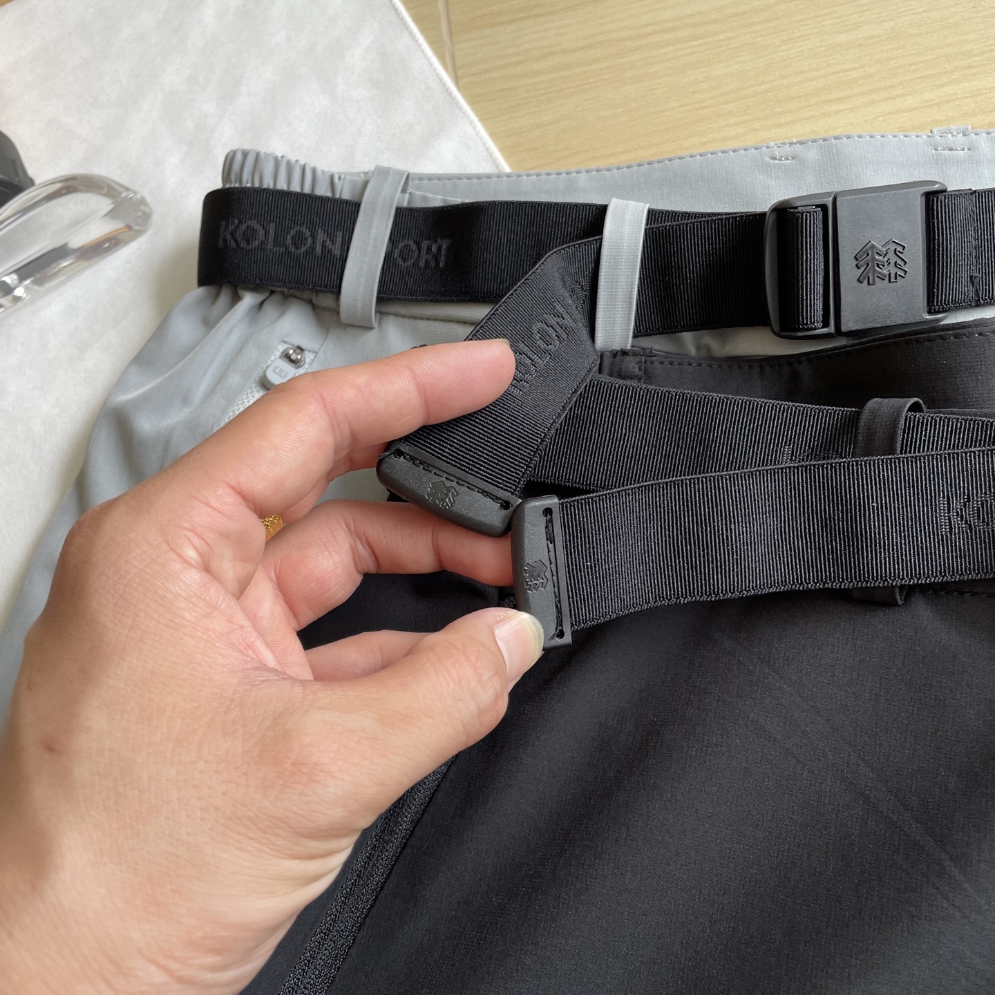 亮点二 磁吸腰头 无痕工艺 细节尽显专业侧松紧腰头搭配可调节磁吸扣腰带 实现 双重稳固 松紧带自适应腰围变化 磁吸扣单手一拉即锁紧 贴合不勒腹 腰部提花字母LOGO与无痕压胶热熔封边工艺相呼应 规避缝线摩擦 提升耐用性与简约美感