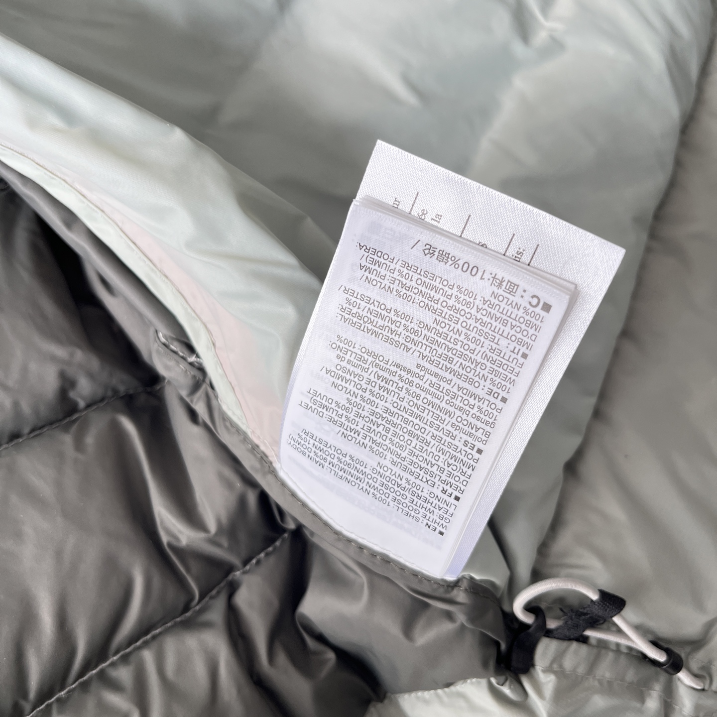 整件衣服采用超轻量的面料和填充 可以轻松卷缩成自身的一个口袋中 形成一个非常小的收纳包 衣服内自带收纳袋 在内侧胸口口袋内 收纳后仅中号啤酒罐大小