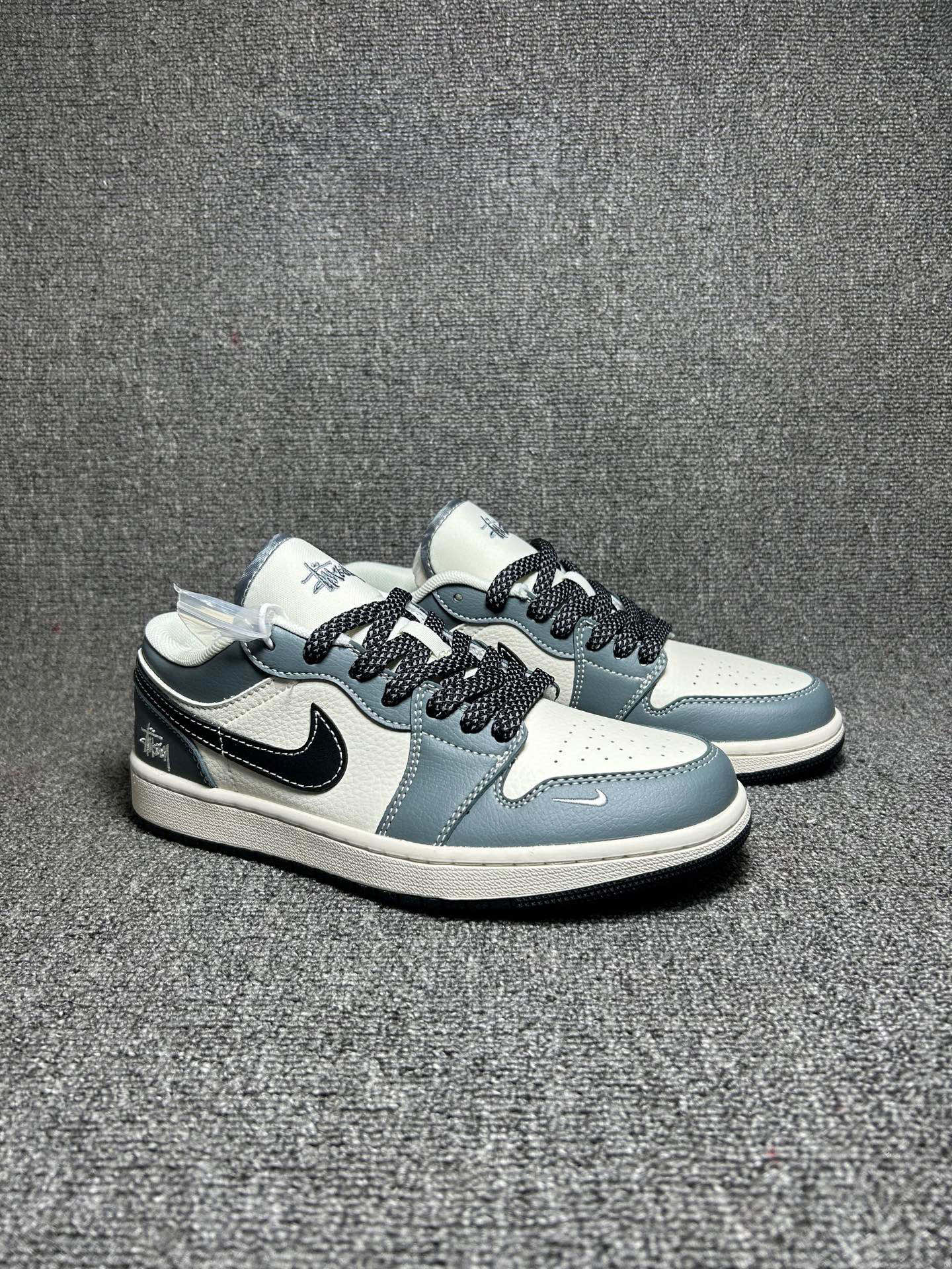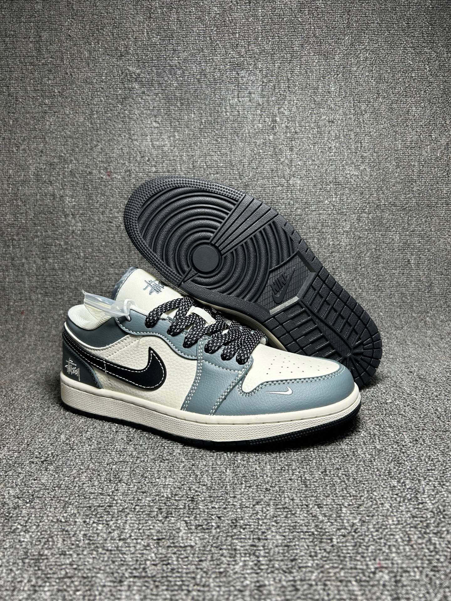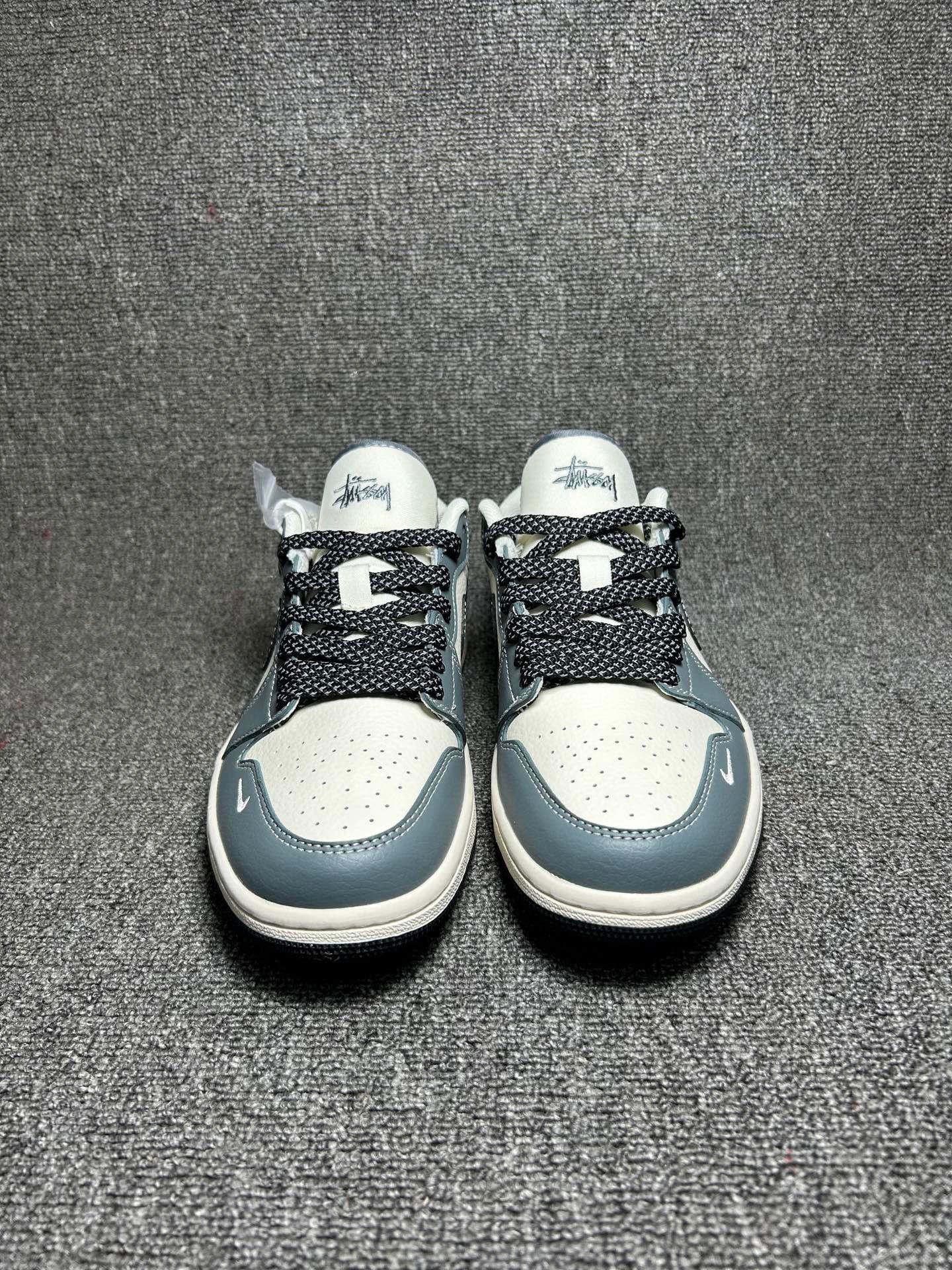 海外爆款限量发售 Nike Jordan Air Jordan 1 斯图西联名 蓝灰色 高端定制 低帮 复古 减震 防滑 耐磨 篮球鞋 定制鞋盒 大厂纯原品质出货 超高清洁度 皮料切割干净无任何毛边 细节完美