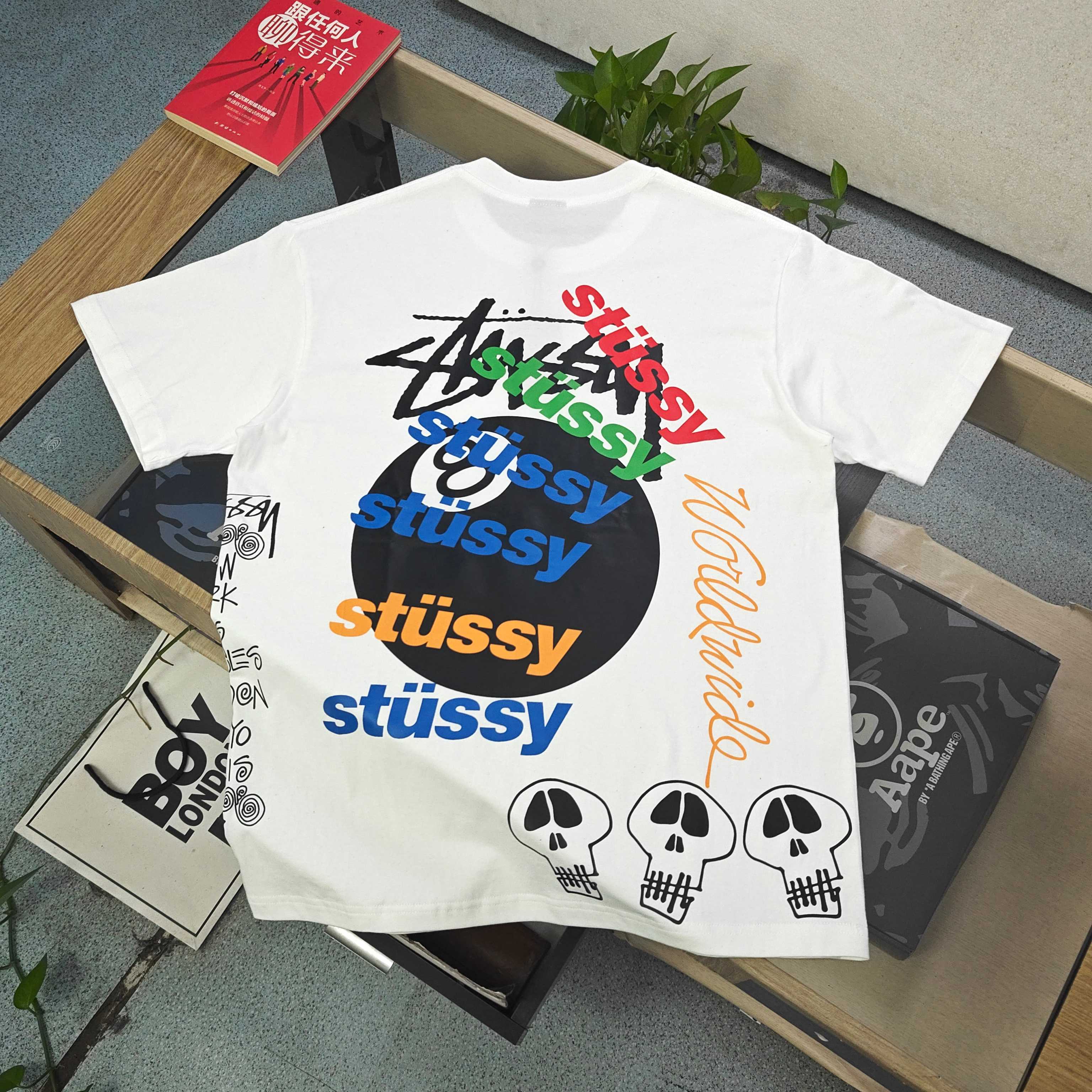 2025新款Stussy斯图西8号球图案logo字母印花休闲情侣宽松短袖T恤 经典永远不会过时 人手必备款 260g纯棉精梳棉不起球不起毛 圆通侧面无缝 上手质感绝对可对比 环保进口印花浆料 质量保证 原厂面料 定制定染 包浆印刷环保不开裂 欢迎对比质量 男女同款