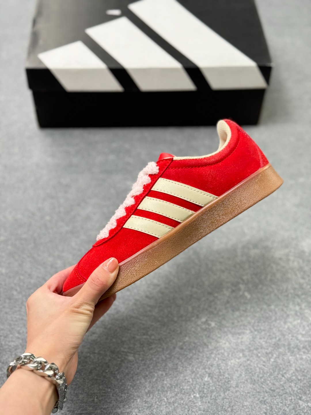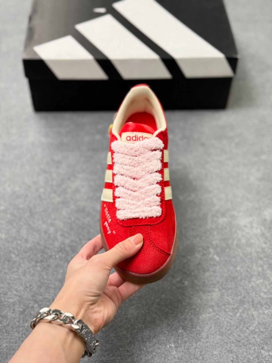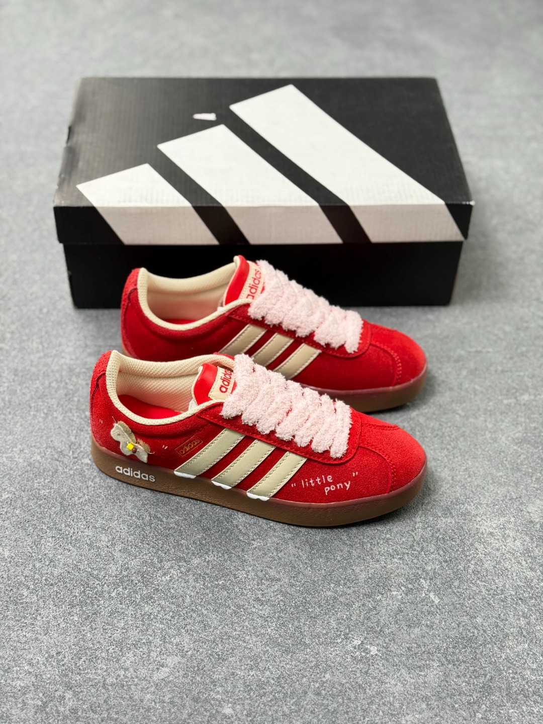 Adidas originals Samba 这双阿迪 KK3774 直接把 甜妹 焊在鞋上 正红色麂皮 奶白三条杠 毛绒鞋带软 fufu 像抱了团棉花 还有小蝴蝶装饰 little pony 刺绣 甜得又嗲又不腻 尺码 35 45半 x76