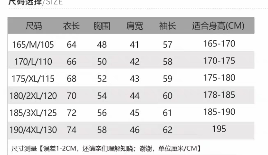 尺码 M 4XL