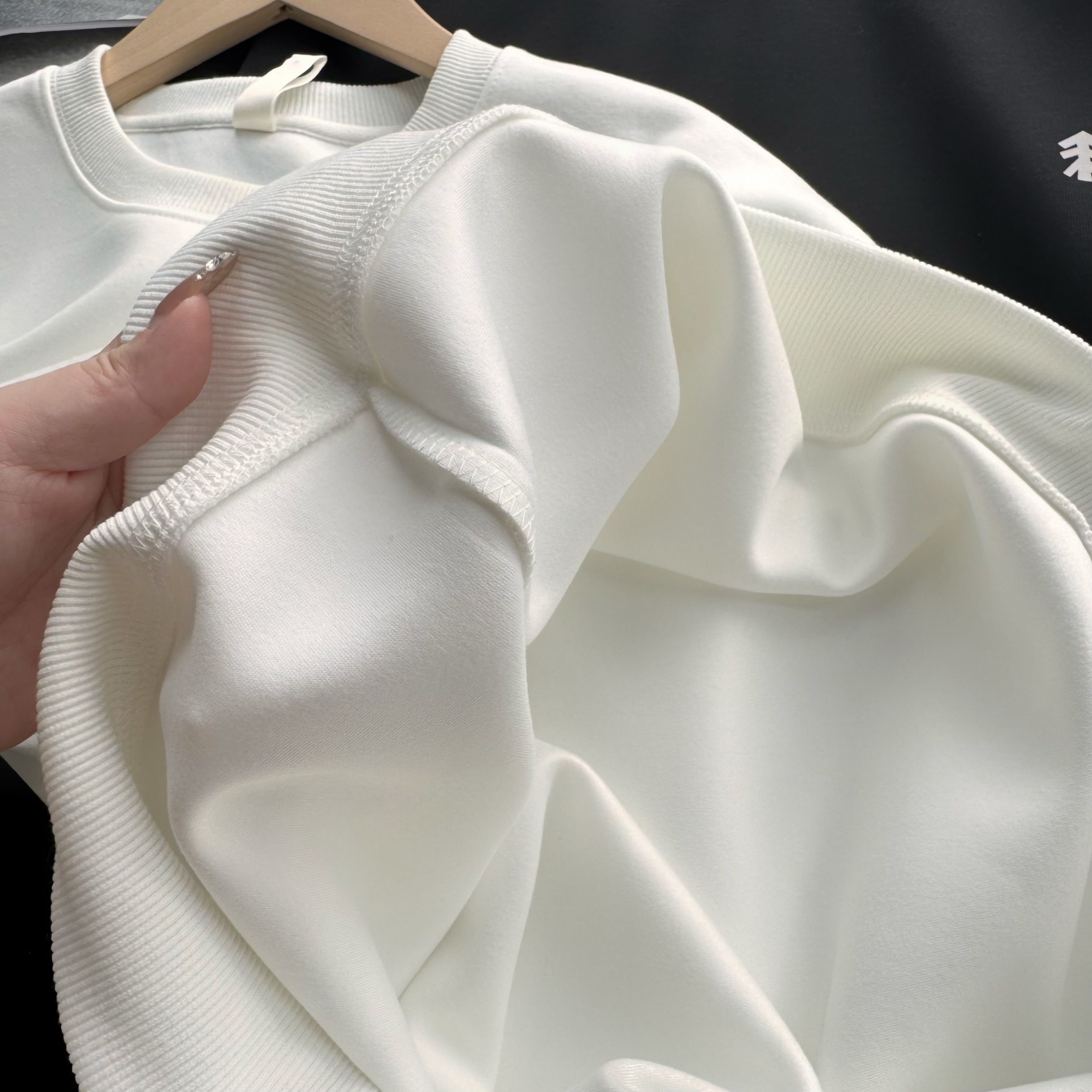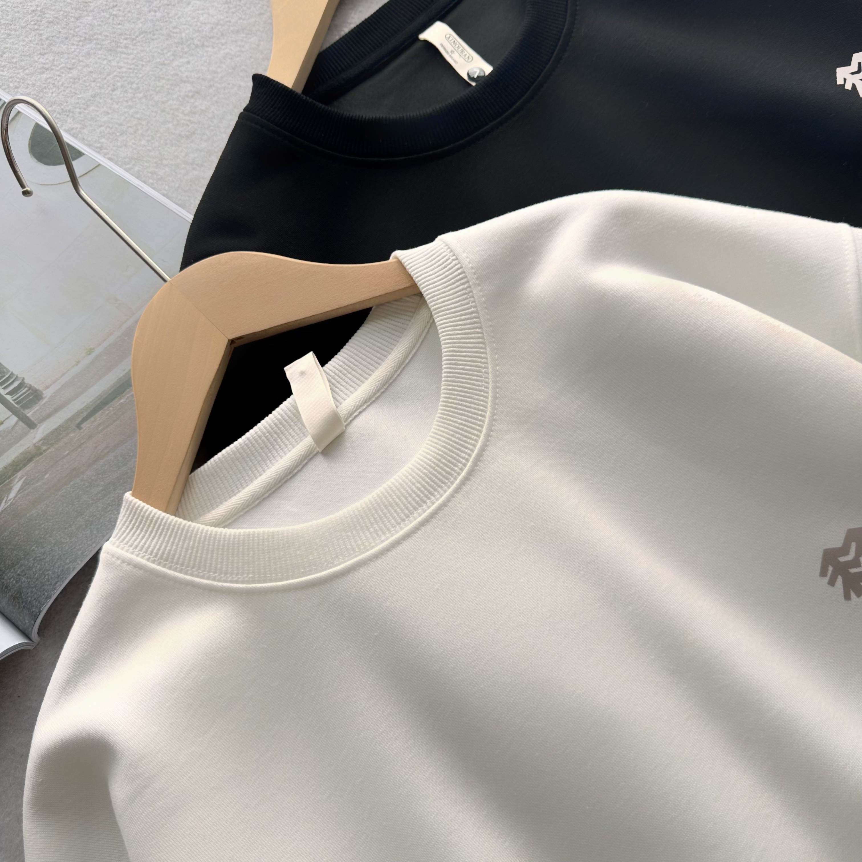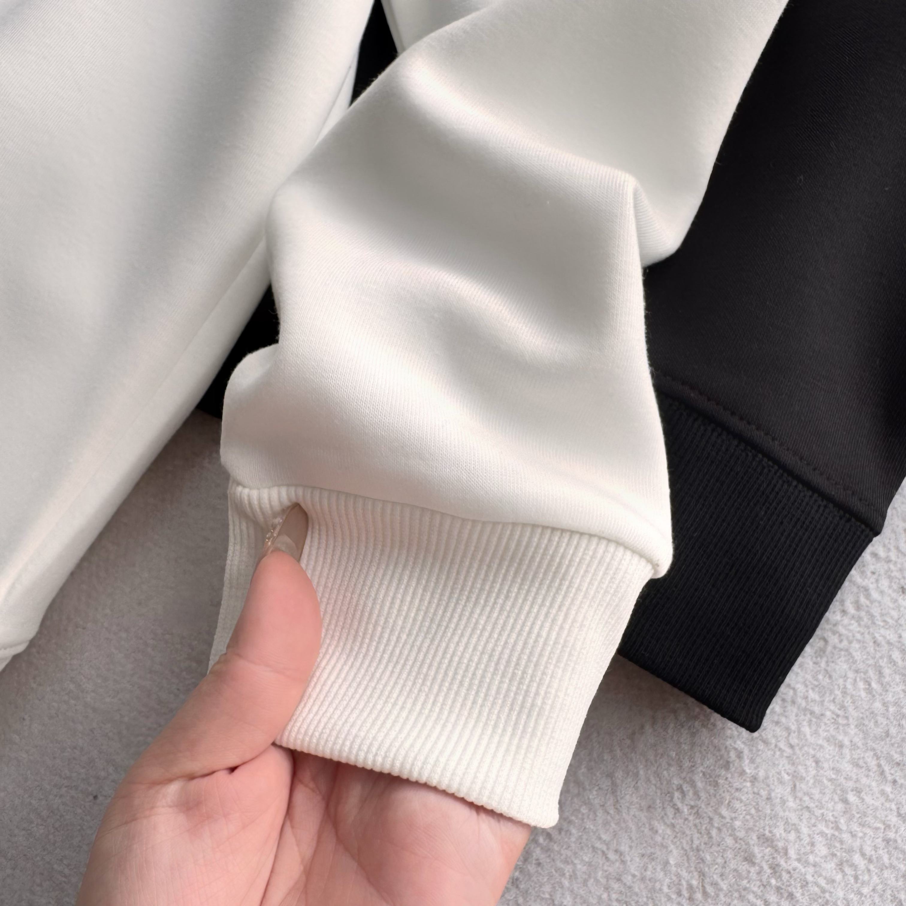 官网同步发售 甄选320g四面弹氧气面料 打造三维立体空间 面料兼具厚度质感与弹性 吸湿透气 穿着贴合不紧绷 舒适有型 领口 袖口 下摆罗纹均采用高密度拼接技术 方便穿脱 舒适升级 宽松版型 基础上配合高端肩部剪裁 勾勒硬朗线条 不失质感格调 领口固形压条 有效保持颈部线条流畅 下摆双排车缝线做工精细 细节精致 提升穿搭质感
