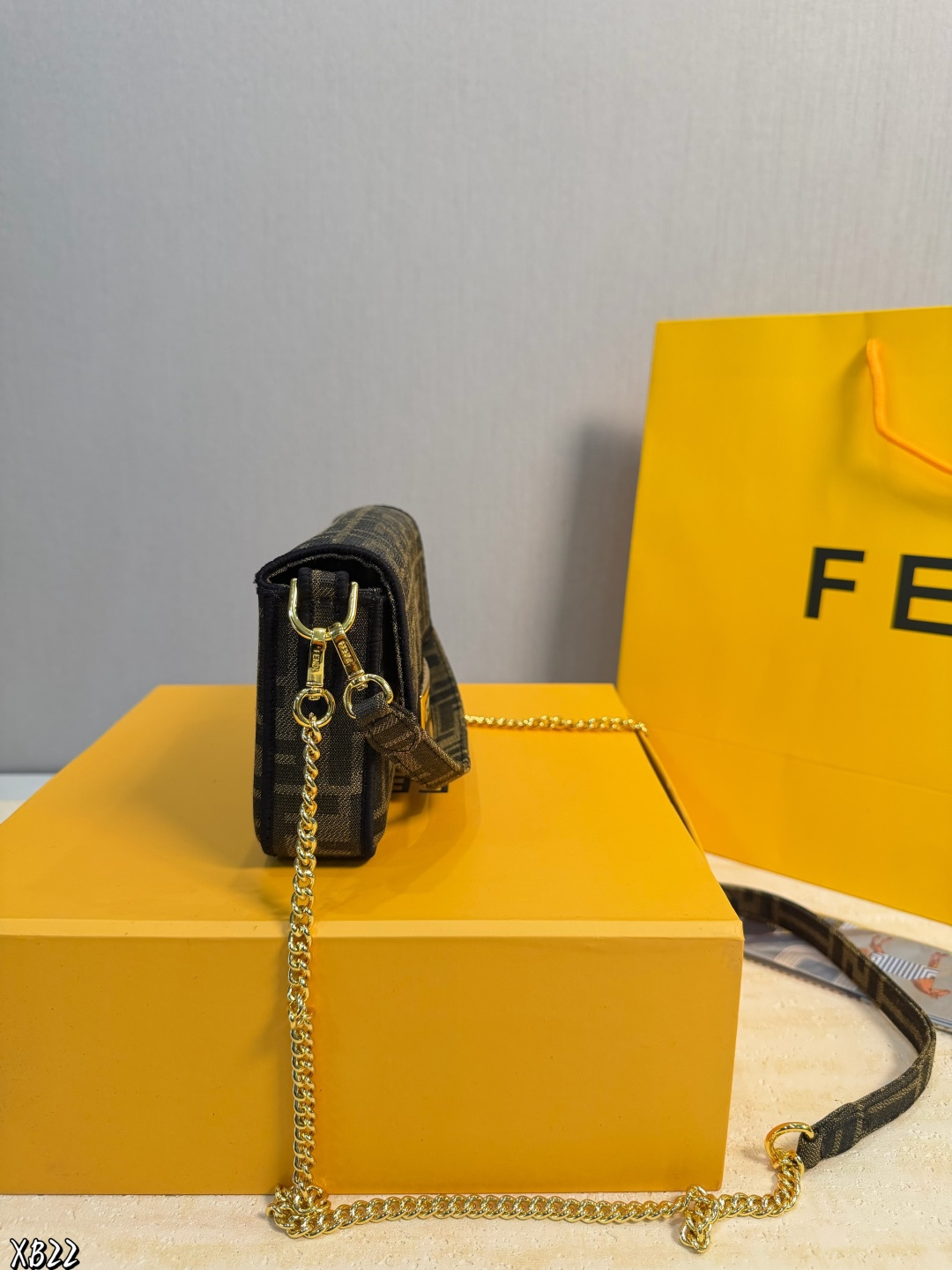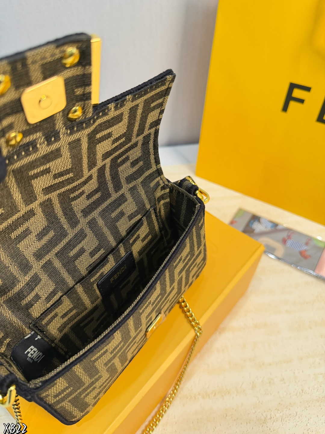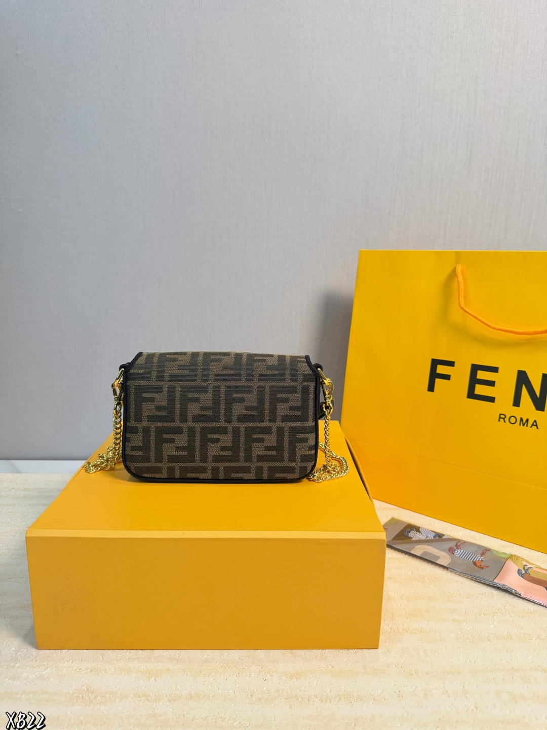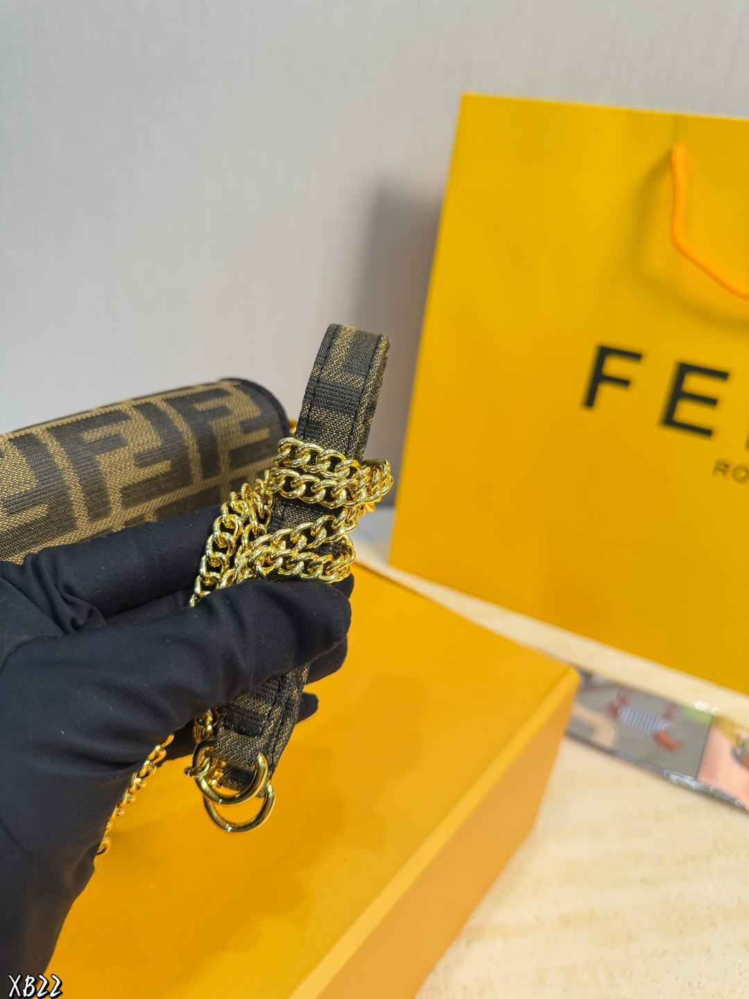 礼盒包装 米兰时装周街拍中 潮人们背的最多的包包大概就是Fendi芬迪的这款法棍包 Baguette 了 从黑色再到粉色 各种颜色应有尽有 单肩 斜跨都不是问题 有种慵慵懒懒的街头风 戚薇 Rosie等明星日常出街也会背 尺寸 18 10cm