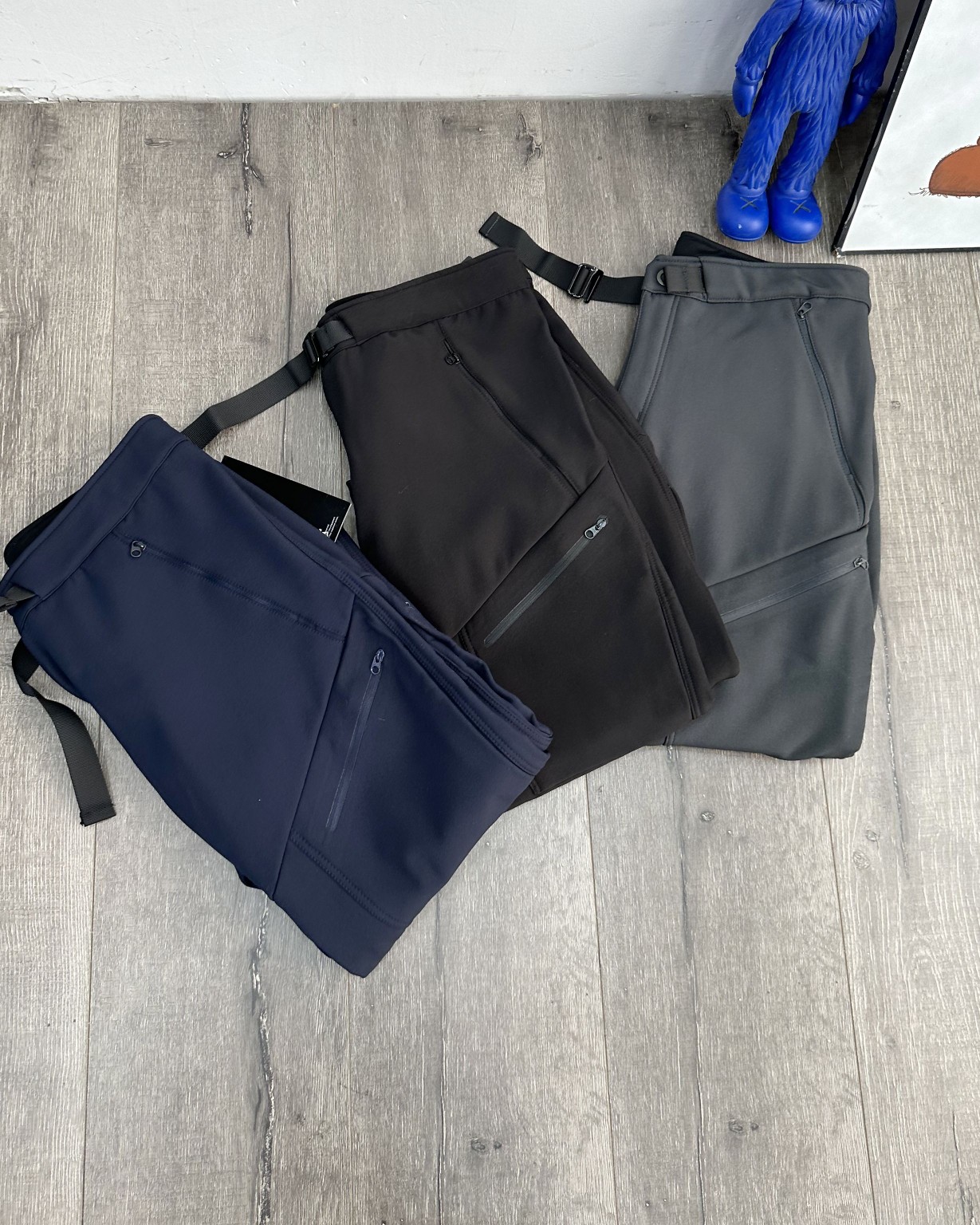 腰带扣为金属扣腰带精美绝伦 裁剪采用立体三维裁剪使每个部位都更加的合体舒适 斜插兜新加拉链 膝盖部分做了立体裁剪处理 更加适合运动 鸟标 厚实大气