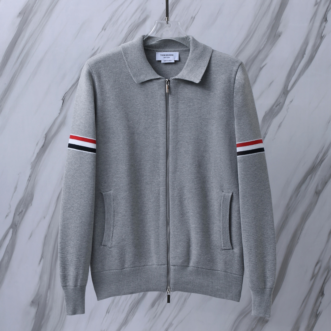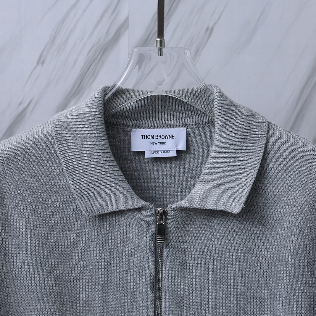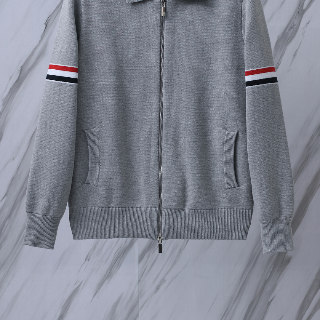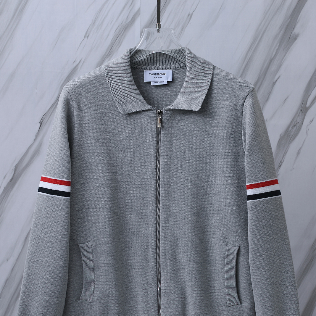 货号 T B M43 TB翻领双袖标拉链夹克针织毛衣