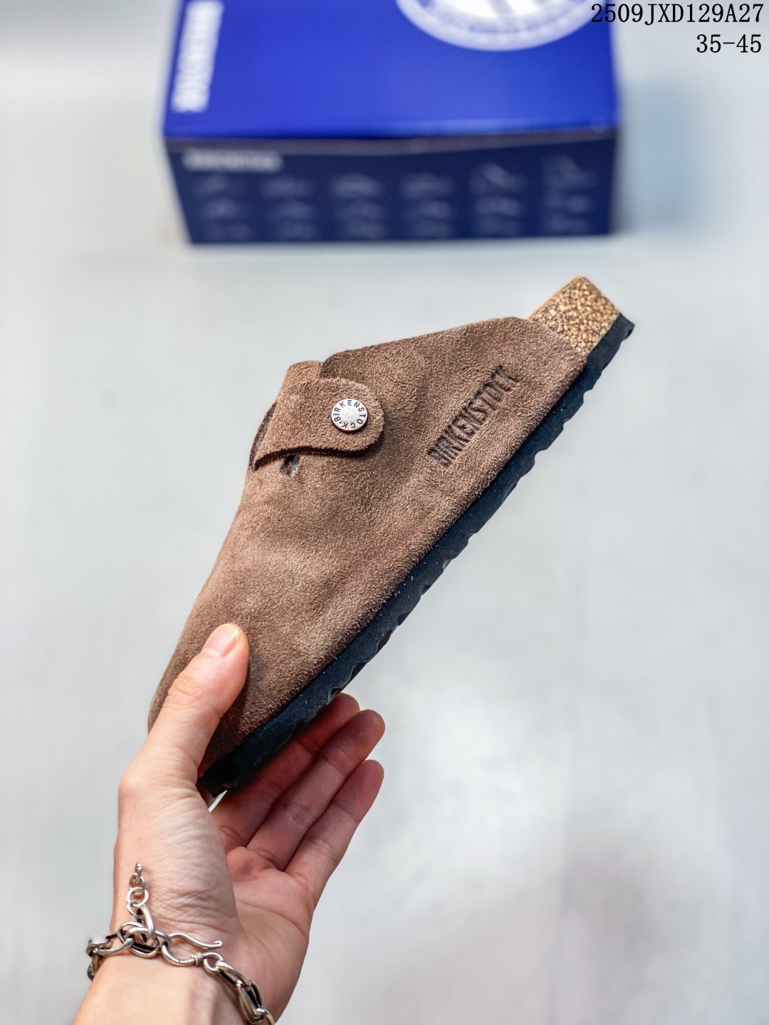 德国百年知名鞋履品牌 博肯Birkenstock 秋冬新款 勃肯半拖凉鞋系列加棉 加绒包头拖鞋 广东原产 采用质地柔软牛皮革 中底搭载缓震软木橡胶 外置EVA轻量片装外底