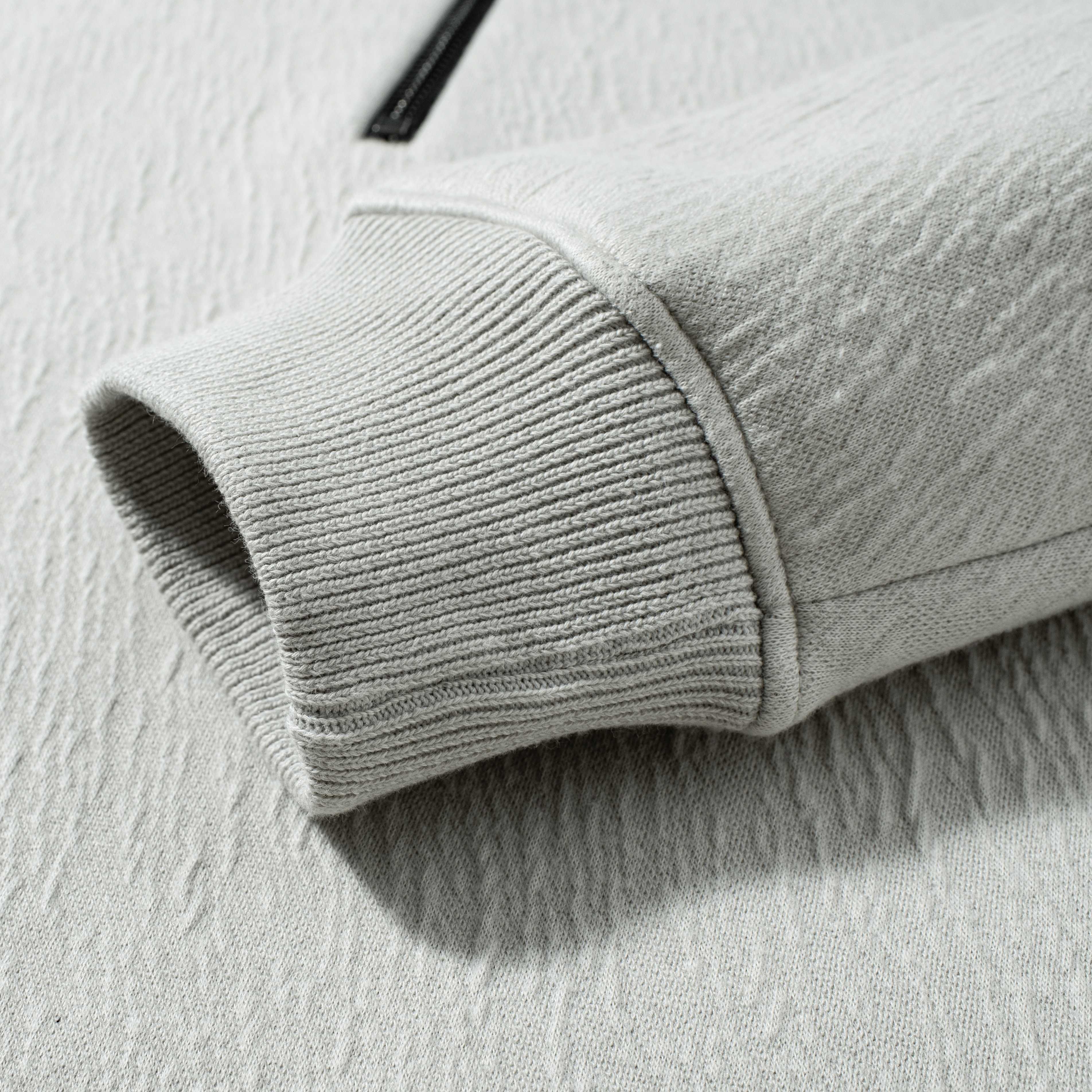 原单品质 秋冬必入 立领半拉链设计 甄选380克高品质加绒面料 防风保暖 质地细腻厚实 手感挺括 富有光泽肌理感 透气性良好 穿着柔软舒适