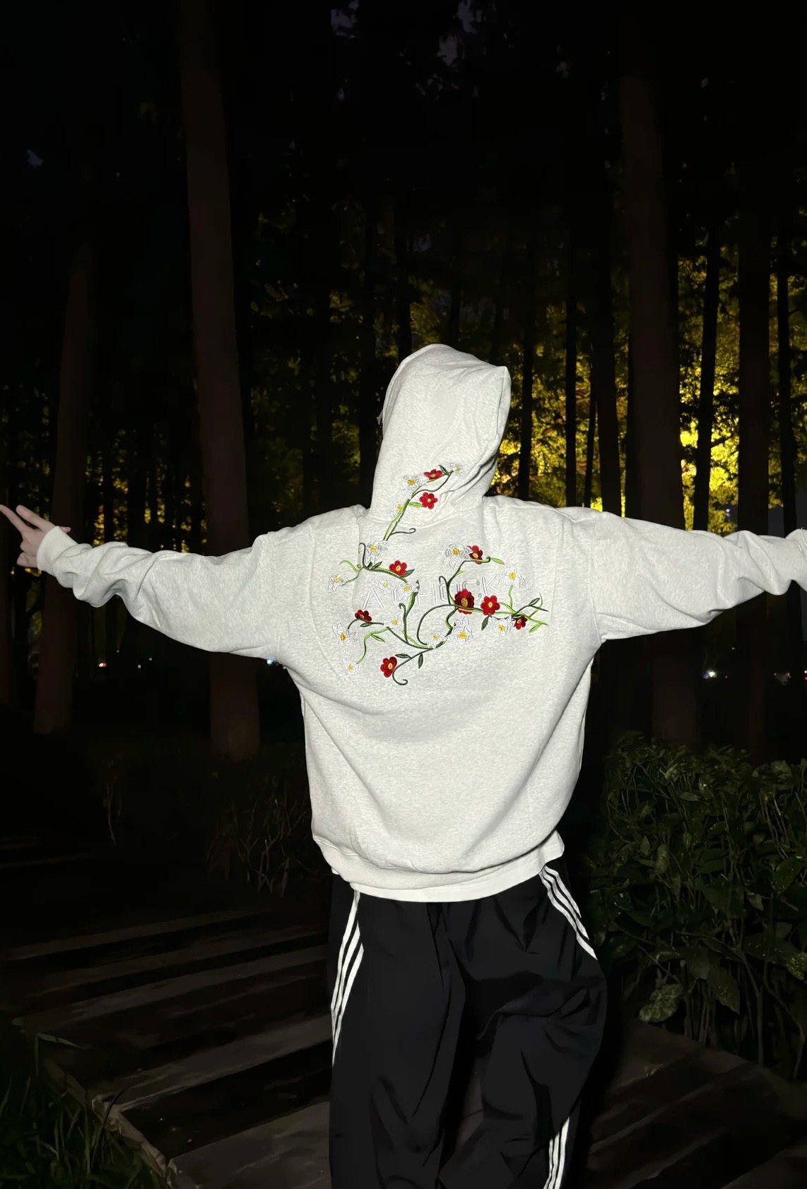 100129823 - 耐克Nike潮牌重磅花卉刺绣帽衫外套卫衣加厚美式连帽卫衣 369371