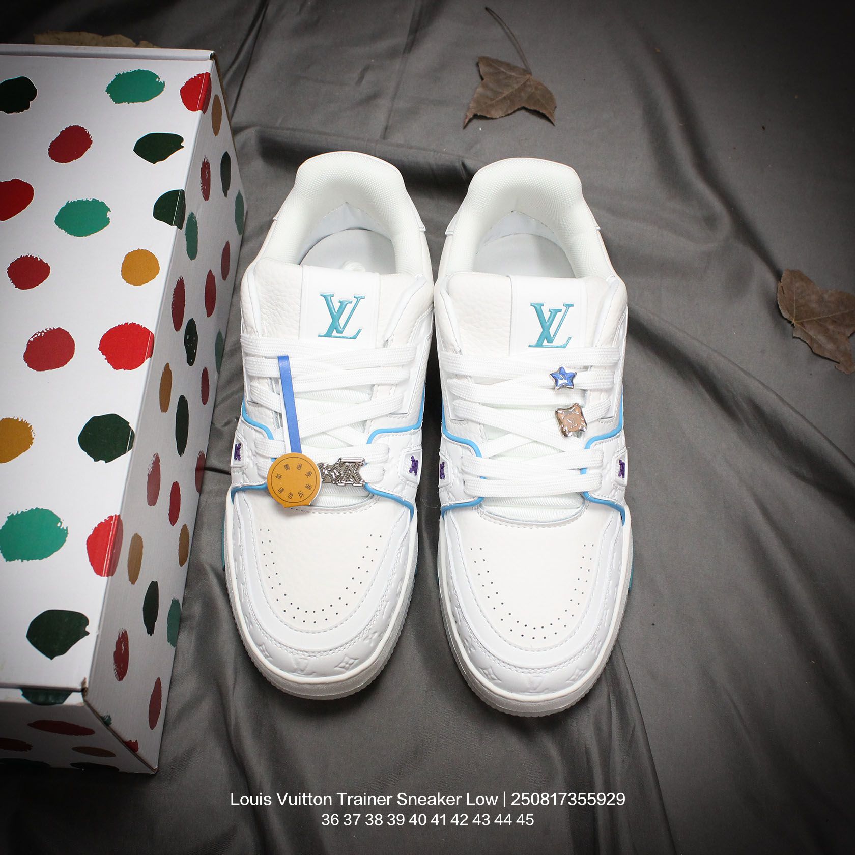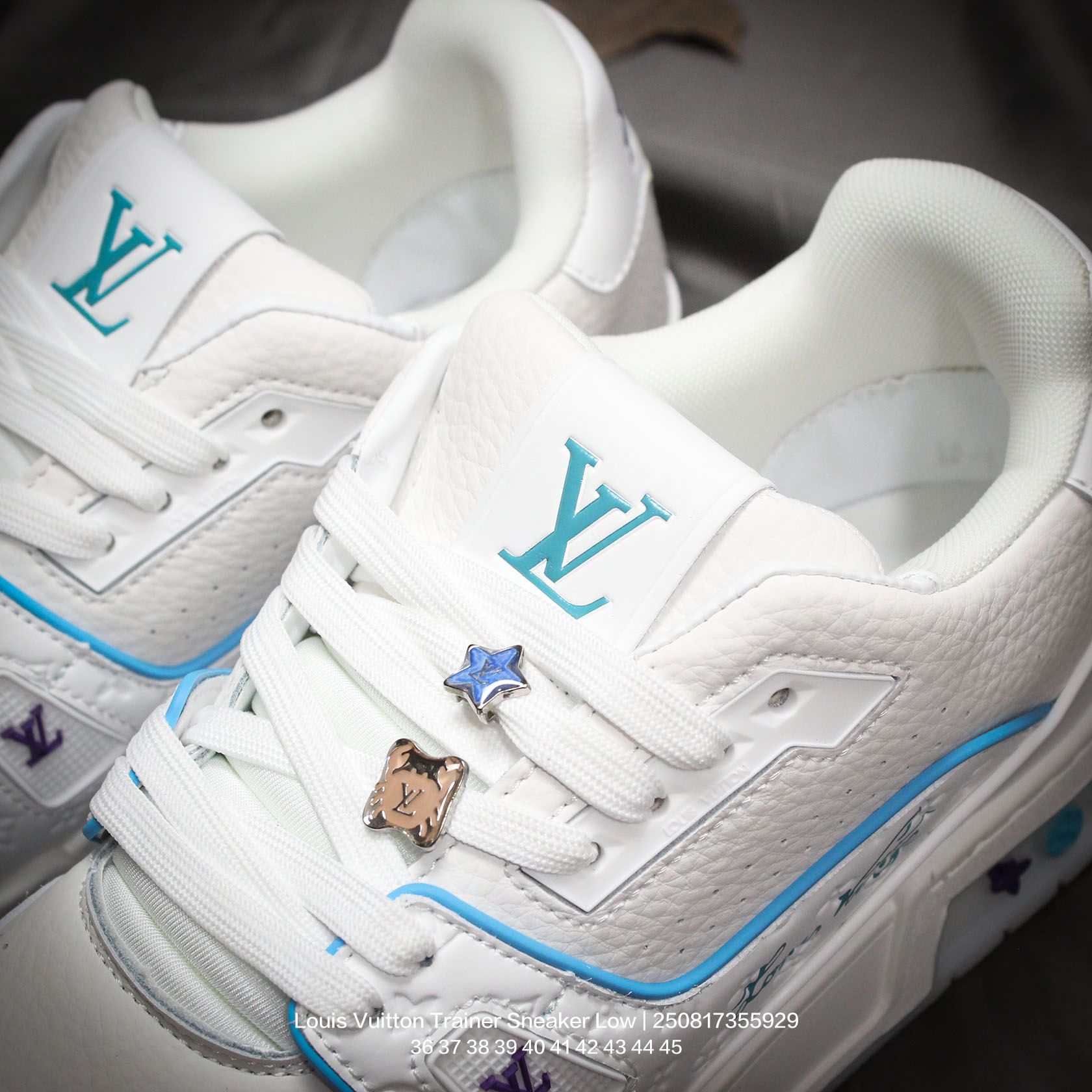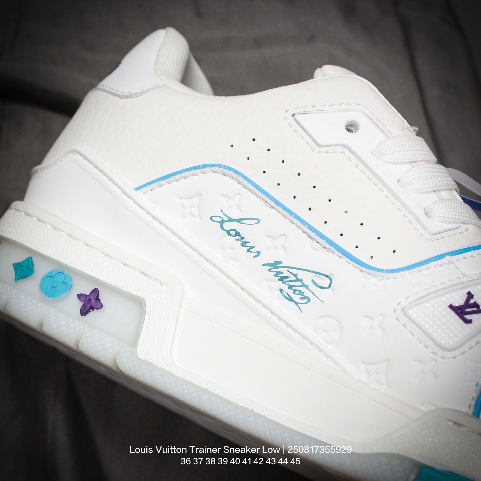 Louis Vuitton 路易威登 男女鞋配置厚实抽屉礼品鞋盒 采用荔枝纹纤维革组合粒面牛剖革鞋面材质 鞋垫嵌入软脚感EVA物料 外置TPR光泽隔色鞋底法国巴黎百年奢侈品牌LV路易威登Louis Vuitton Trainer Sneaker Low 运动系列低帮复古百搭休闲运动文化篮球板鞋