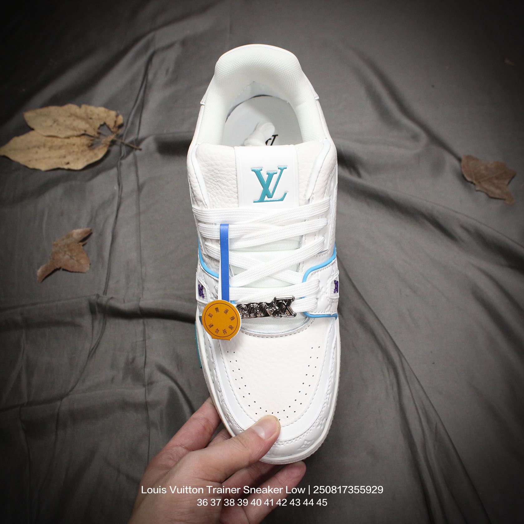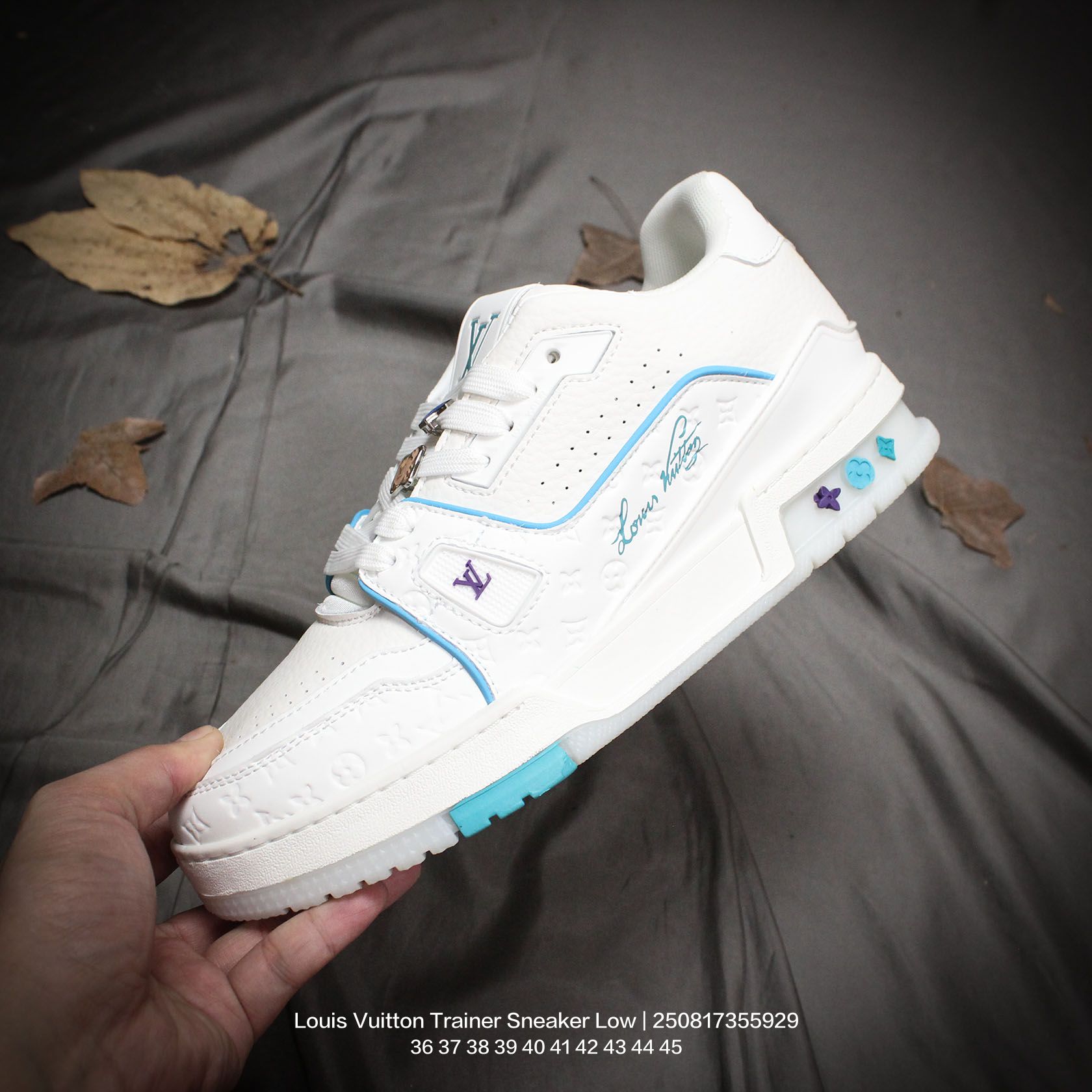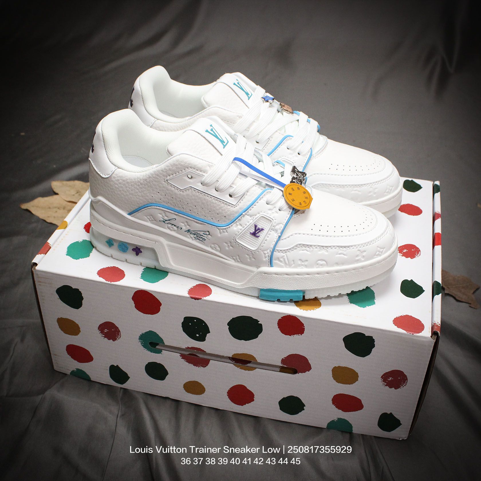 Louis Vuitton 路易威登 男女鞋配置厚实抽屉礼品鞋盒 采用荔枝纹纤维革组合粒面牛剖革鞋面材质 鞋垫嵌入软脚感EVA物料 外置TPR光泽隔色鞋底法国巴黎百年奢侈品牌LV路易威登Louis Vuitton Trainer Sneaker Low 运动系列低帮复古百搭休闲运动文化篮球板鞋