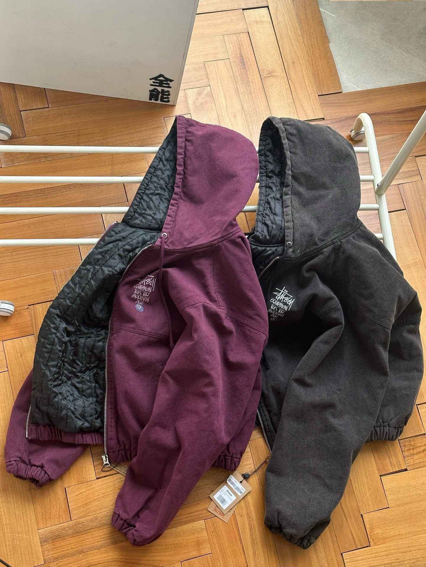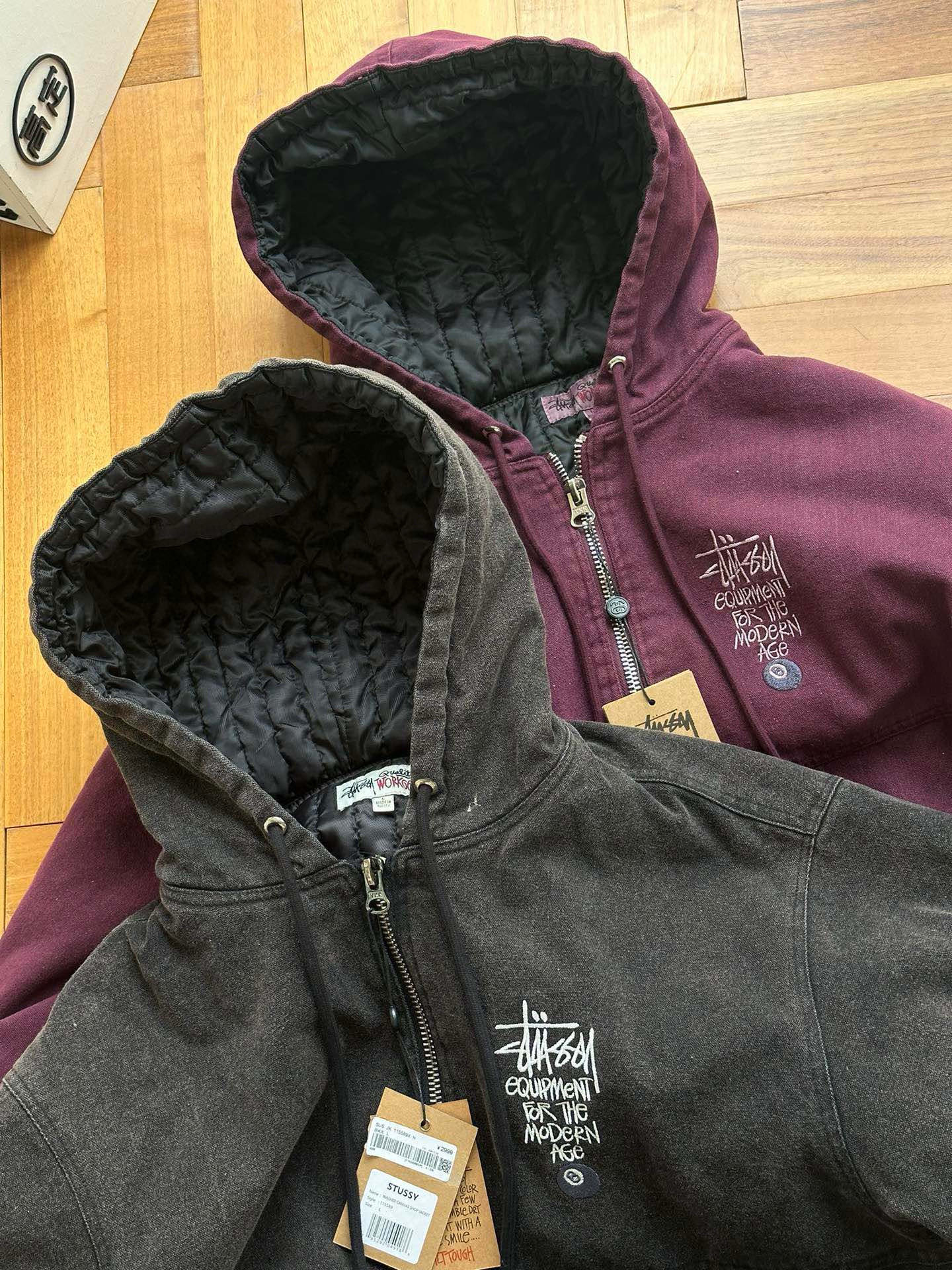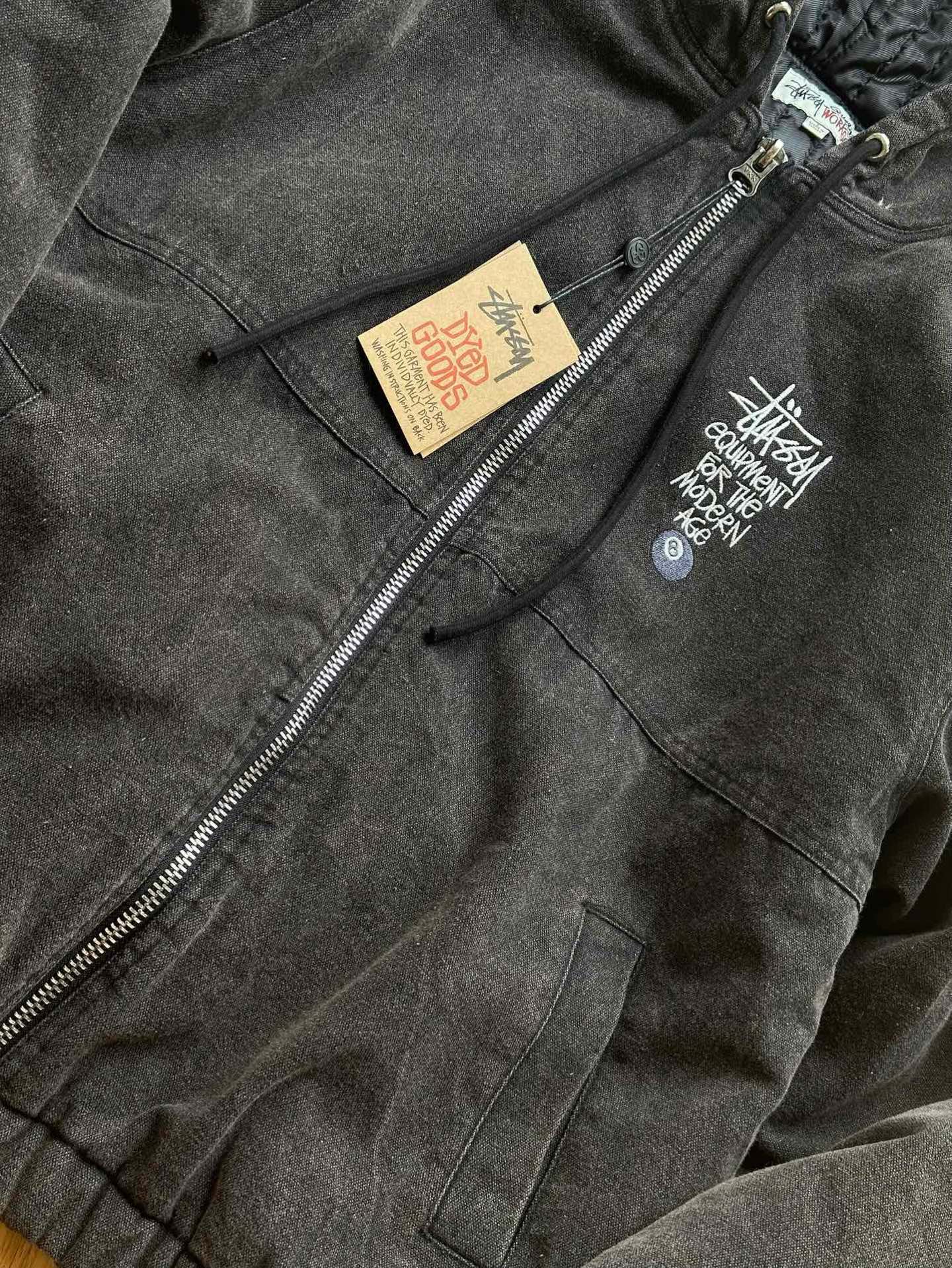 Stussy斯图西 水洗做旧黑8刺绣Logo夹克拉链连帽棉服外套棉服