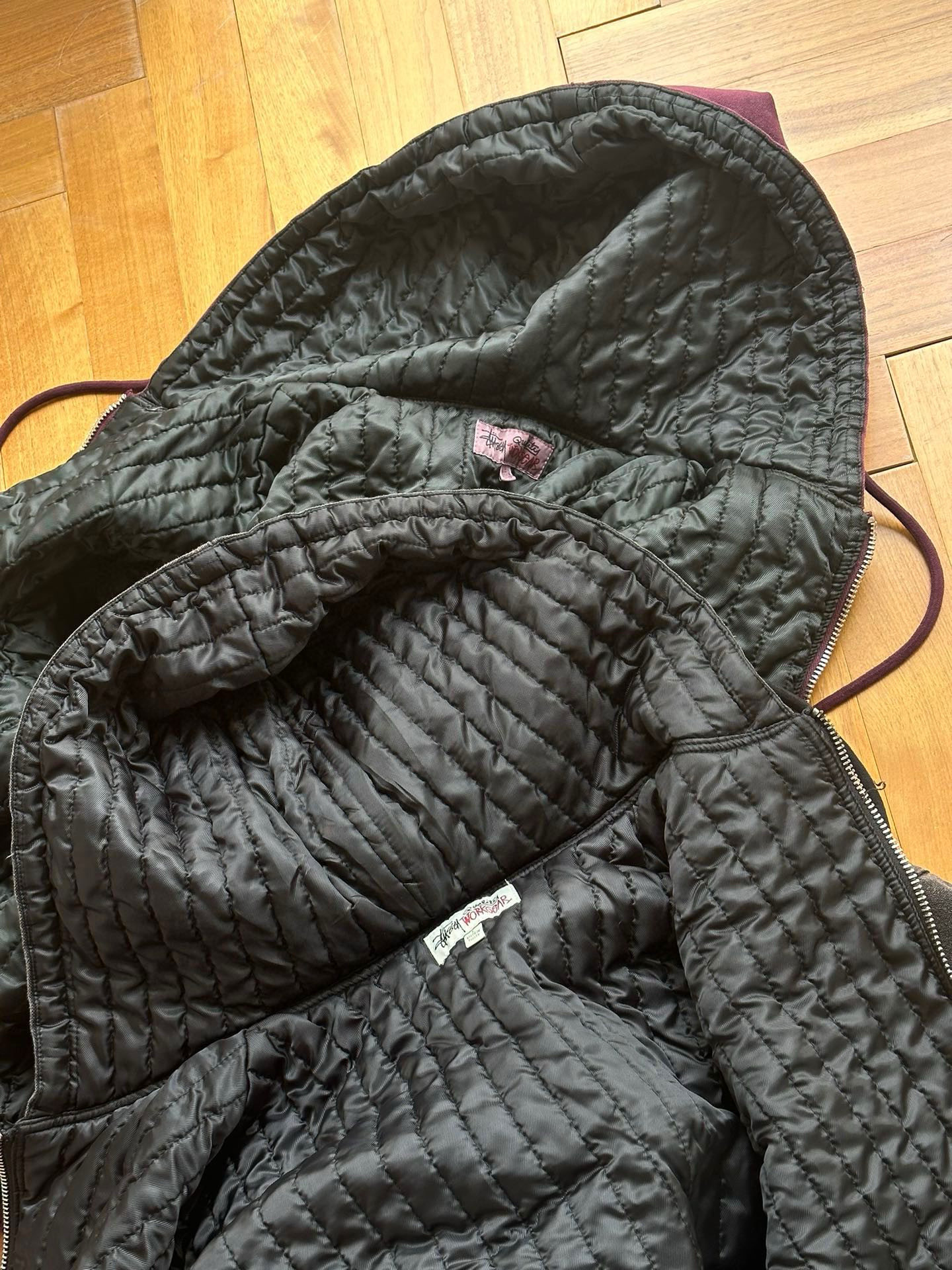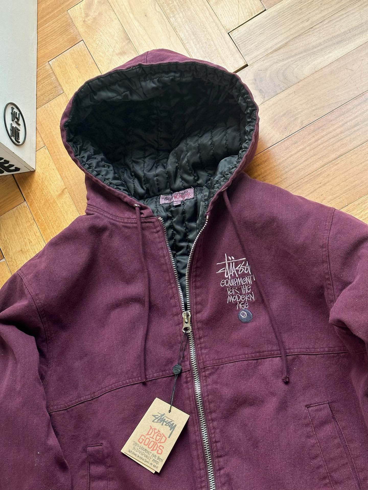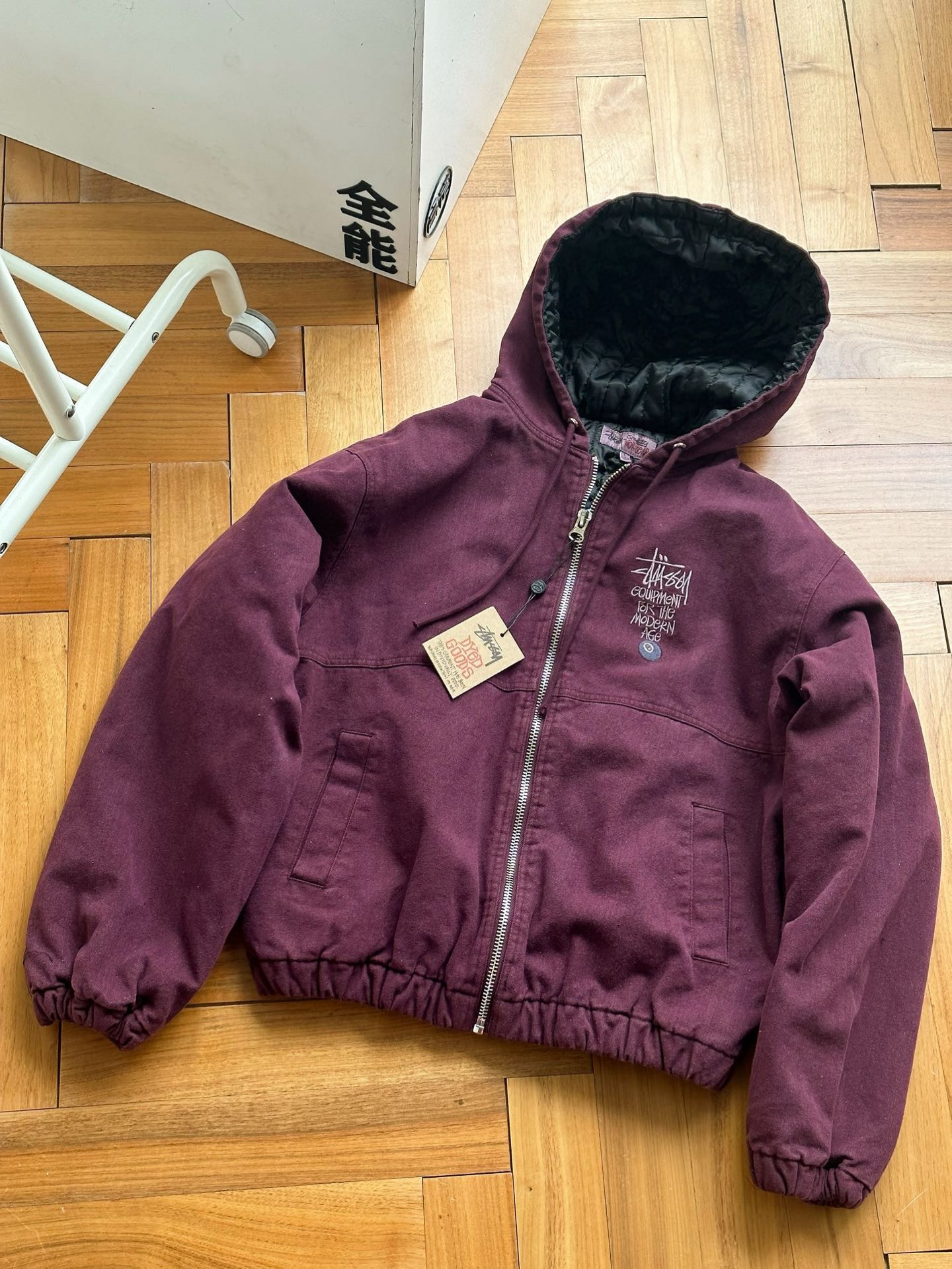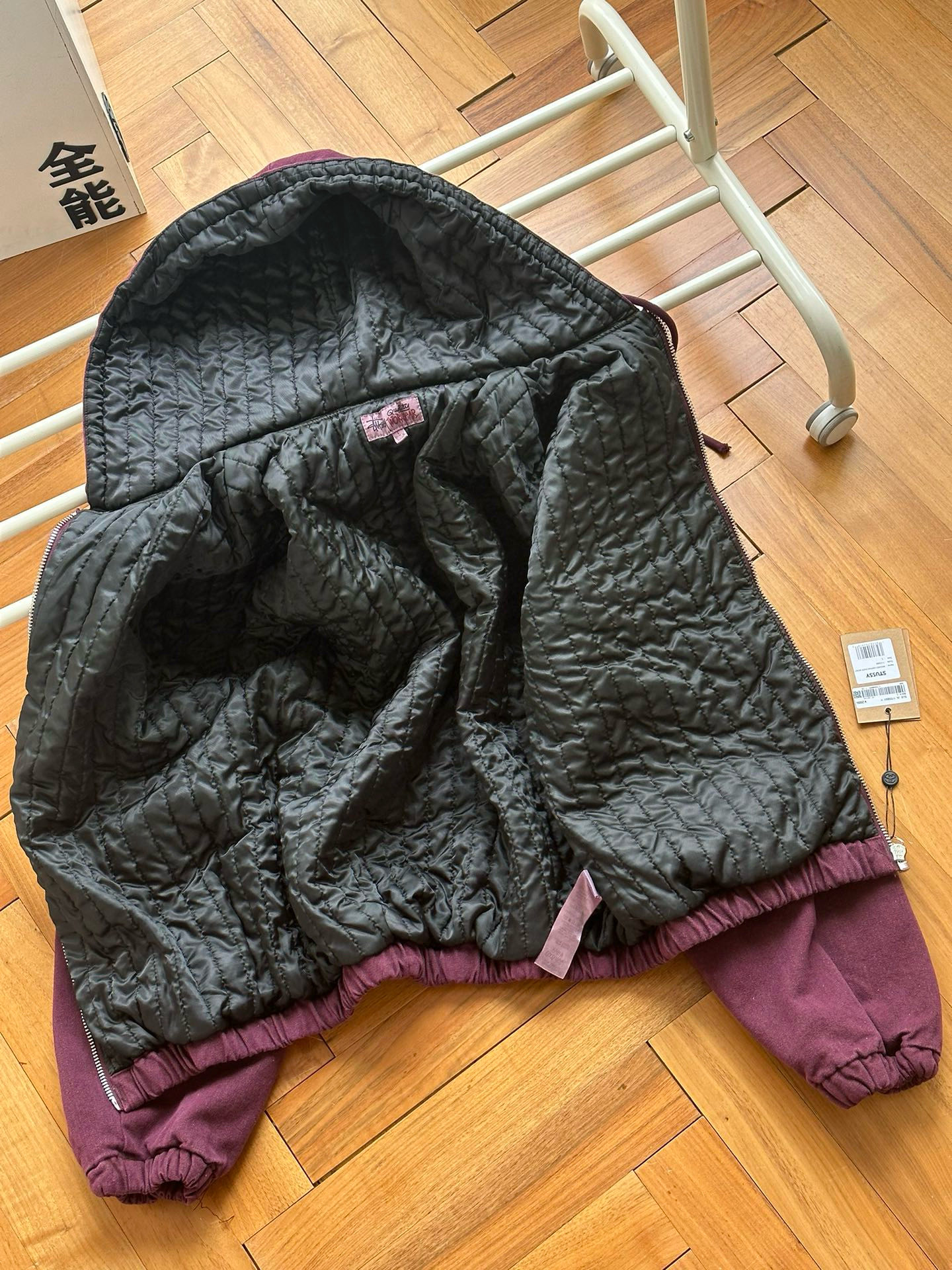 Stussy斯图西 水洗做旧黑8刺绣Logo夹克拉链连帽棉服外套棉服