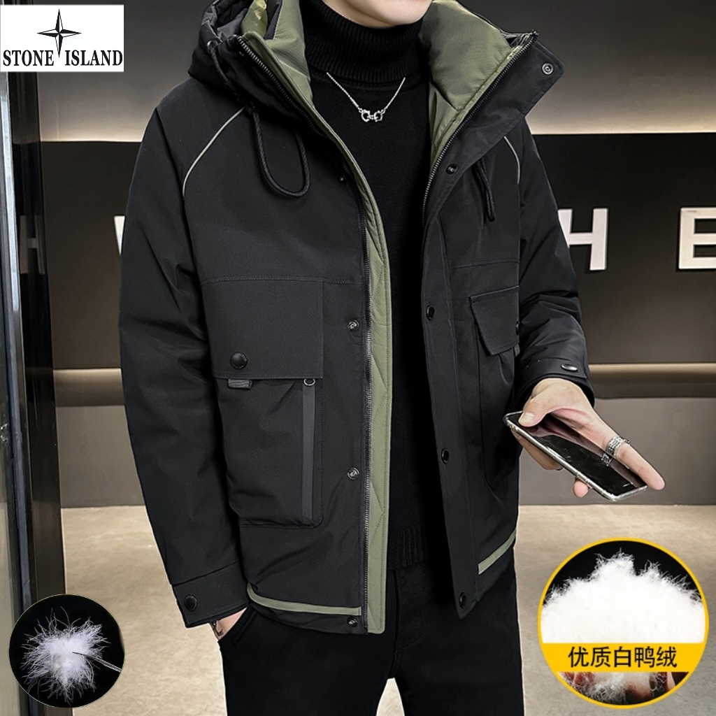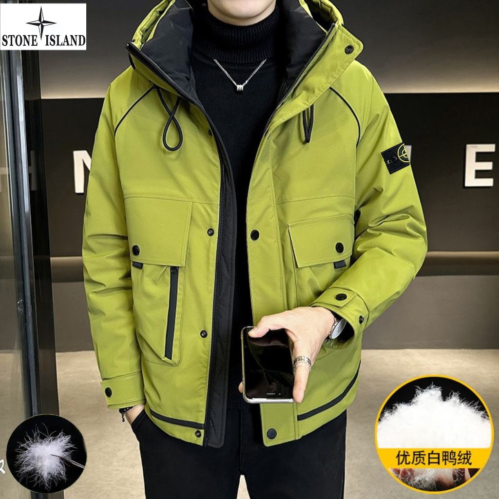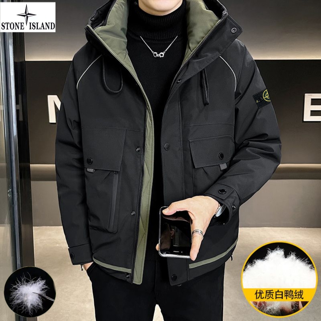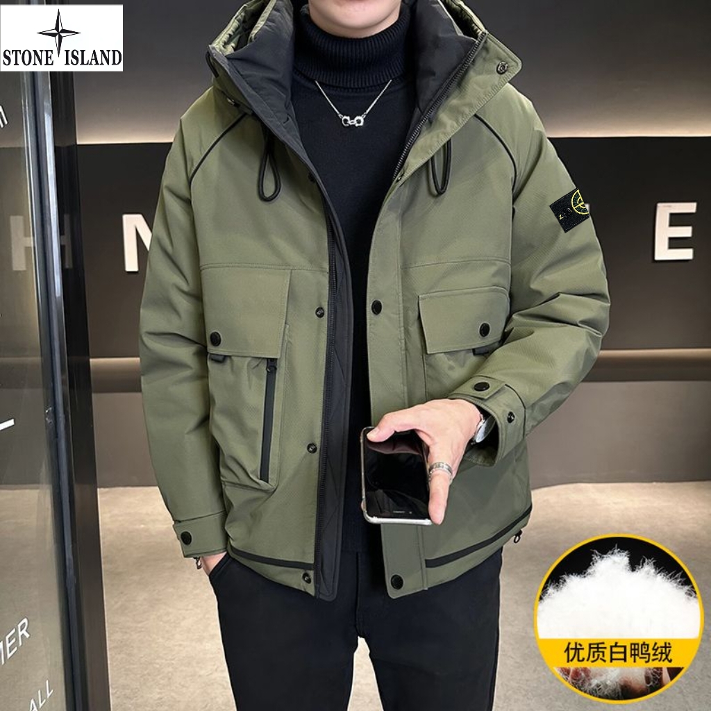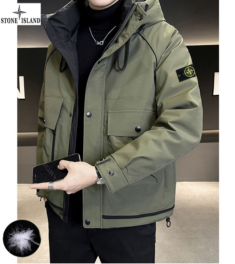 上新 石头岛Stone Island冬季新款 男女同款连帽高品质白鸭绒工装机能潮流羽绒服 男士羽绒外套