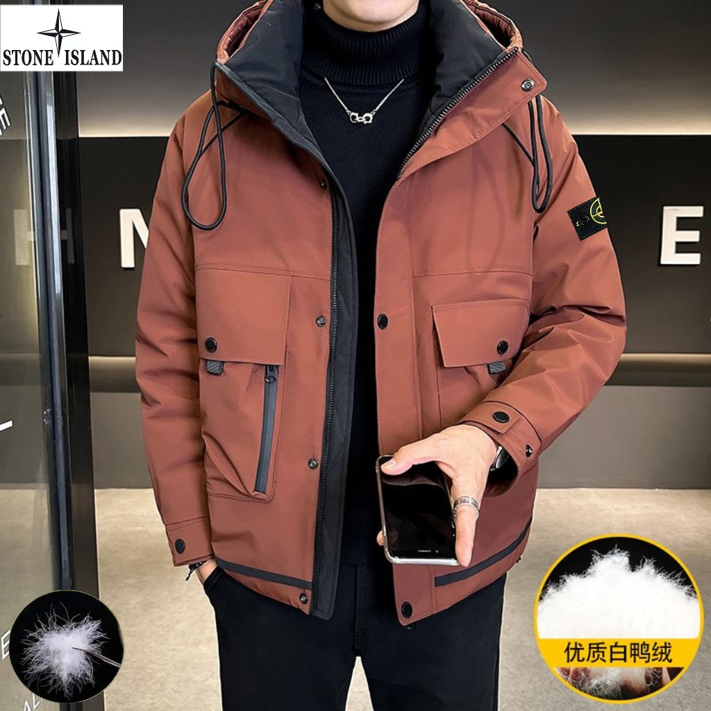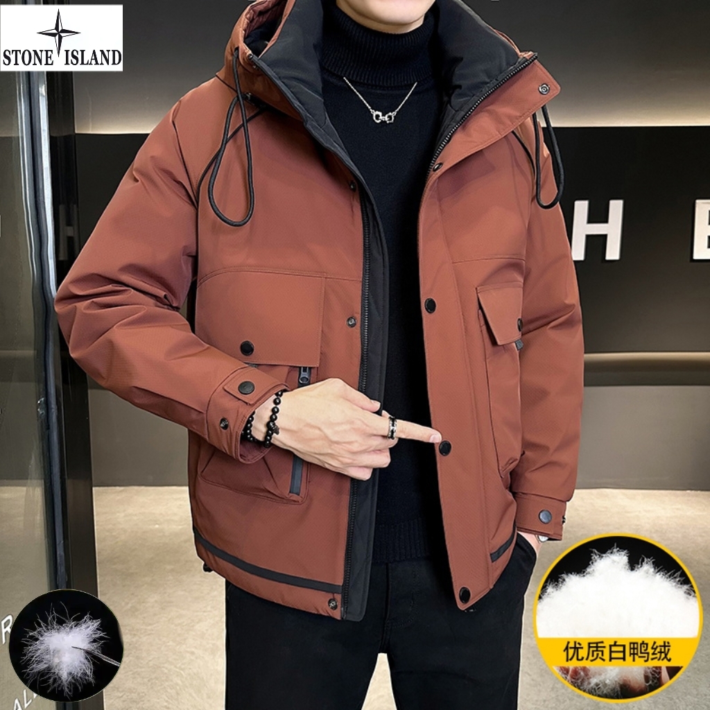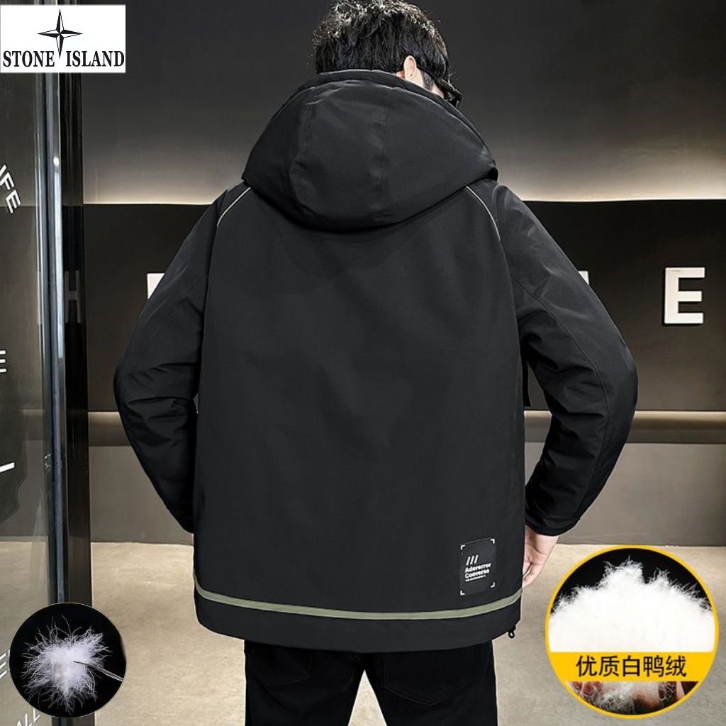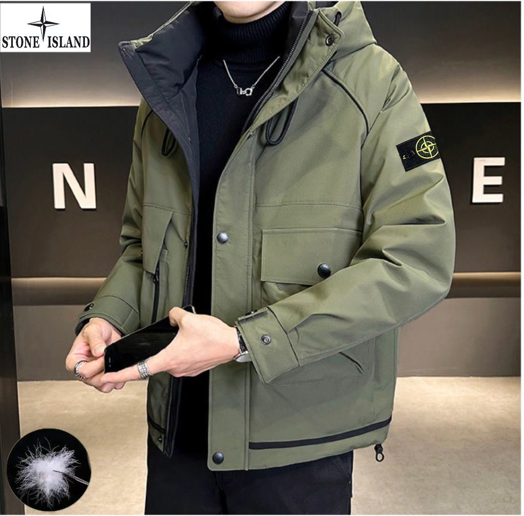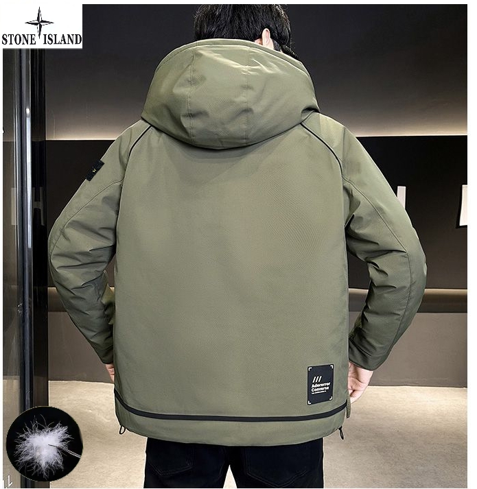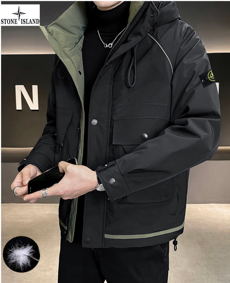 上新 石头岛Stone Island冬季新款 男女同款连帽高品质白鸭绒工装机能潮流羽绒服 男士羽绒外套