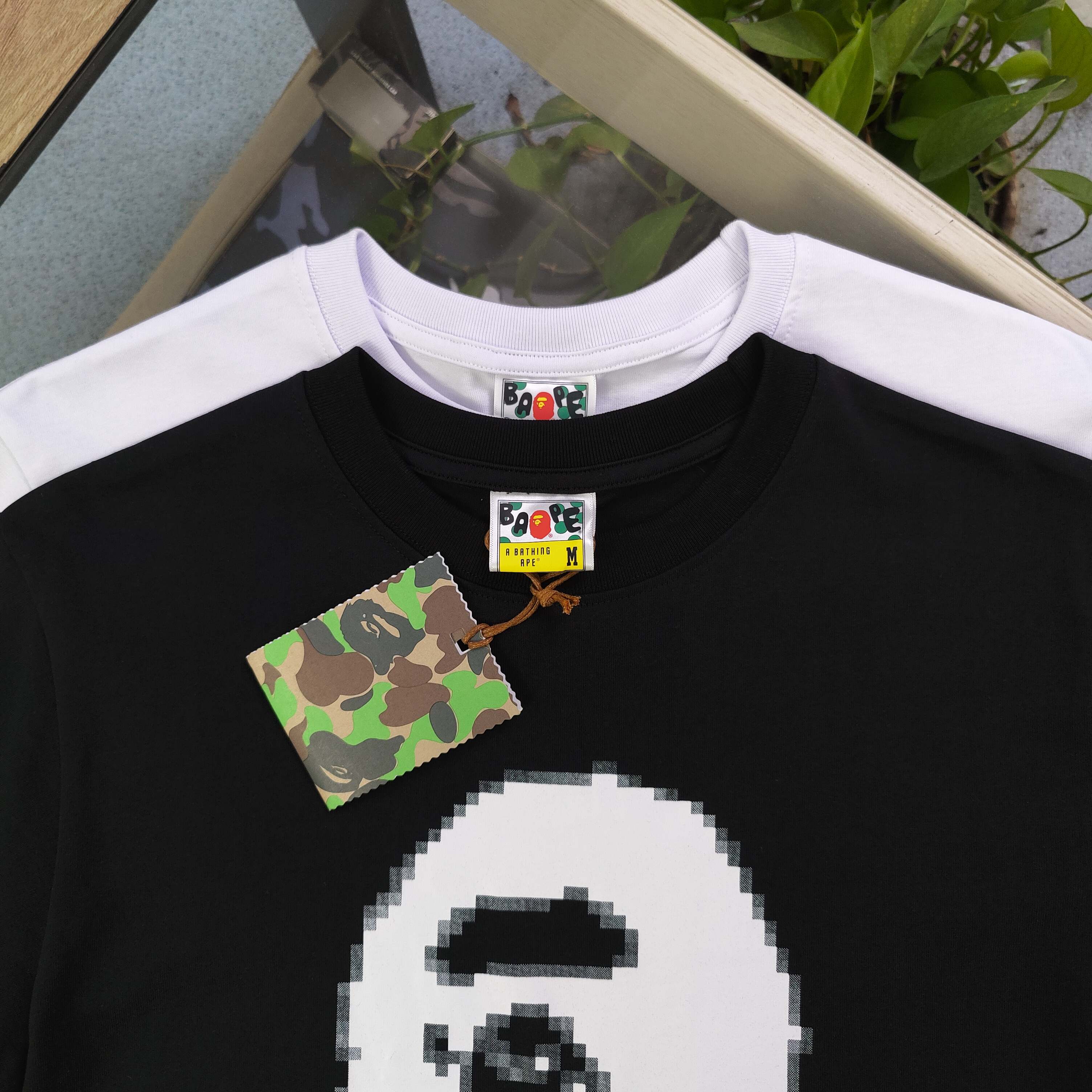 2025新款Bape猿人头马赛克图案logo印花休闲情侣短袖T恤 邂逅醒目黄棕迷彩猿人头图案 经典元素碰撞时尚火花 R标加持更显独特态度 舒适面料 亲肤透气 无论是搭配休闲短裤还是潮流长裤 都能轻松出彩 穿上它 即刻彰显个性 成为街头潮流焦点 释放属于你的独特魅力 男女同款